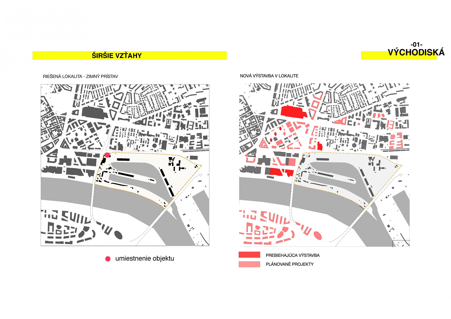 Pozemok je situovaný na nároží ulíc Prístavná a Košická. V súčasnosti sa na tomto “brownfielde” nachádzajú skladové priestory a menšie prevádzky, ktoré sú v nevyhovujúcom stave. V budúcnosti sa počíta s rozšírením centra mesta aj o územie Zimného prístavu, ktoré dokáže pojať funkciu samostatne fungujúcej mestskej štvrte s príjemným prostredím na nábreží.