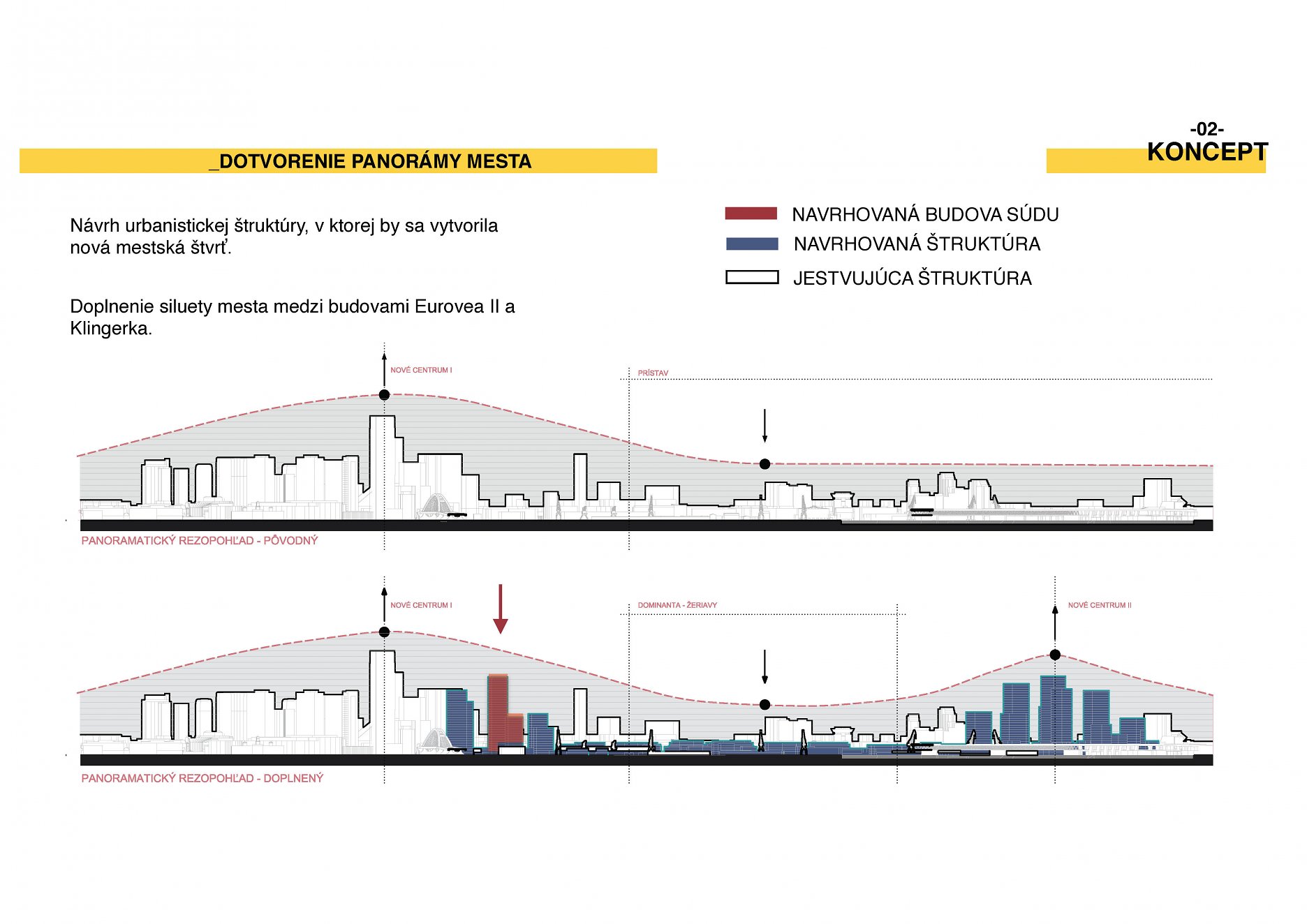 Zámerom bolo navrhnúť budovu, ktorá dotvorí identitu nábrežnej siluety Bratislavy, zapadne do novovznikajúcej hmotovo-priestorovej štruktúry, a doplní ostrú výškovú líniu medzi prístavom a susednou zástavbou.