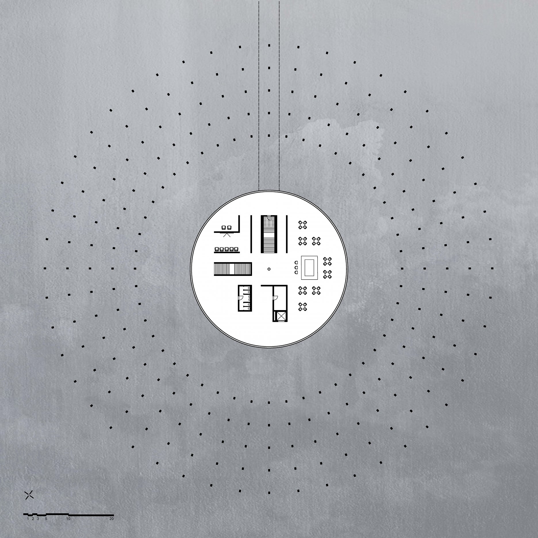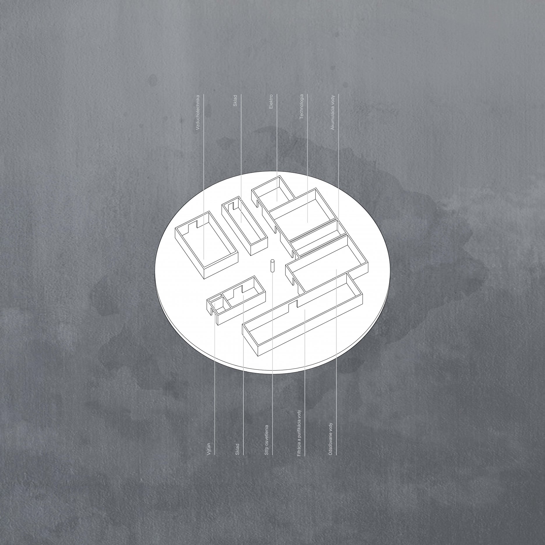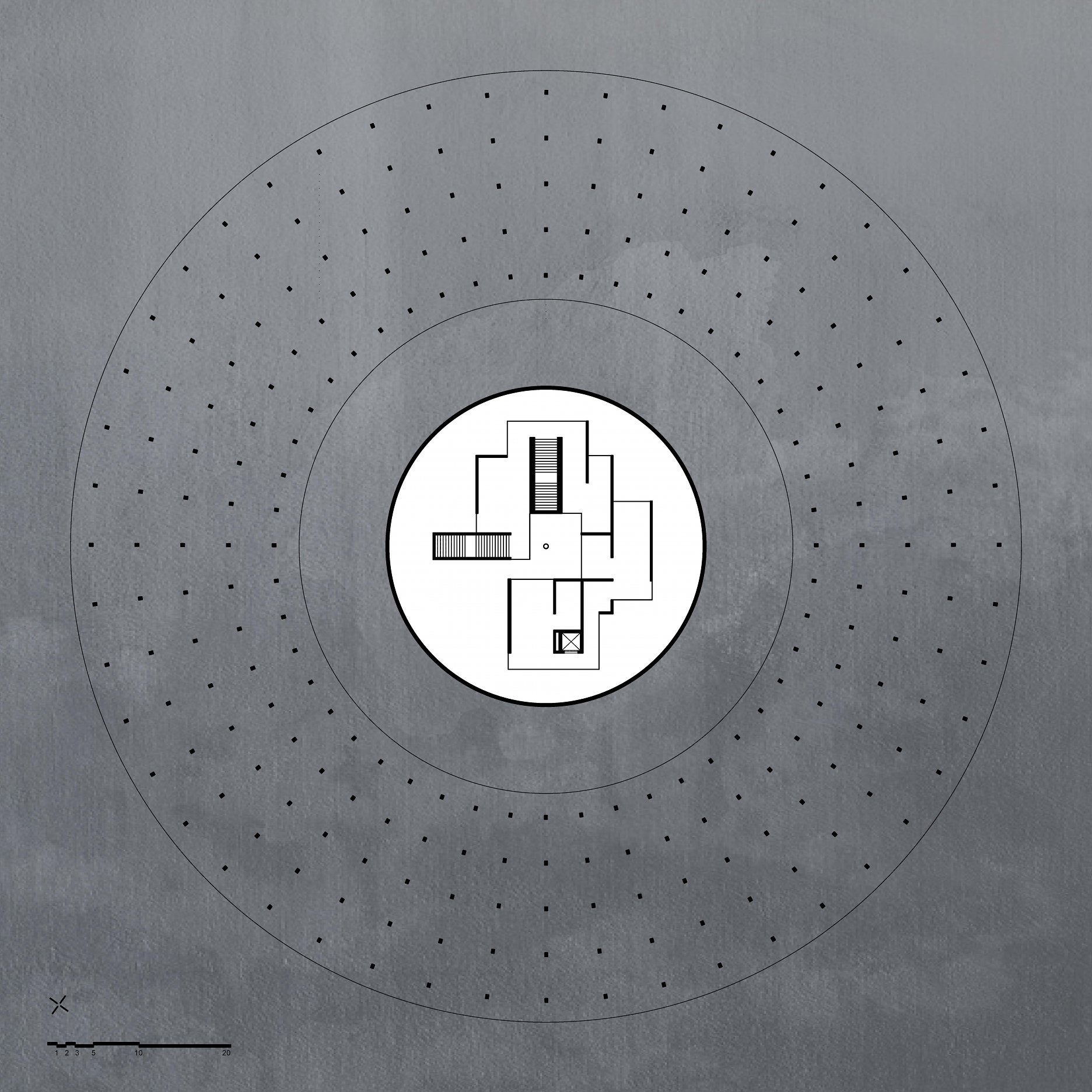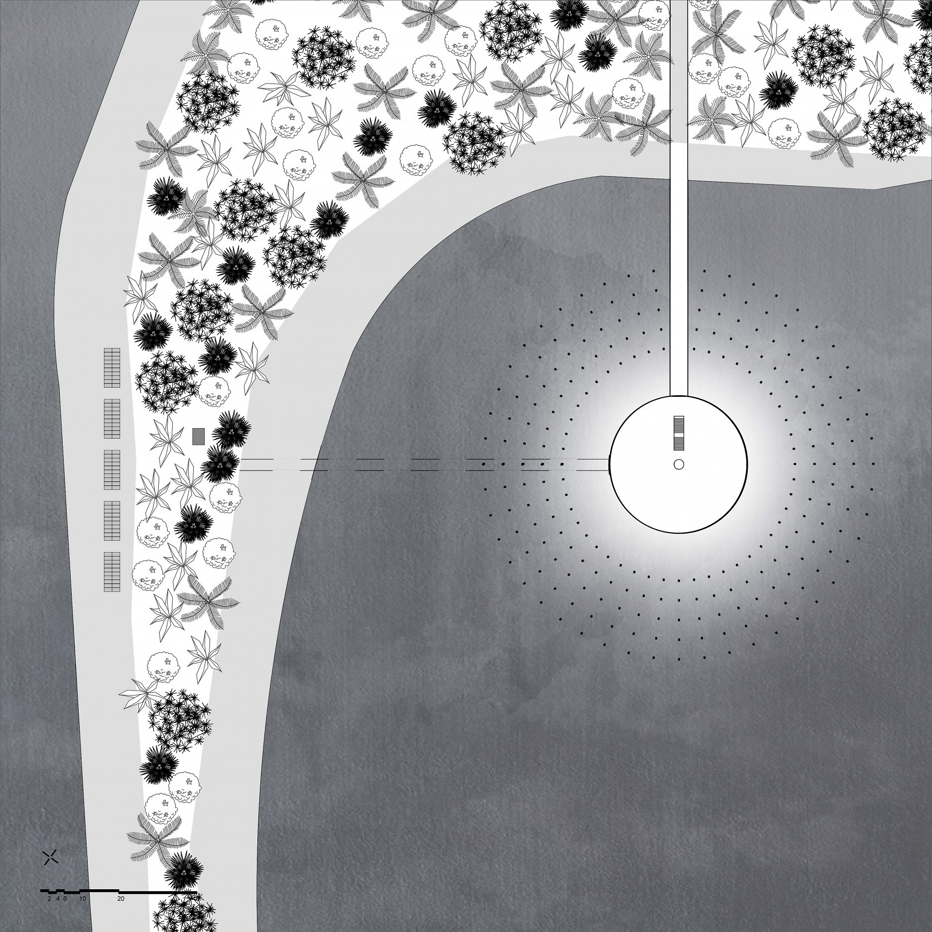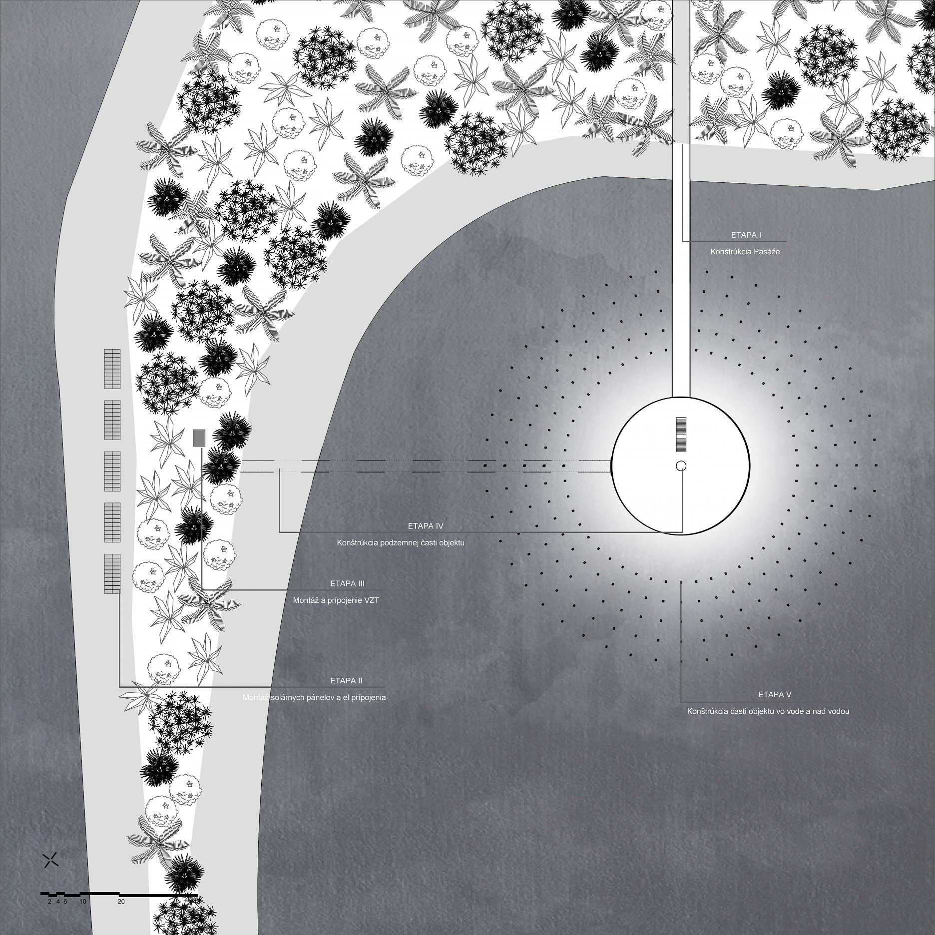The aim of the diploma thesis is to create a conceptual architectural object located in a nuclear testing site that would symbolize the overall cycle of nuclear energy: from the aspiration to the massive destruction, it brought to human civilization, with the final aim to sensitize the visitor of the damage of the nuclear bomb by its own abstract form and volume and space and its communication with the nature around. The chosen site: Runit Island, Marshall Islands is a paradox within itself: a paradise made by nature, full of life and sun and surrounded by water, chosen to be destroyed with nuclear bombs, made inhabitable for humans by the human hand, invisibly deadly-visibly breathtaking. The Memorial should coexist within this paradox, by creating a balance for Runit Dome - the tomb in the island, and by hosting the „journey“ of catharsis of the island in its structure through different dichotomies made of scale, shape, shadow and light, materiality and nature. The Memorial, due to the still-present contamination and specific weather conditions of the island, can be visited only shortly during certain period of the year in small numbers of visitors. Therefore, the atmosphere of the Memorial should serve as the language of the sensitization itself. If the Runit Dome is a reminder of the past, a marked spot, an abstract tomb in this paradise island, the Memorial is designed to be the Anti-Tomb, the Upside-Down Tomb, the missing balance, the Tholos and Anti-Tholos, the entrance to the island which leads to the tomb and back to the Memorial. The overall journey mimics the religious forms of pilgrimage, a journey far away from civilization, which aims to explore existential questions of the human nature, the human role, ambition, modesty, ethics, aesthetics, time, temporality, hope, rebirth, life and death.