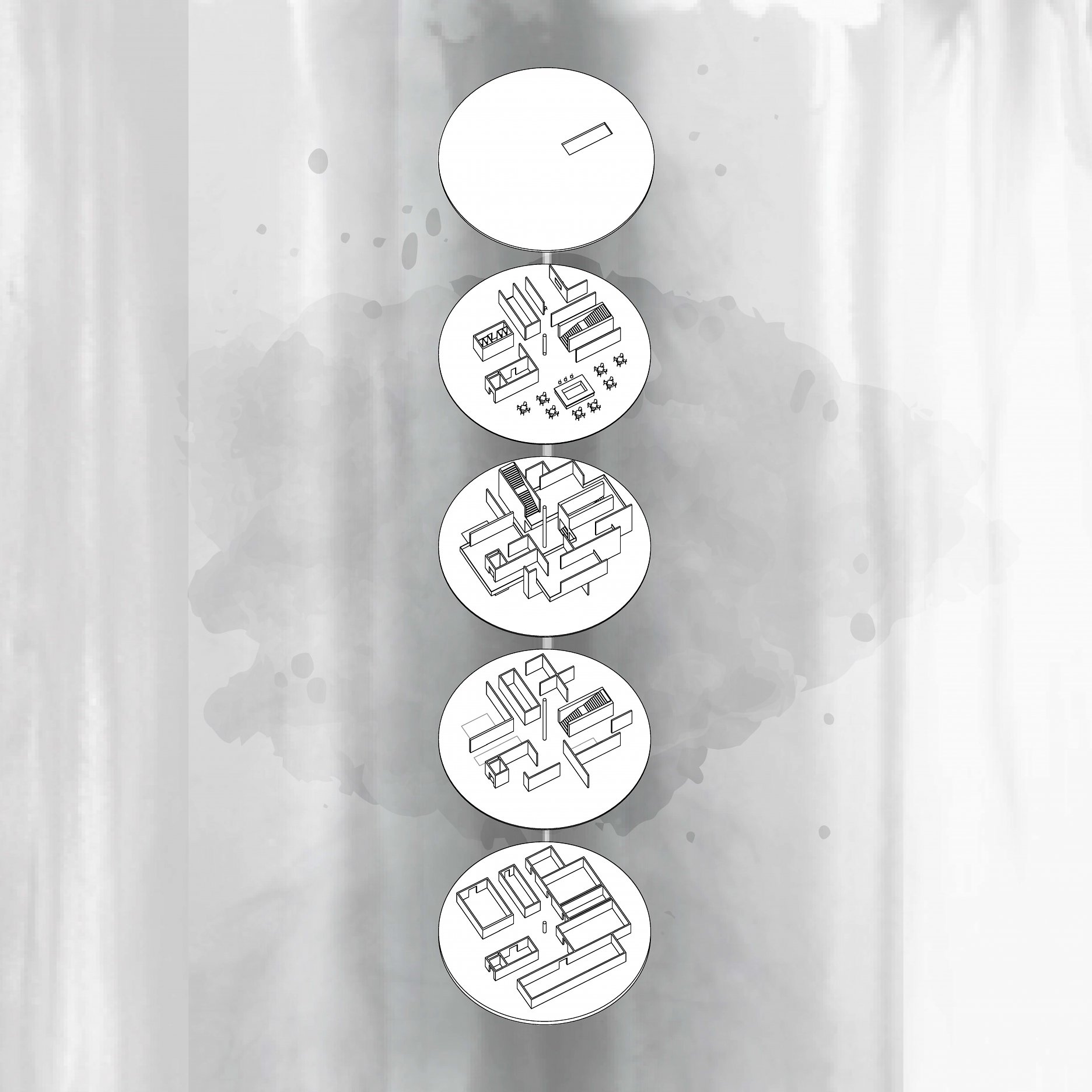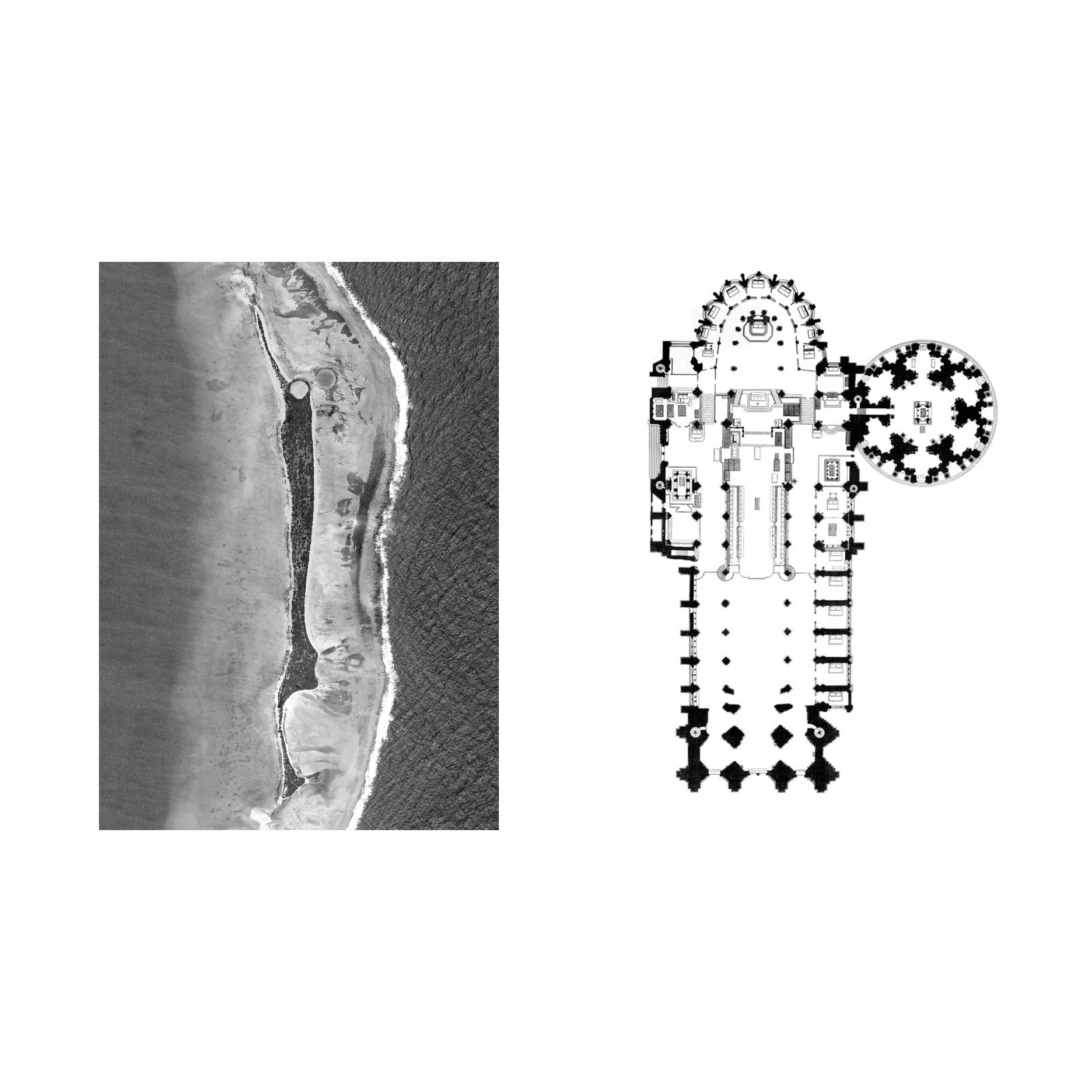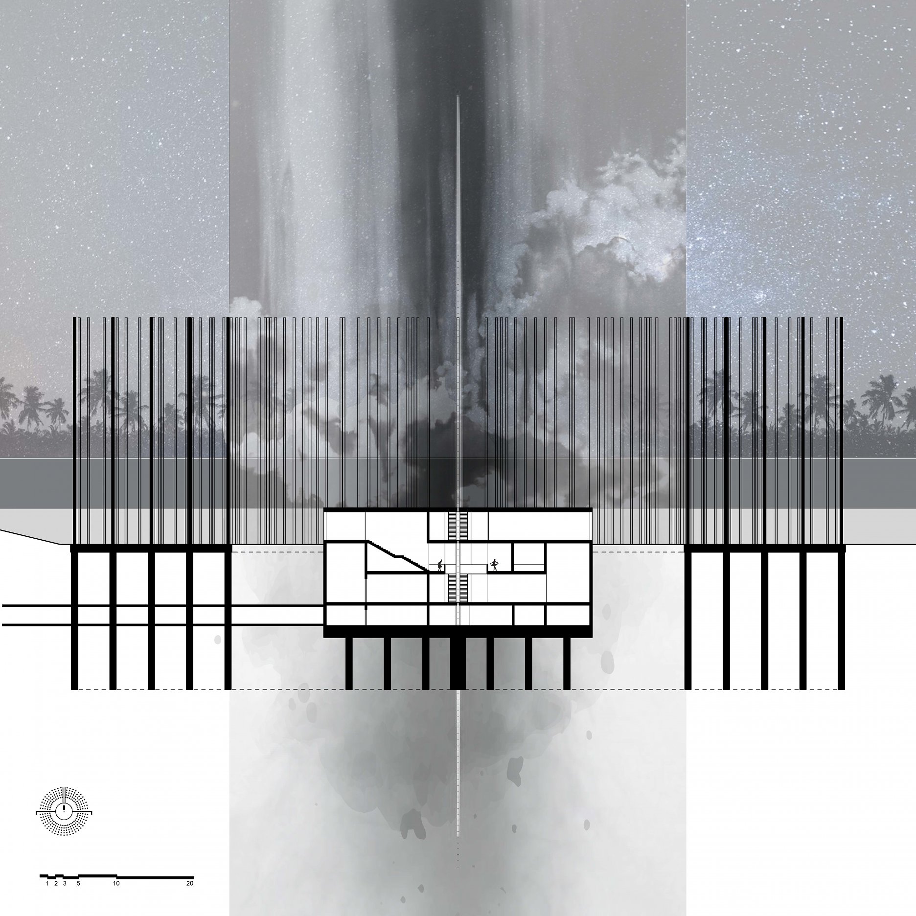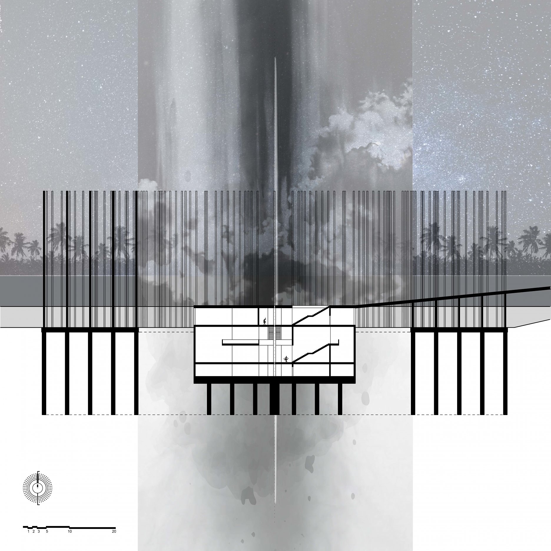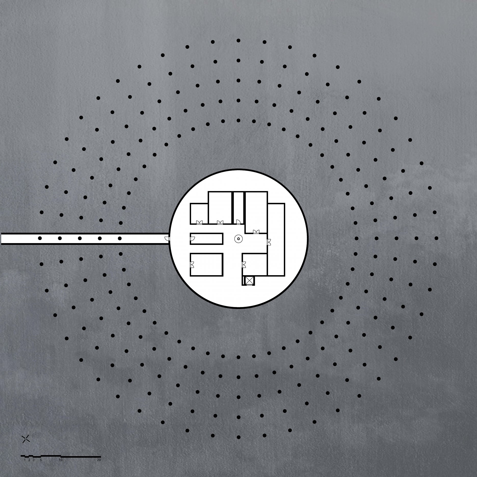 The aim of the diploma thesis is to create a conceptual architectural object located in a nuclear testing site that would symbolize the overall cycle of nuclear energy: from the aspiration to the massive destruction, it brought to human civilization, with the final aim to sensitize the visitor of the damage of the nuclear bomb by its own abstract form and volume and space and its communication with the nature around. The chosen site: Runit Island, Marshall Islands is a paradox within itself: a paradise made by nature, full of life and sun and surrounded by water, chosen to be destroyed with nuclear bombs, made inhabitable for humans by the human hand, invisibly deadly-visibly breathtaking. The Memorial should coexist within this paradox, by creating a balance for Runit Dome - the tomb in the island, and by hosting the „journey“ of catharsis of the island in its structure through different dichotomies made of scale, shape, shadow and light, materiality and nature. The Memorial, due to the still-present contamination and specific weather conditions of the island, can be visited only shortly during certain period of the year in small numbers of visitors. Therefore, the atmosphere of the Memorial should serve as the language of the sensitization itself. If the Runit Dome is a reminder of the past, a marked spot, an abstract tomb in this paradise island, the Memorial is designed to be the Anti-Tomb, the Upside-Down Tomb, the missing balance, the Tholos and Anti-Tholos, the entrance to the island which leads to the tomb and back to the Memorial. The overall journey mimics the religious forms of pilgrimage, a journey far away from civilization, which aims to explore existential questions of the human nature, the human role, ambition, modesty, ethics, aesthetics, time, temporality, hope, rebirth, life and death.