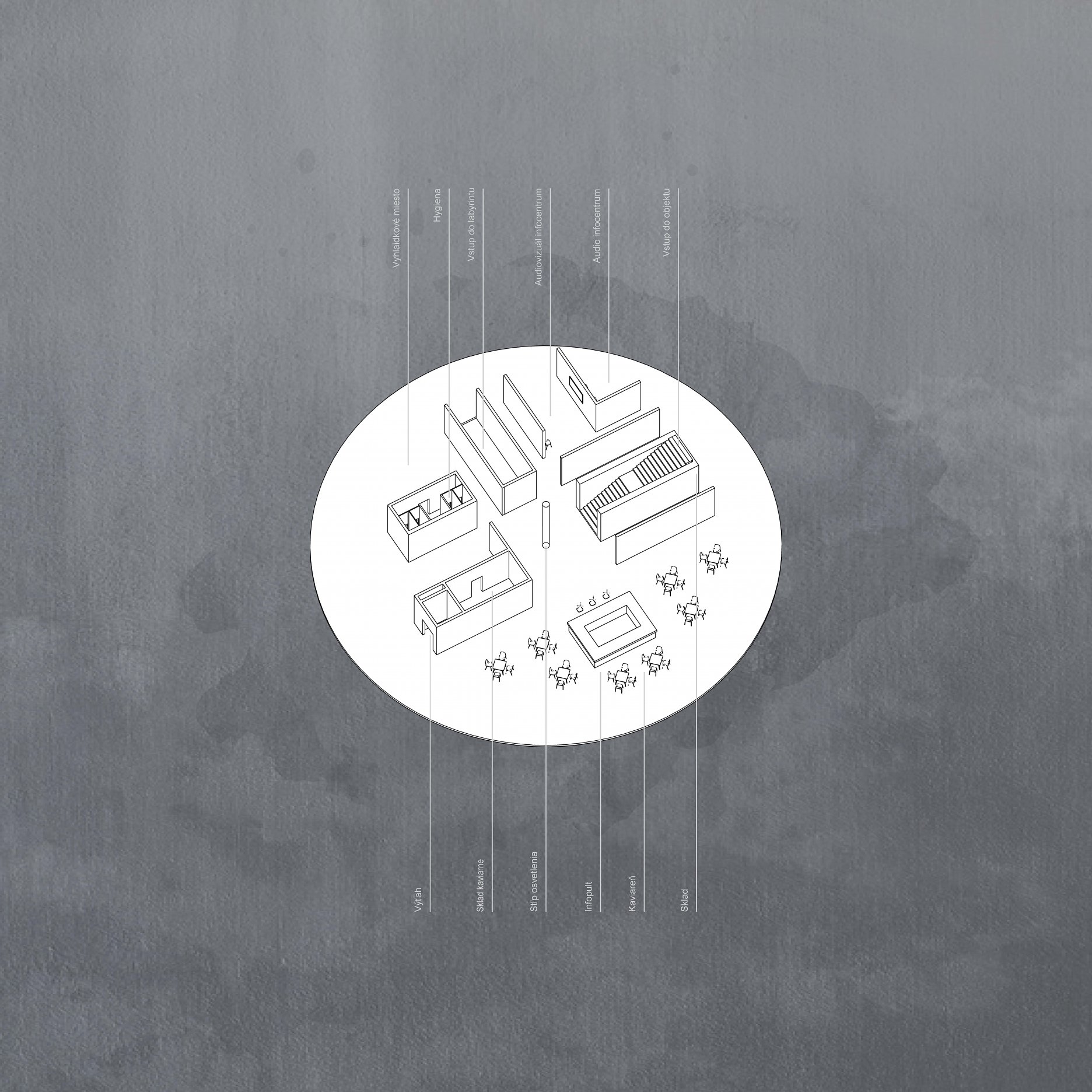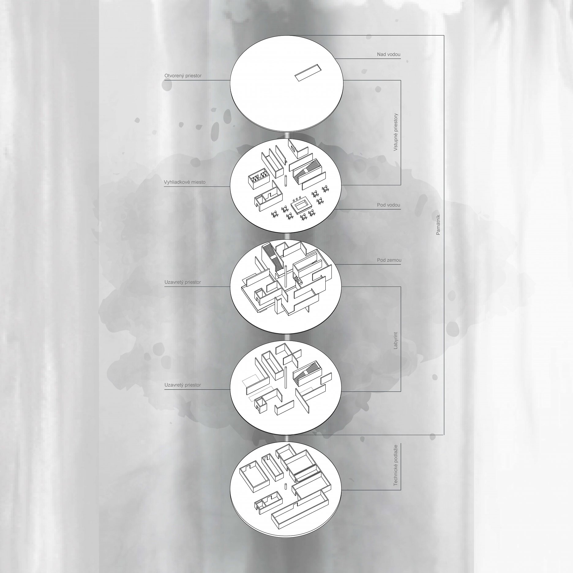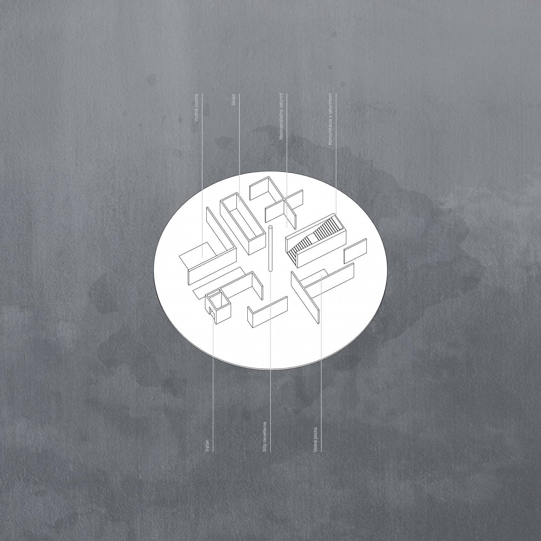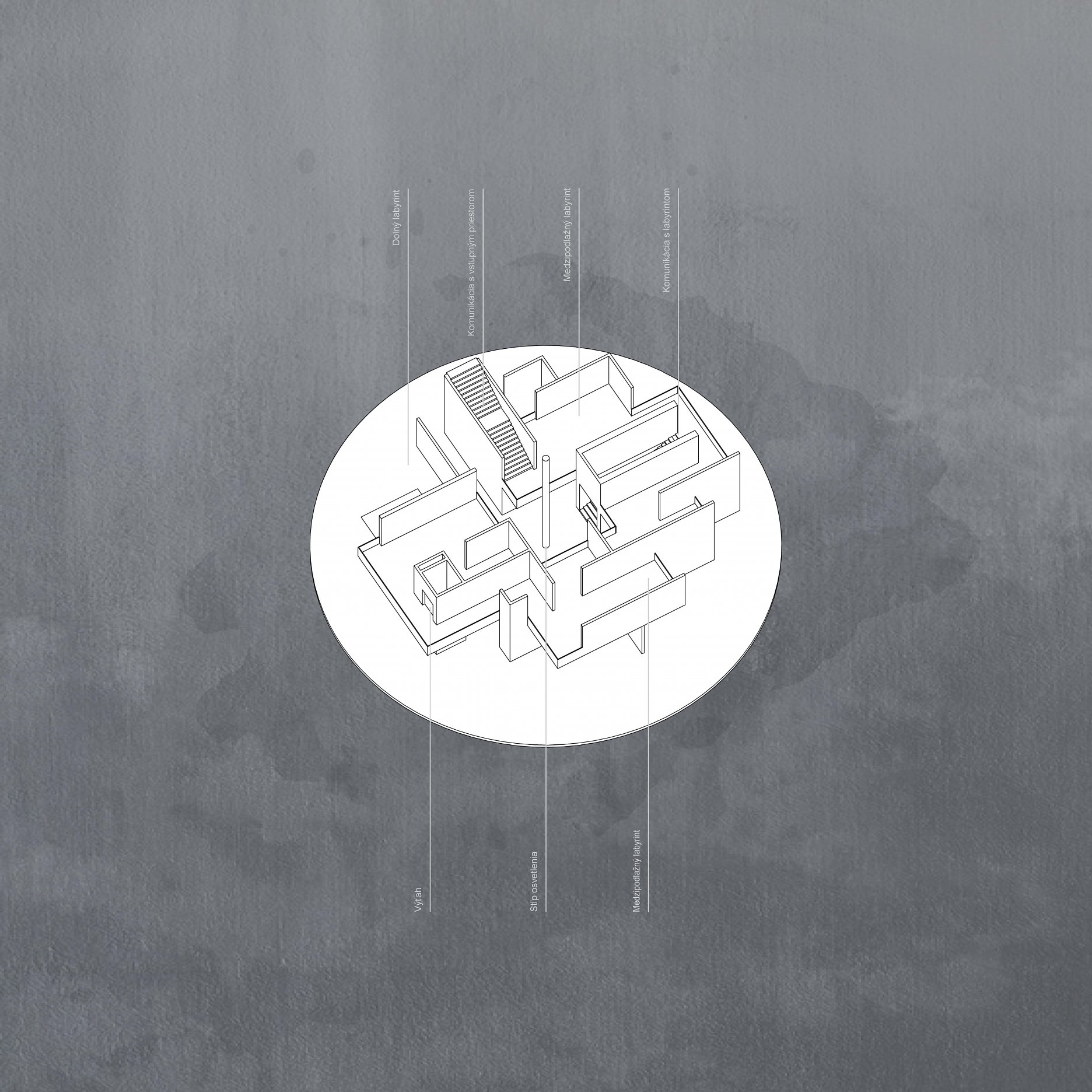 Diplomantka analyzuje problém cez historické a ekologické tragédie 20. storočia. Upozorňuje na ich vojenské, technické a klimatické katastrofy podporené básňou Sylvie Plath o celkovej strate nádeje. Návrh riešenia hľadá v zažitej mýtickej a náboženskej symbolike. Labyrint na podlahe katedrál predstavoval náhradu púte do Jeruzalemu alebo symbol tvrdej cesty vedúcej do svojho stredu ako k Bohu. Pravdepodobne z toho dôvodu je inšpiráciou peklo a labyrint ako v obraze Boticelliho inferna. Vrchol hierarchického pekla nesmeruje k nebu, k snahe o Božskú dokonalosť a moc ako v zrkadlovom obraze Babylonská veža, ale do diery, tmy, hĺbky, do vnútra, pretože pýcha je považovaná za počiatočný hriech. Limit návštev je tak ďalším dôležitým momentom návrhu. Človek už nemôže mať všetko tu a teraz.