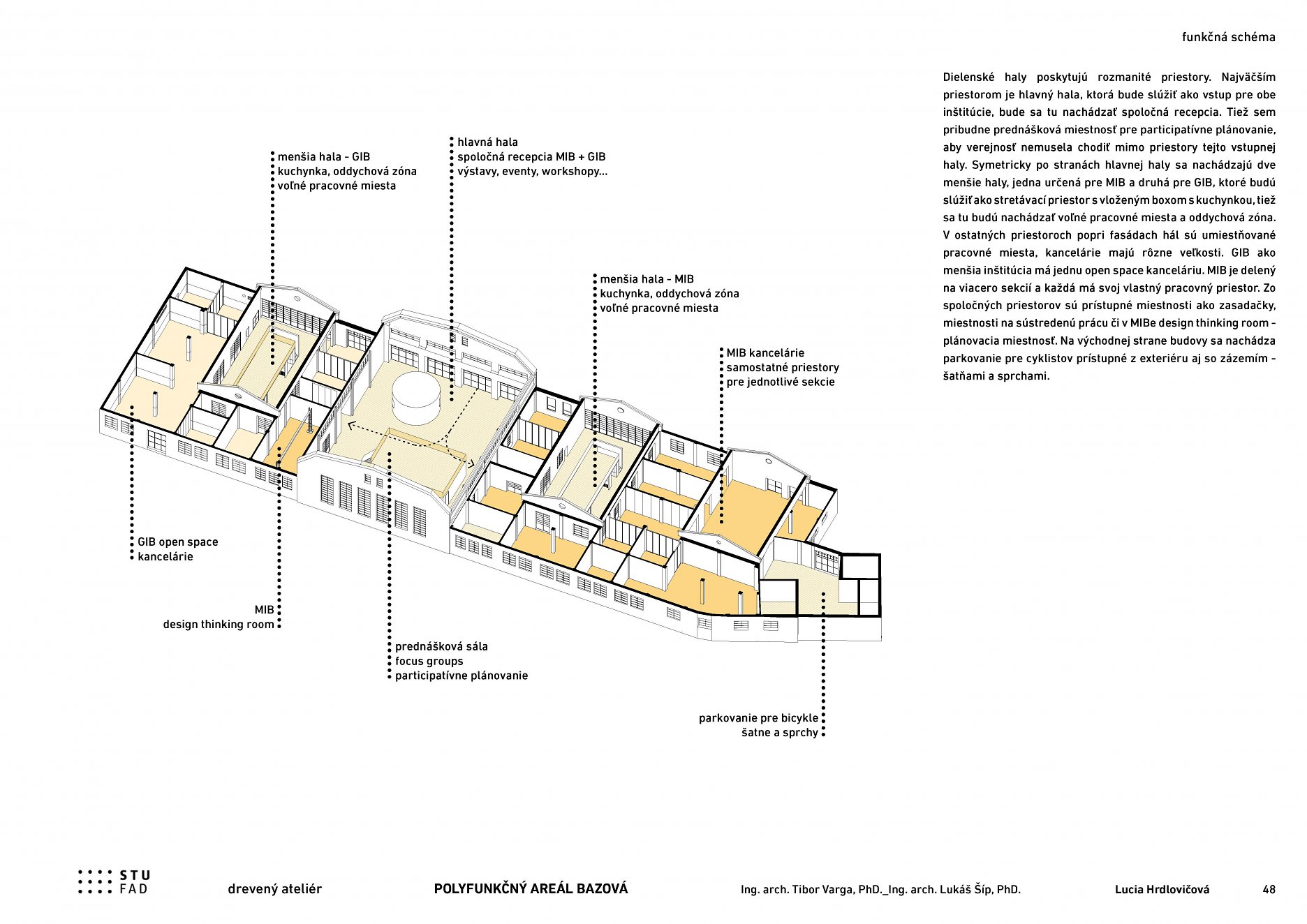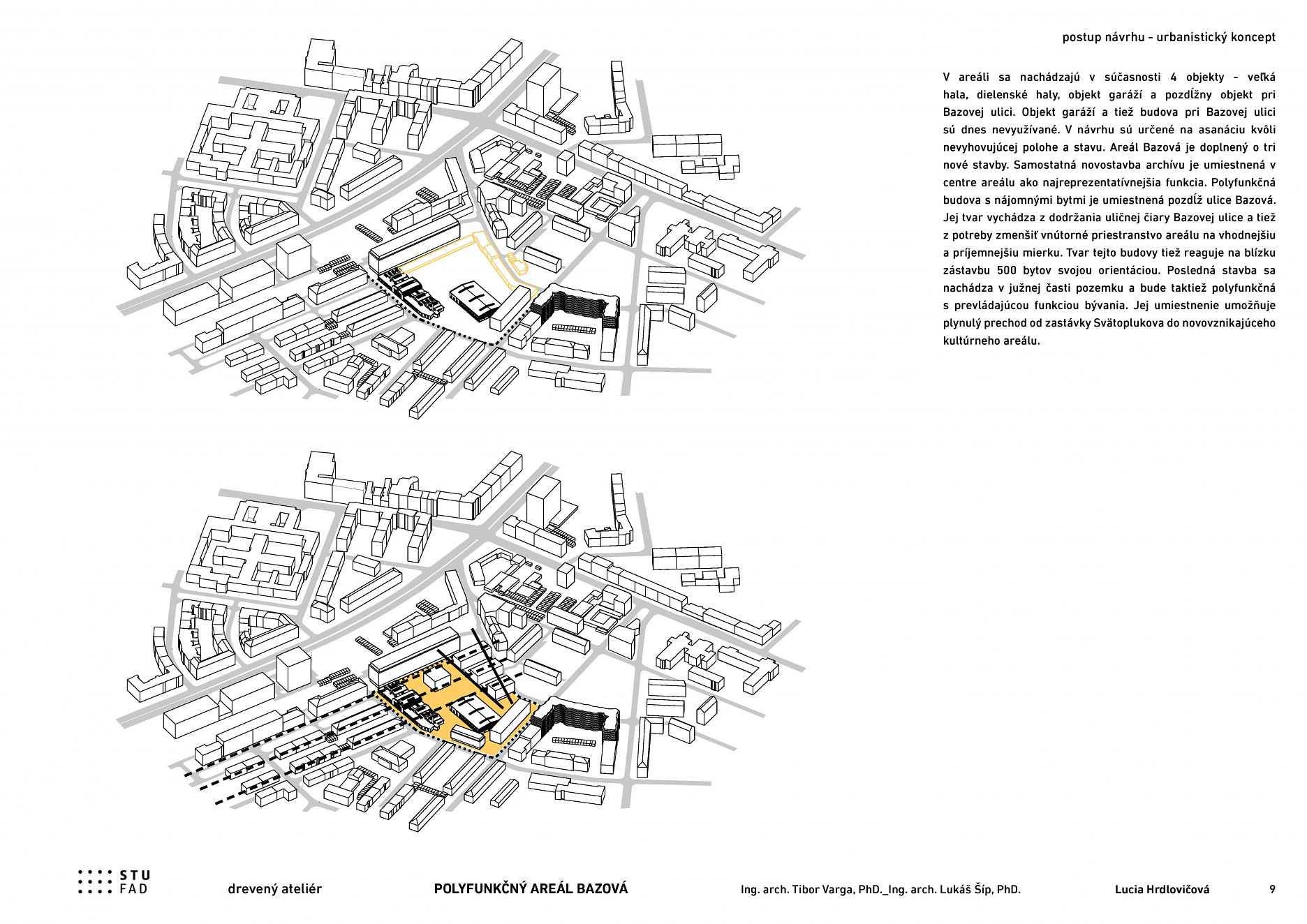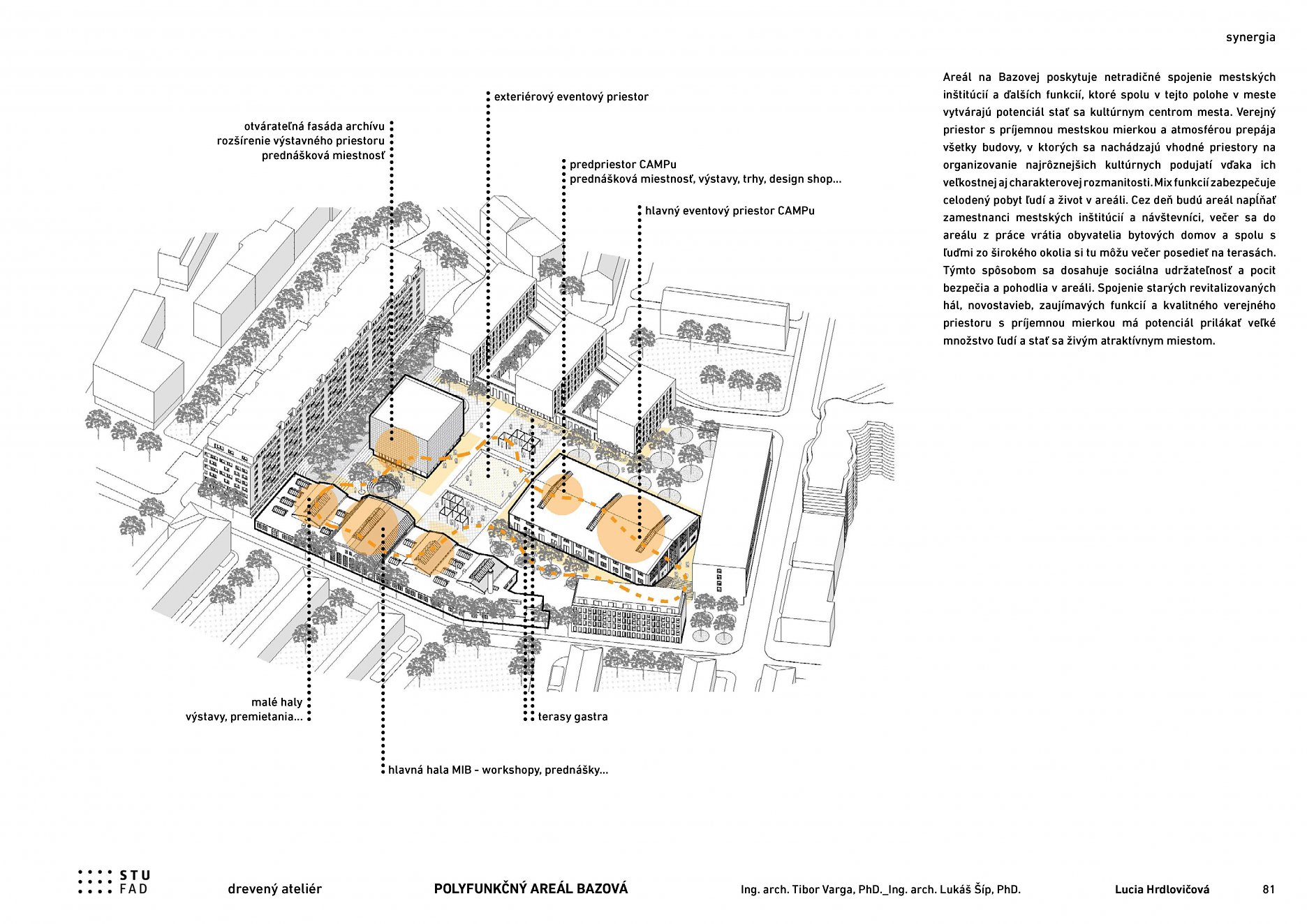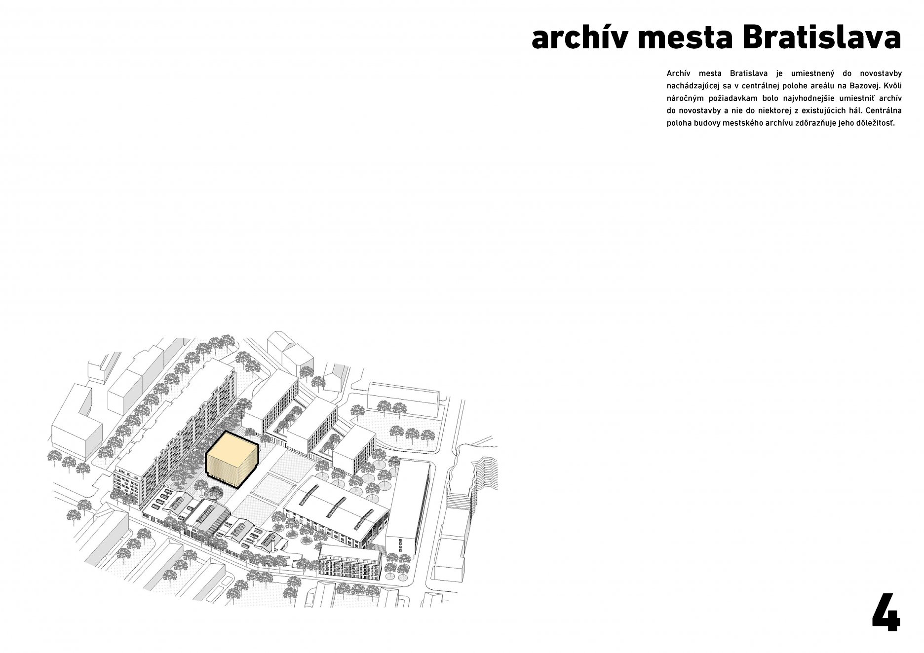 "Chátrajúce územie má vďaka vďaka výbornej polohe v rámci hlavného mesta potenciál stať sa novým kultúrnym centrom, kde dôjde k stretu mnohých zaujímavých mestských inštitúcií - nachádzať sa tu bude MIB – Metropolitný inštitút Bratislava, CAMP - Centrum architektúry a mestského plánovania, nový Archív mesta Bratislava a GIB - Generálny investor Bratislavy. Mestské inštitúcie doplnenia ďalšie funkcie: mestské nájomné bývanie, občianska vybavenosť, gastro prevádzky či Reuse centrum... Spomínané funkcie majú v tejto polohe potenciál vytvoriť živú, fungujúcu a atraktívnu lokalitu. V areáli budú revitalizované existujúce objekty hál a taktiež budú doplnené novostavby mestského archívu a nájomných bytov," vysvetľuje v abstrakte svoj pohľad na ideálnu budúcnosť areálu Lucia Hrdlovičová.