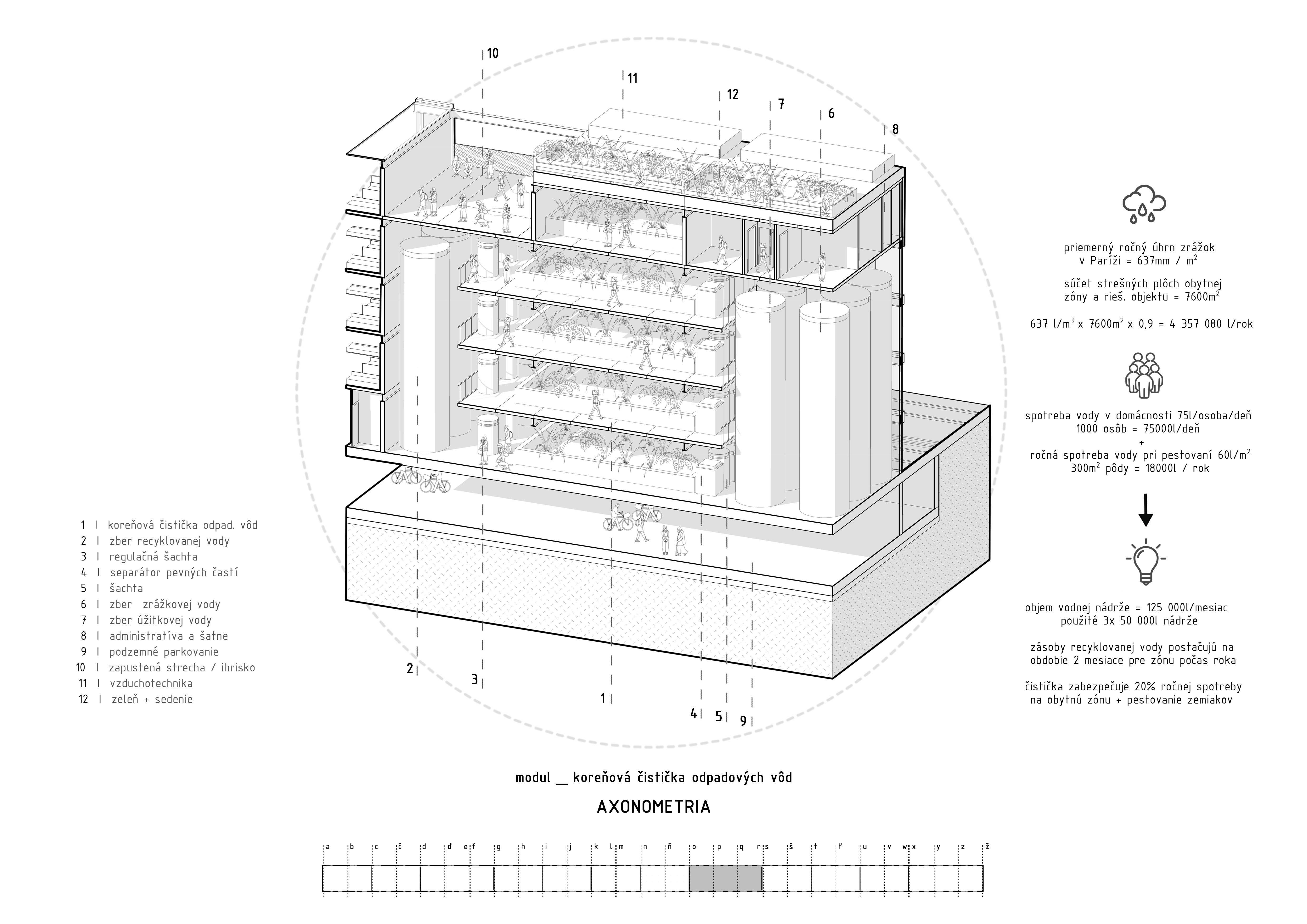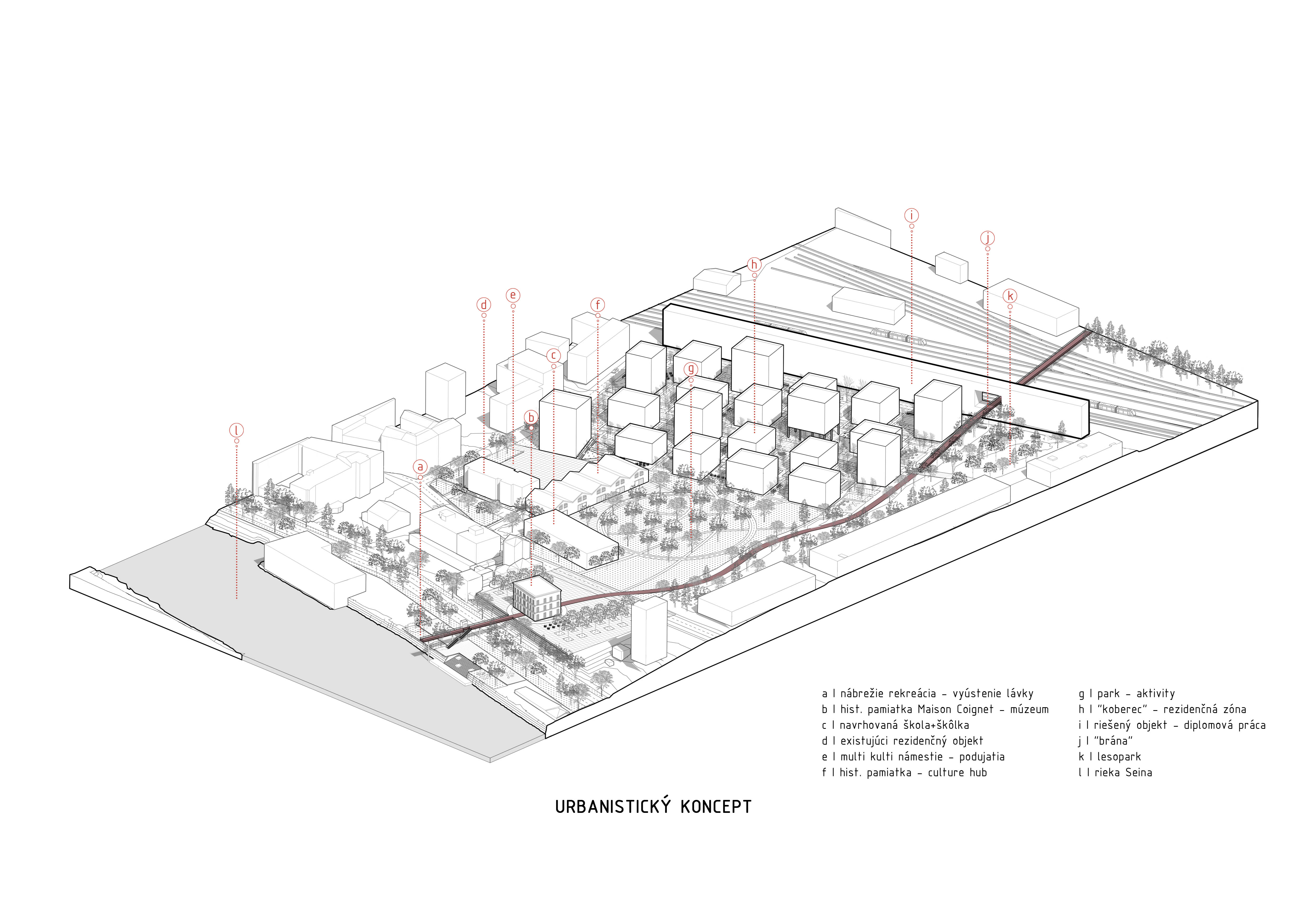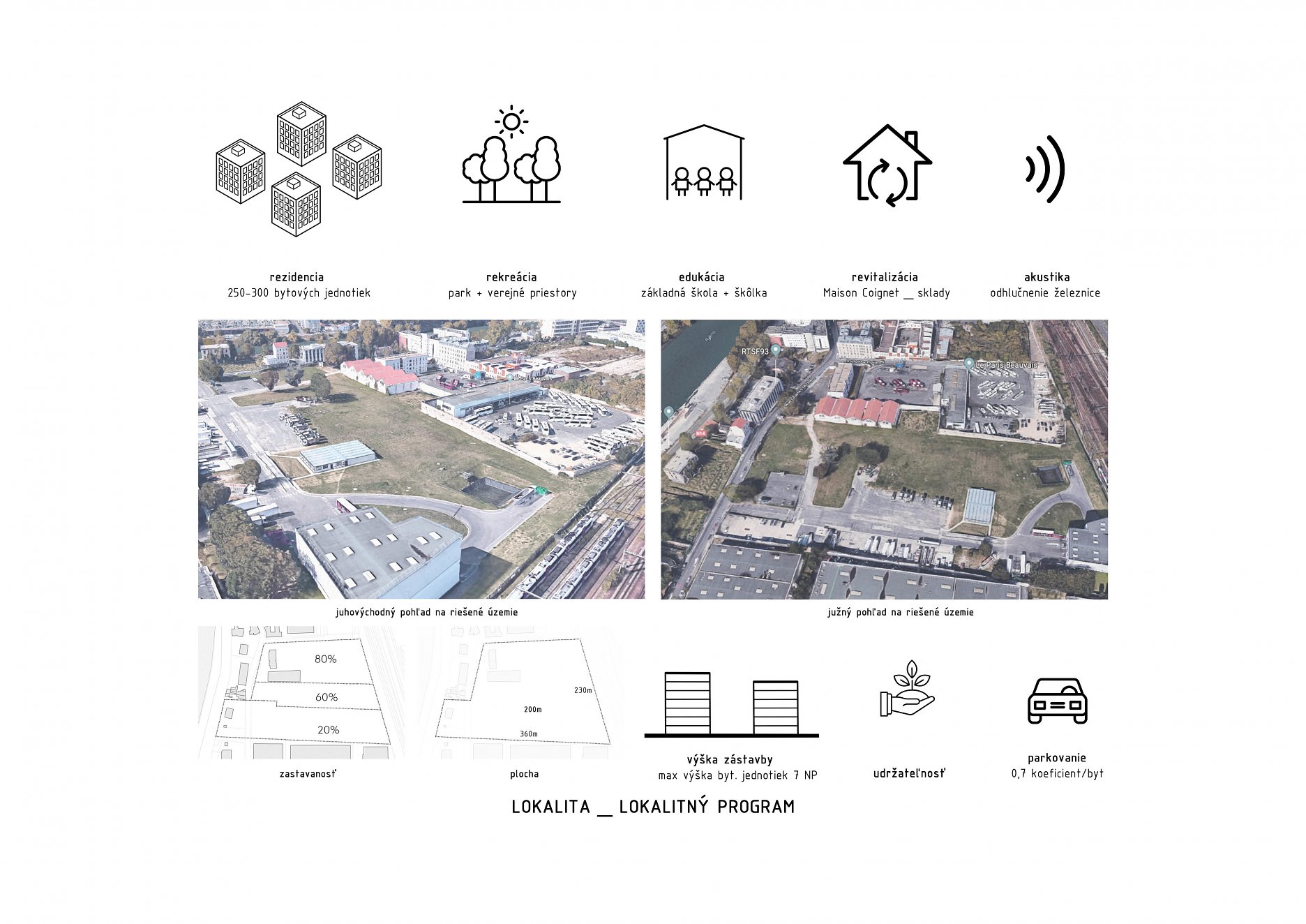 Diplomová práca reaguje na 16. ročník medzinárodnej súťaže Isover - obytný súbor Saint-Gobain Multi-Comfort Student Contest 2020, ktorej úlohou bolo navrhnúť komplexné riešenie udržateľného rozvoja výstavby mestskej rezidenčno-rekreačnej zóny v post industriálnej oblasti, kedysi najväčšieho priemyselného areálu na svete. Polyfunkčný objekt, ktorý je súčasťou urbanistického návrhu zóny, plní kľúčovú úlohu urbanistického a ideového konceptu návrhu.