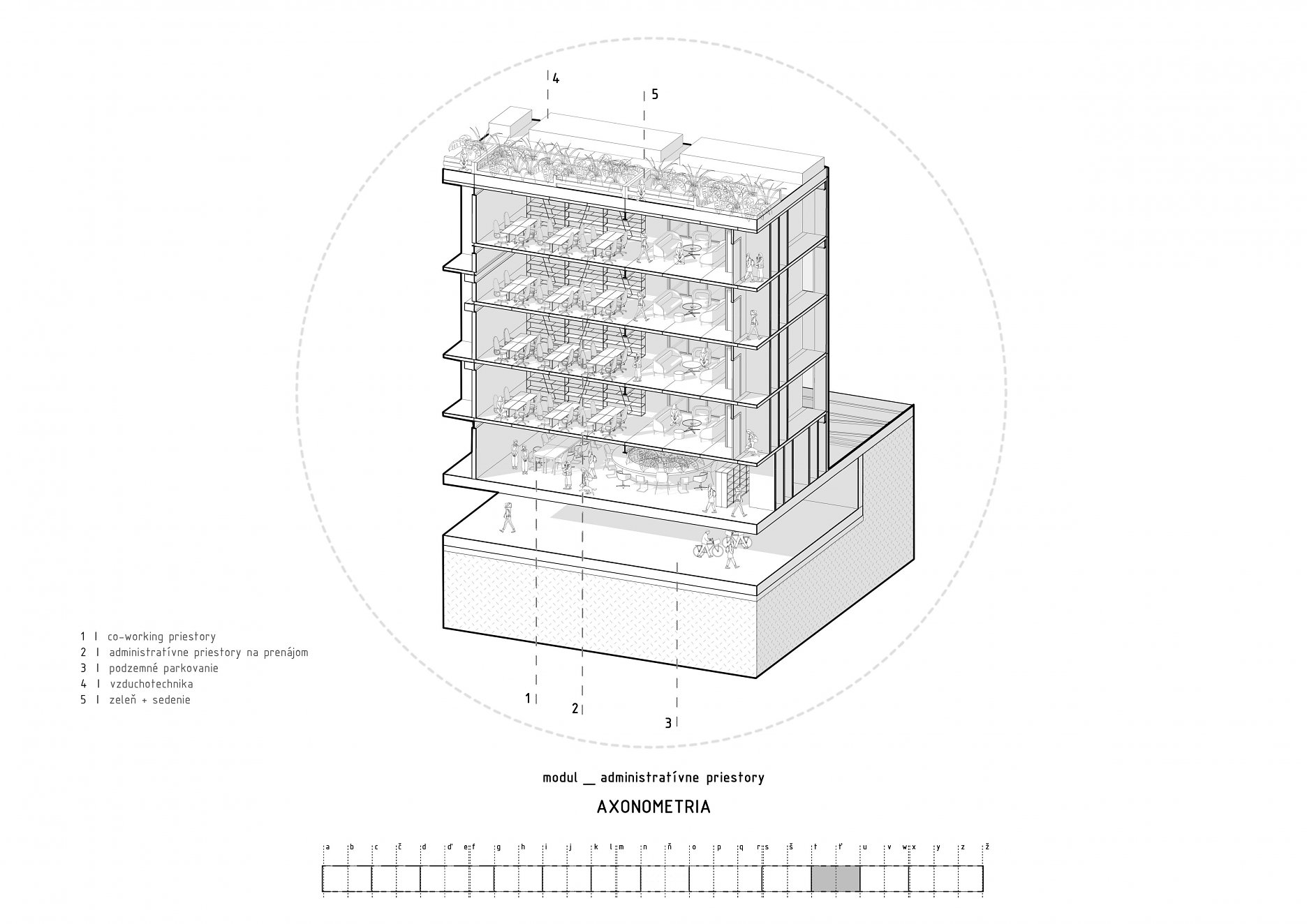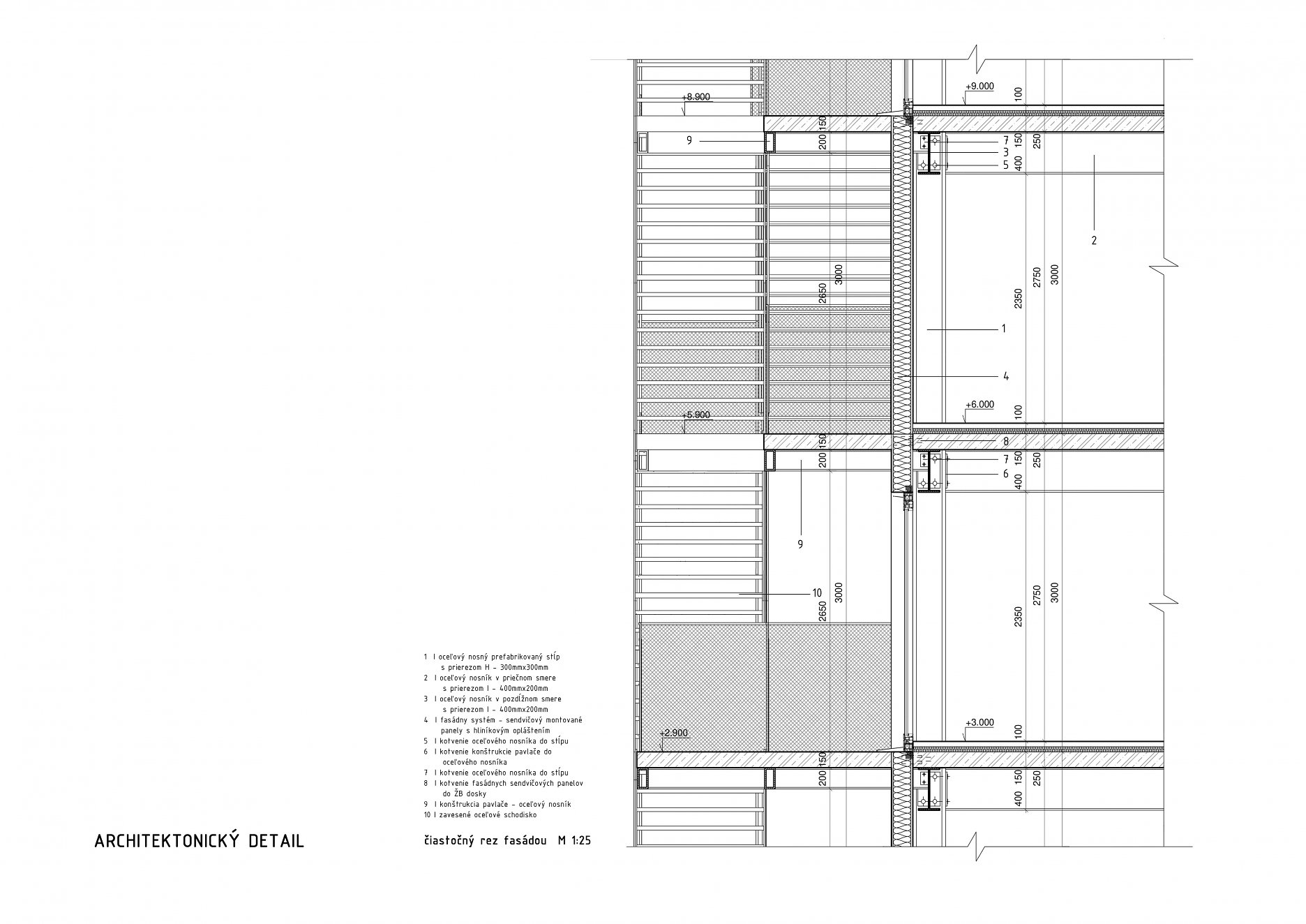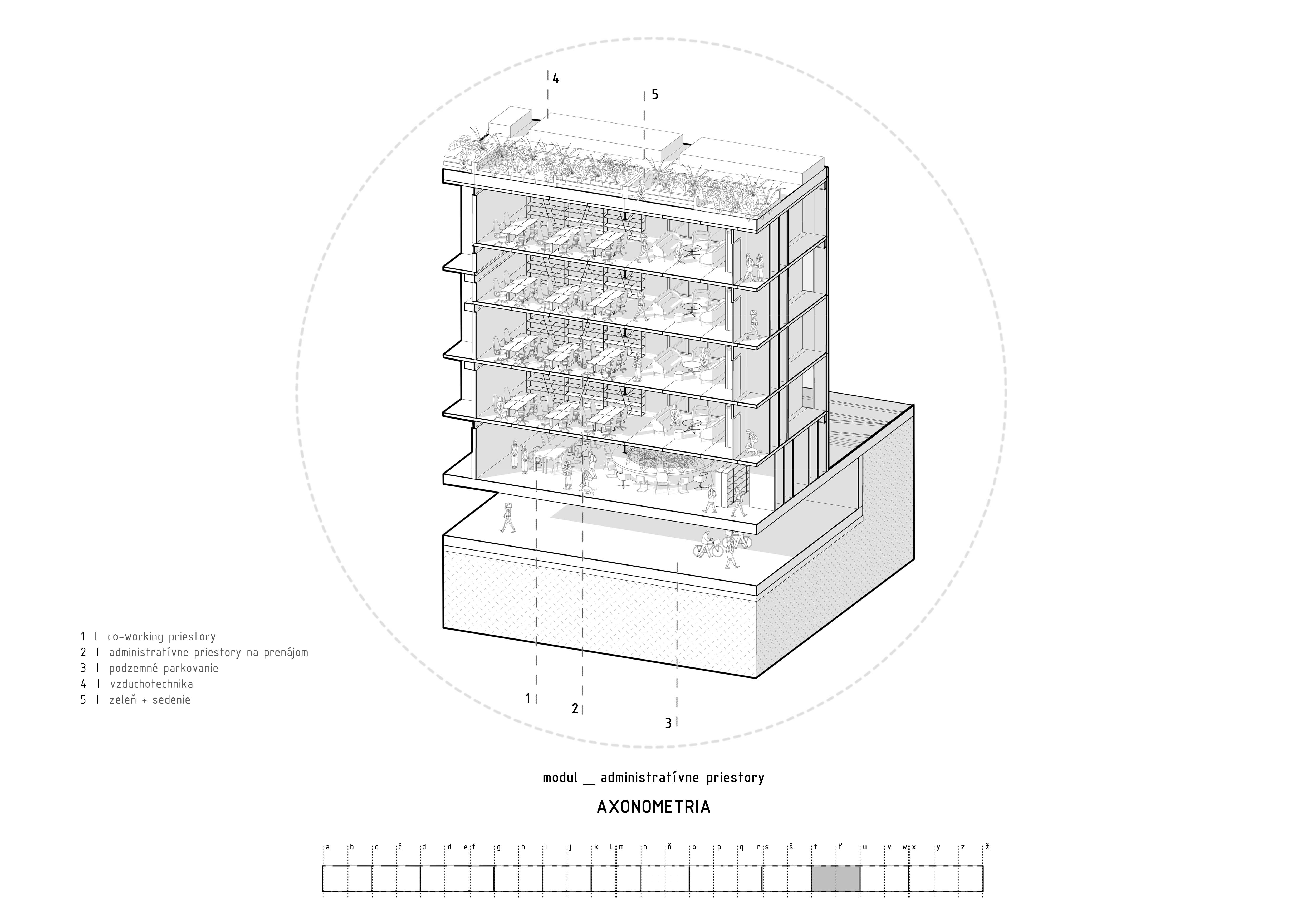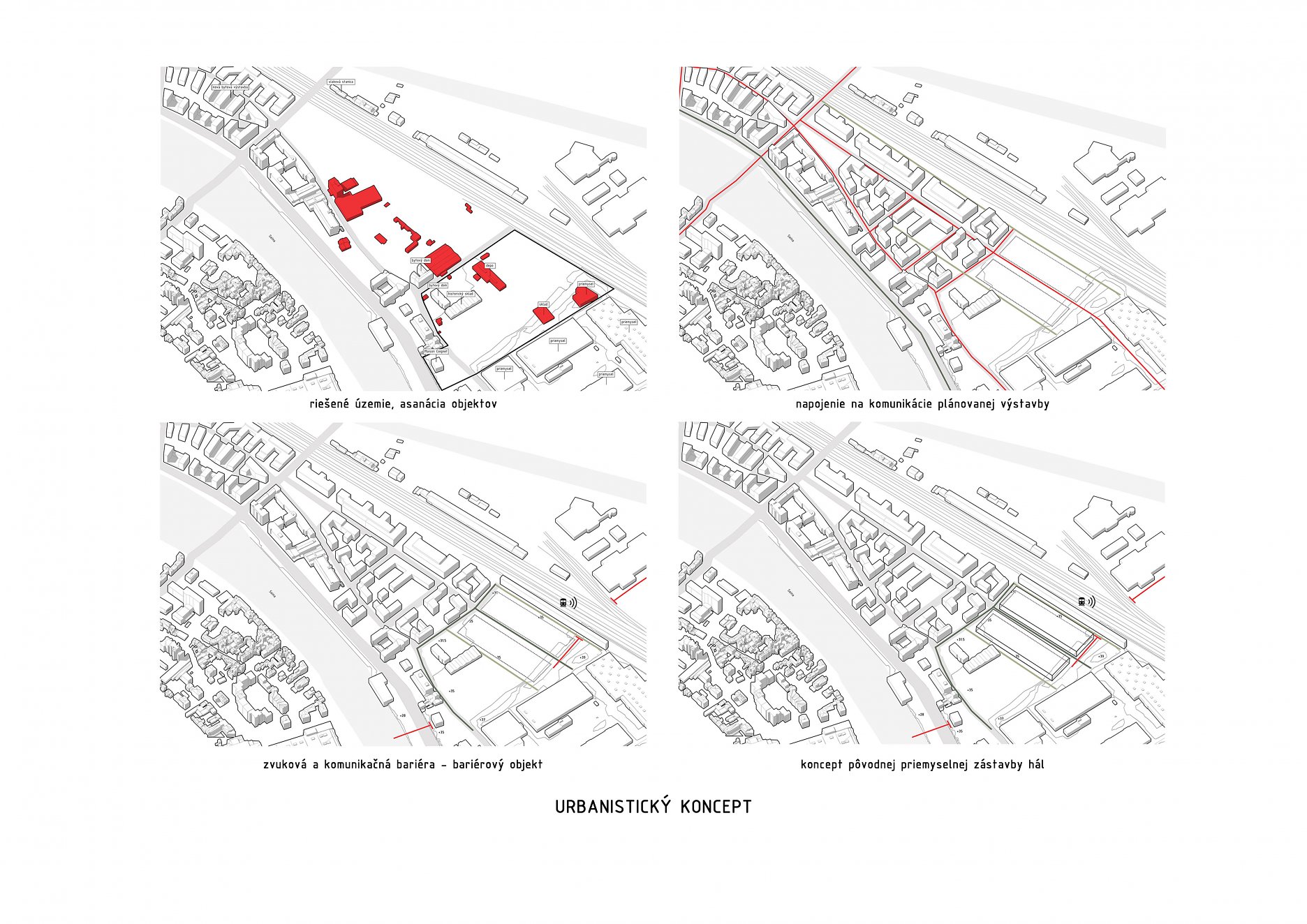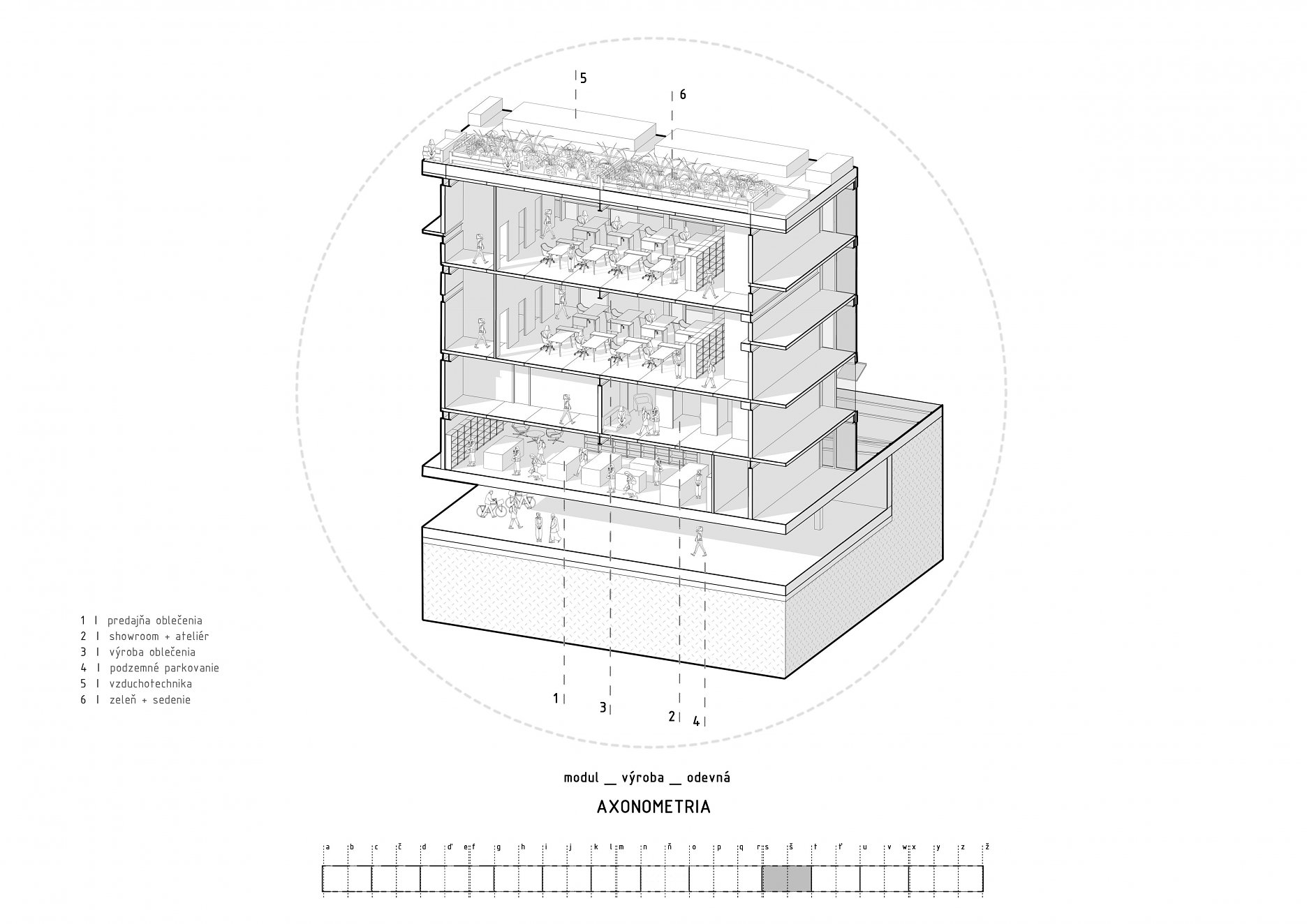 Postindustriálna zóna ovplyvnila konštrukciu navrhovaného objektu a pretavila sa do návrhu v podobe prefabrikácie.