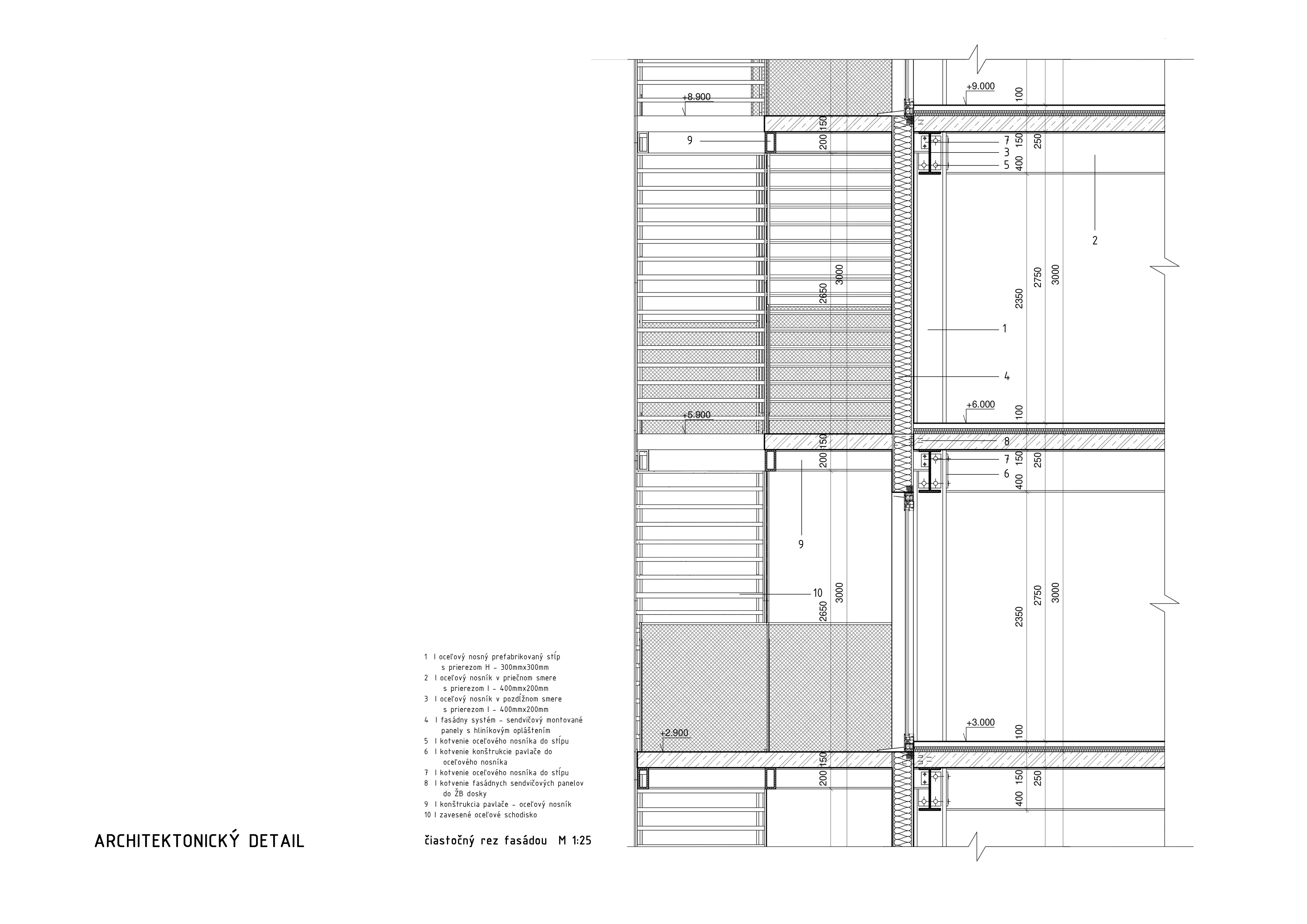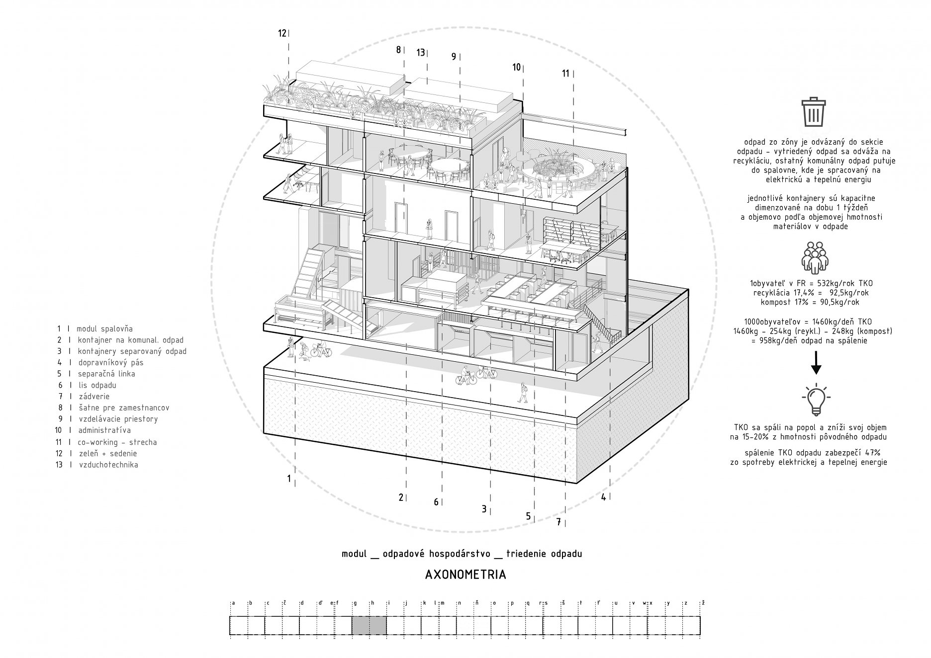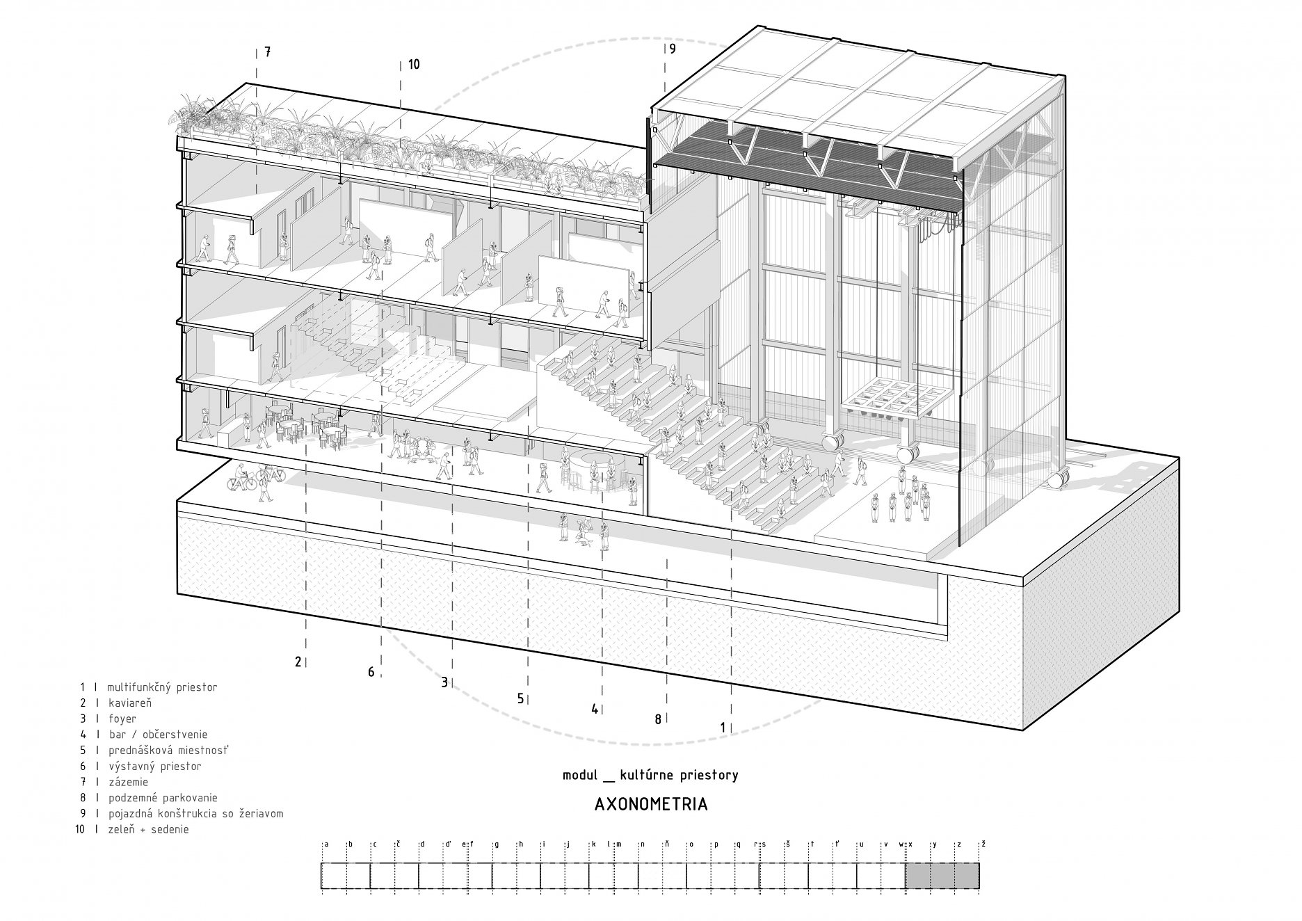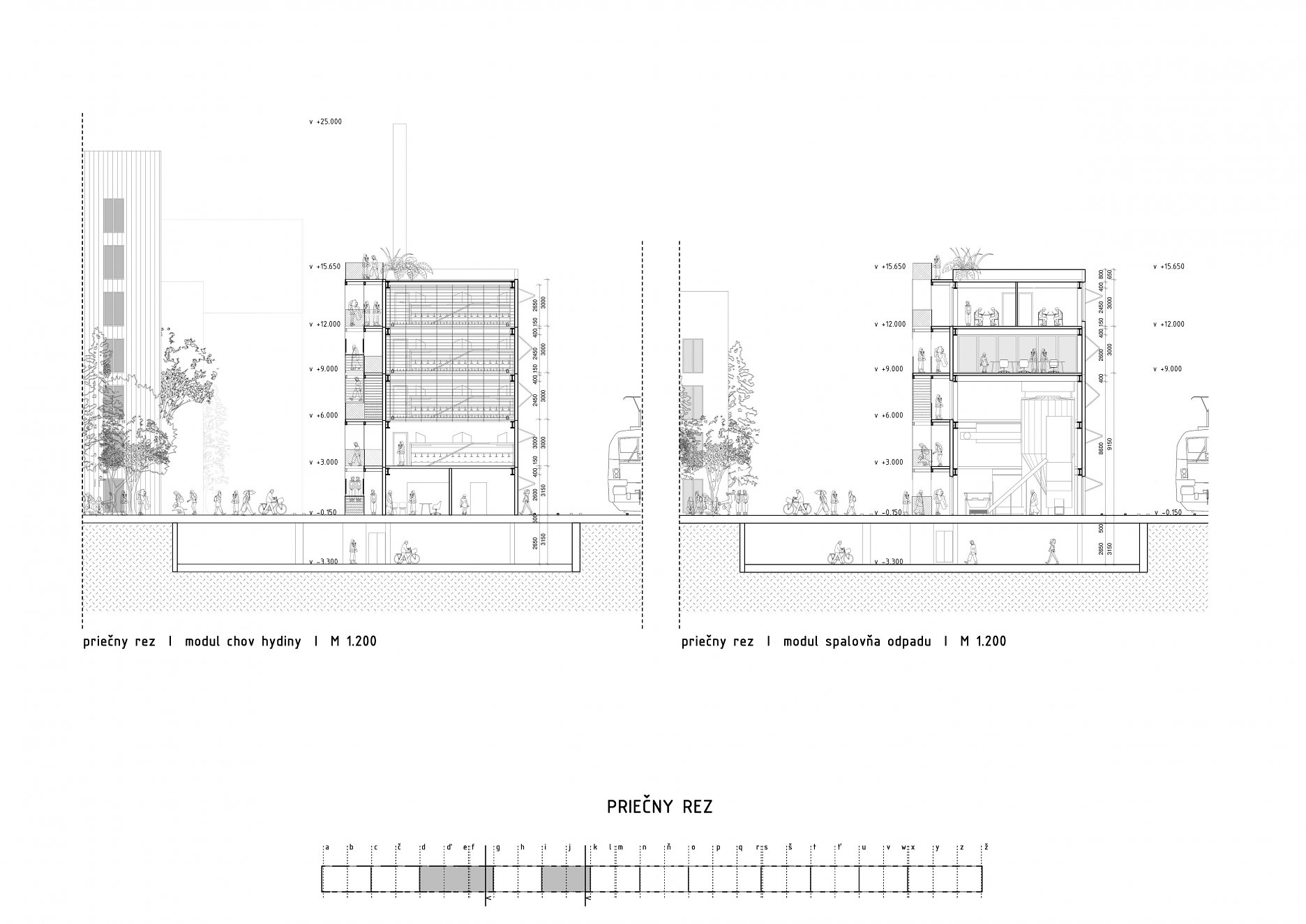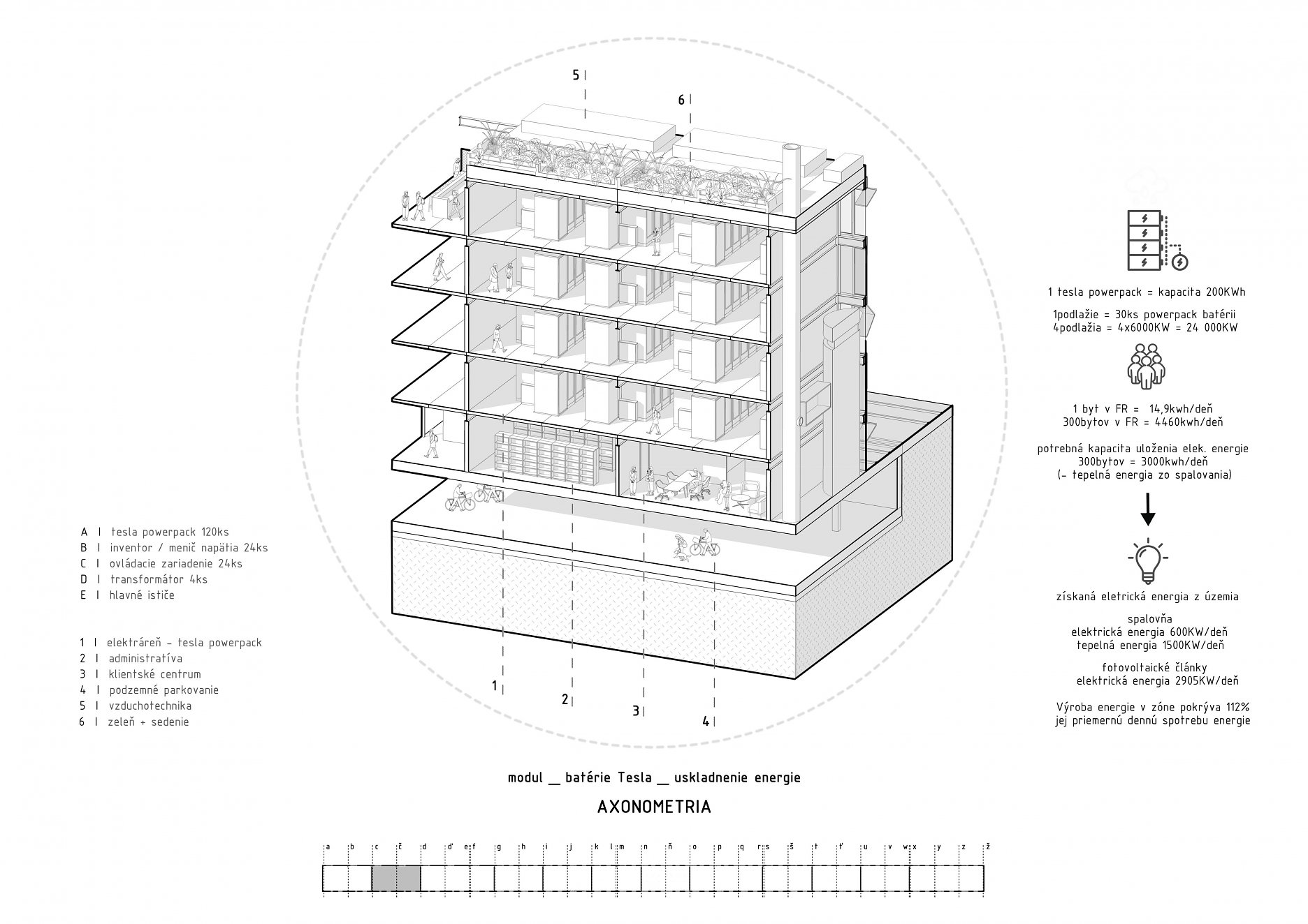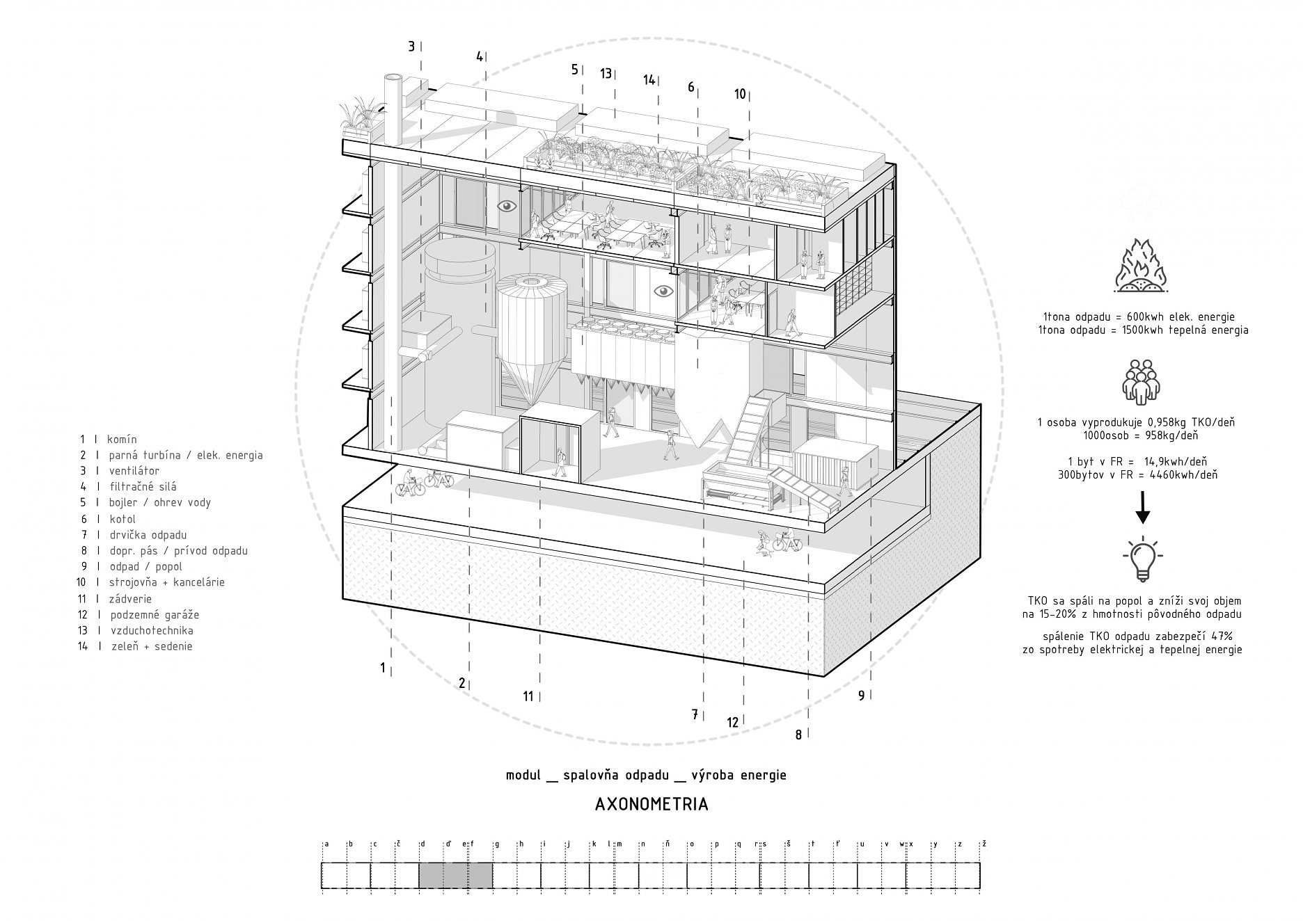 Postindustriálna zóna ovplyvnila konštrukciu navrhovaného objektu a pretavila sa do návrhu v podobe prefabrikácie.