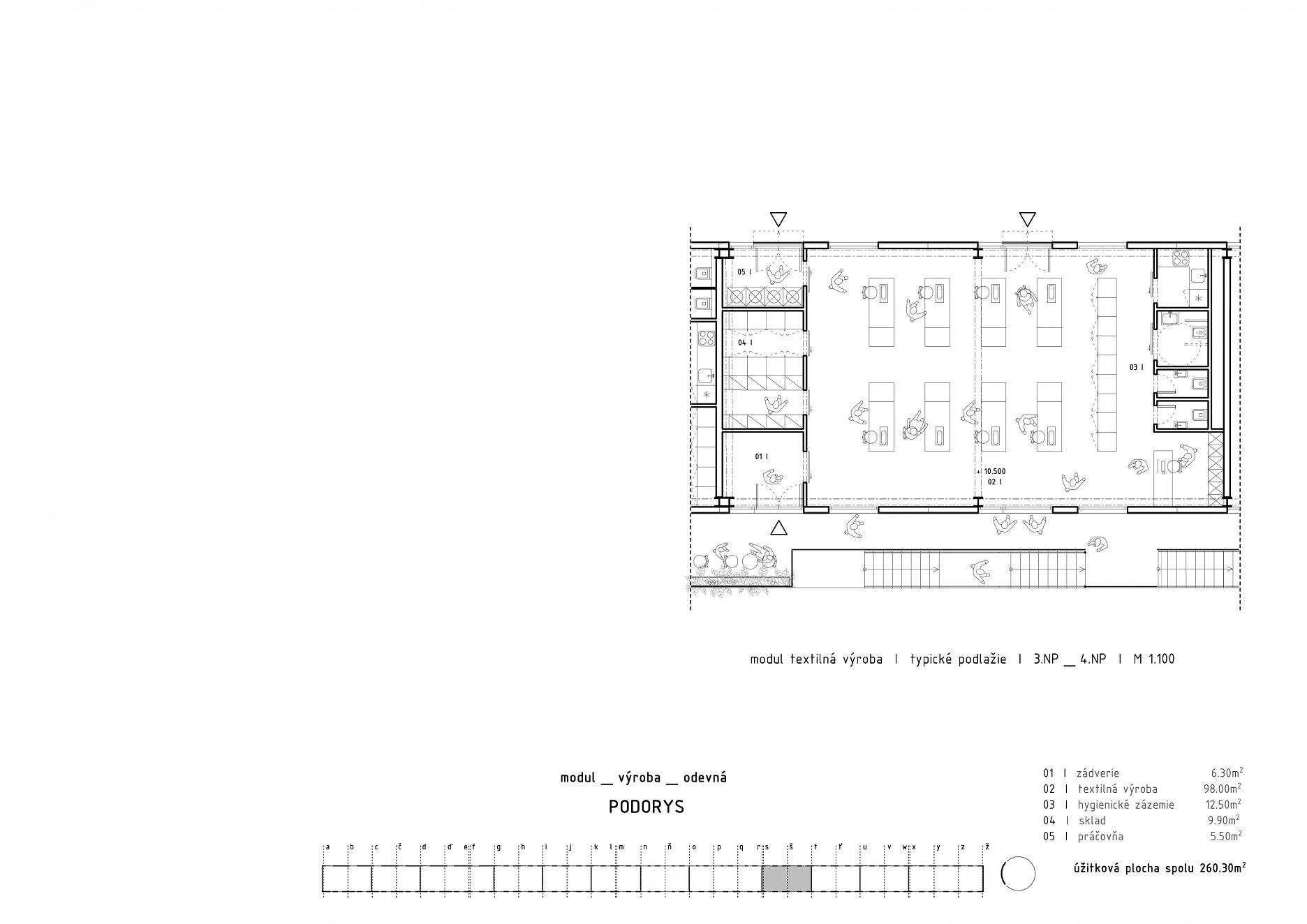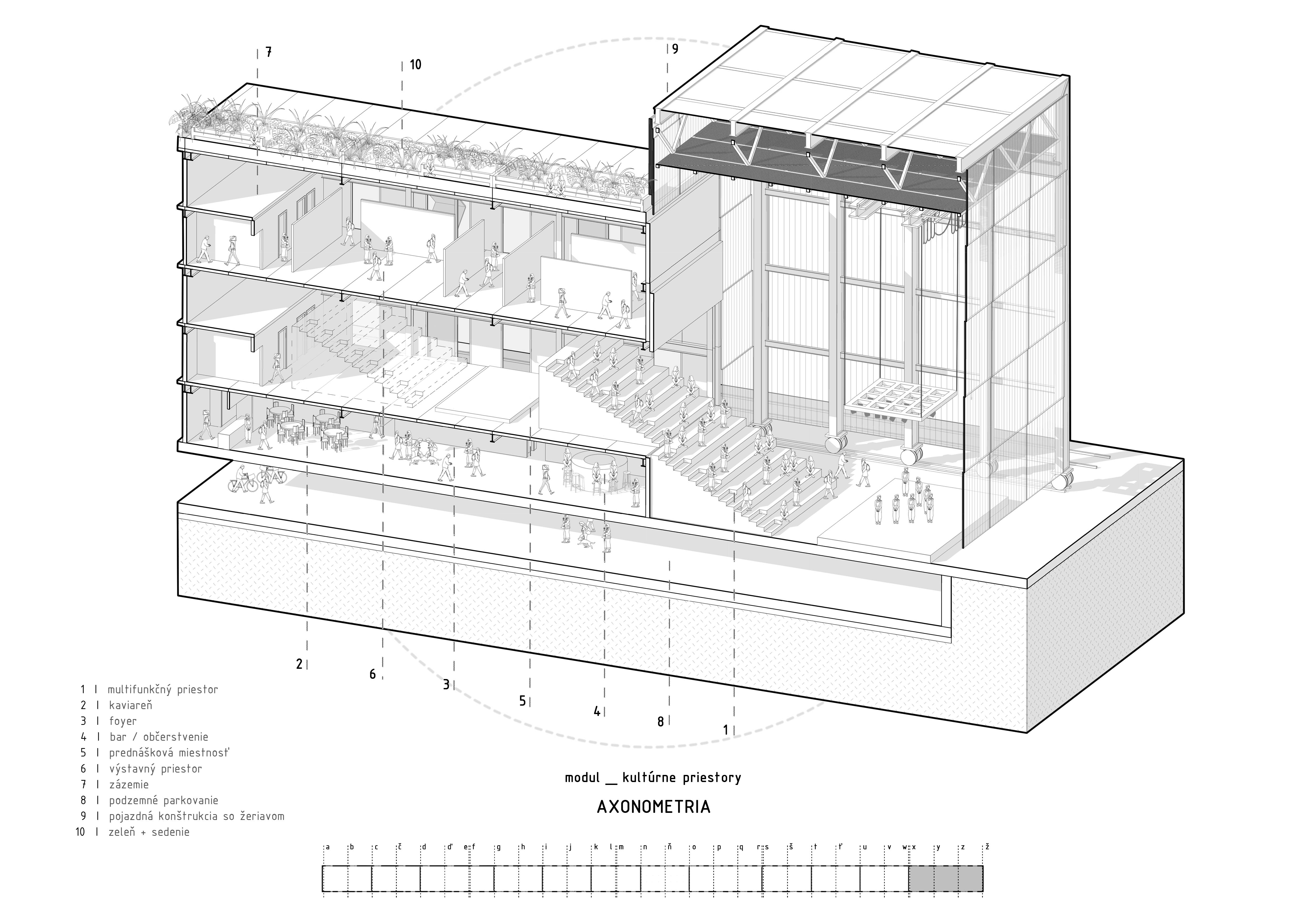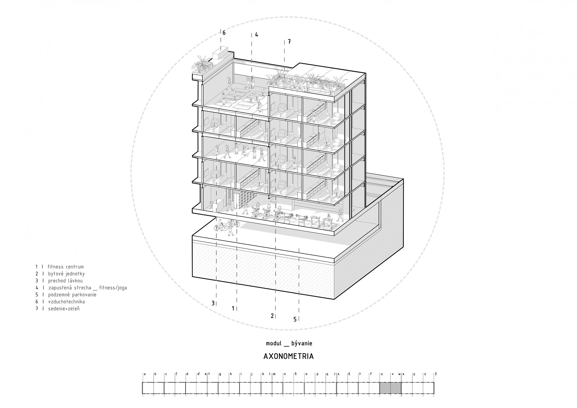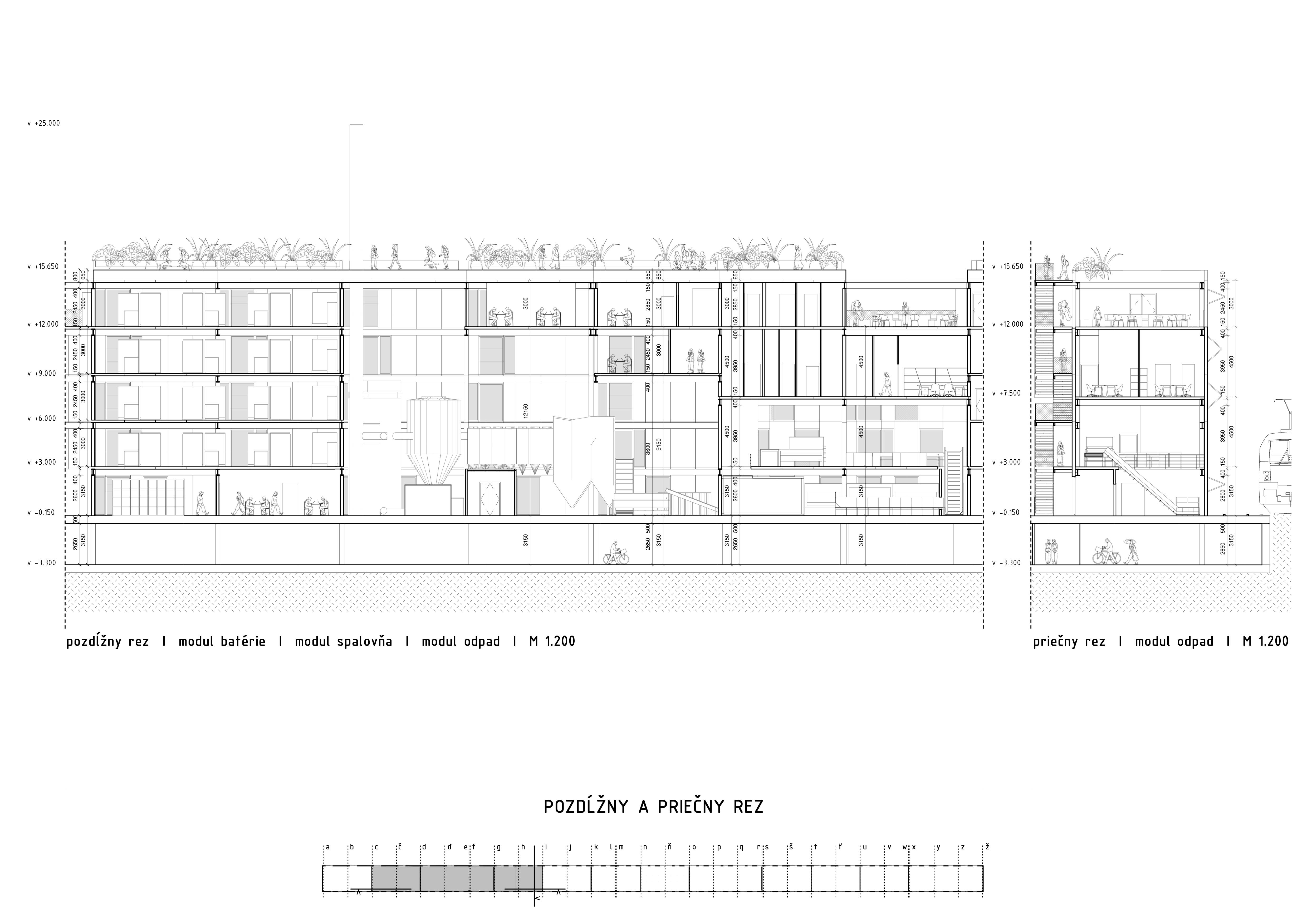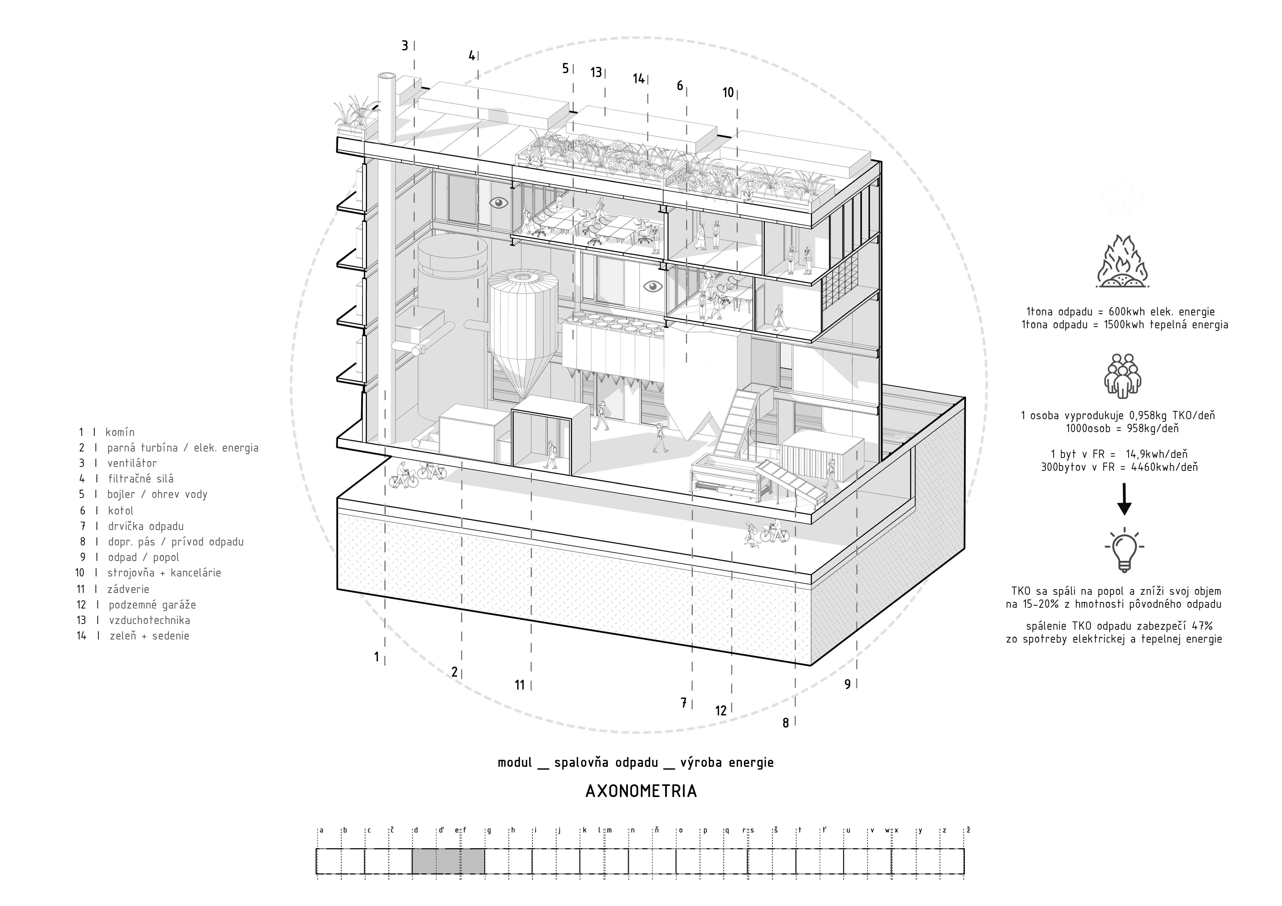 Postindustriálna zóna ovplyvnila konštrukciu navrhovaného objektu a pretavila sa do návrhu v podobe prefabrikácie.
