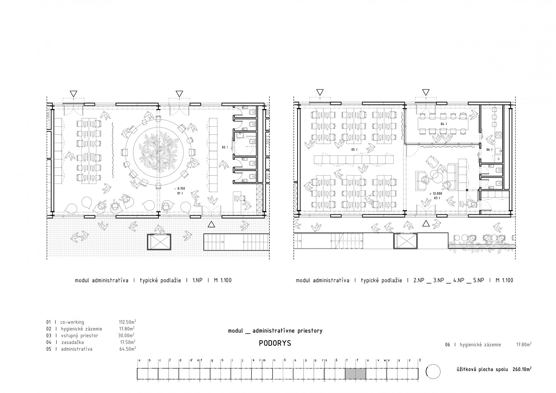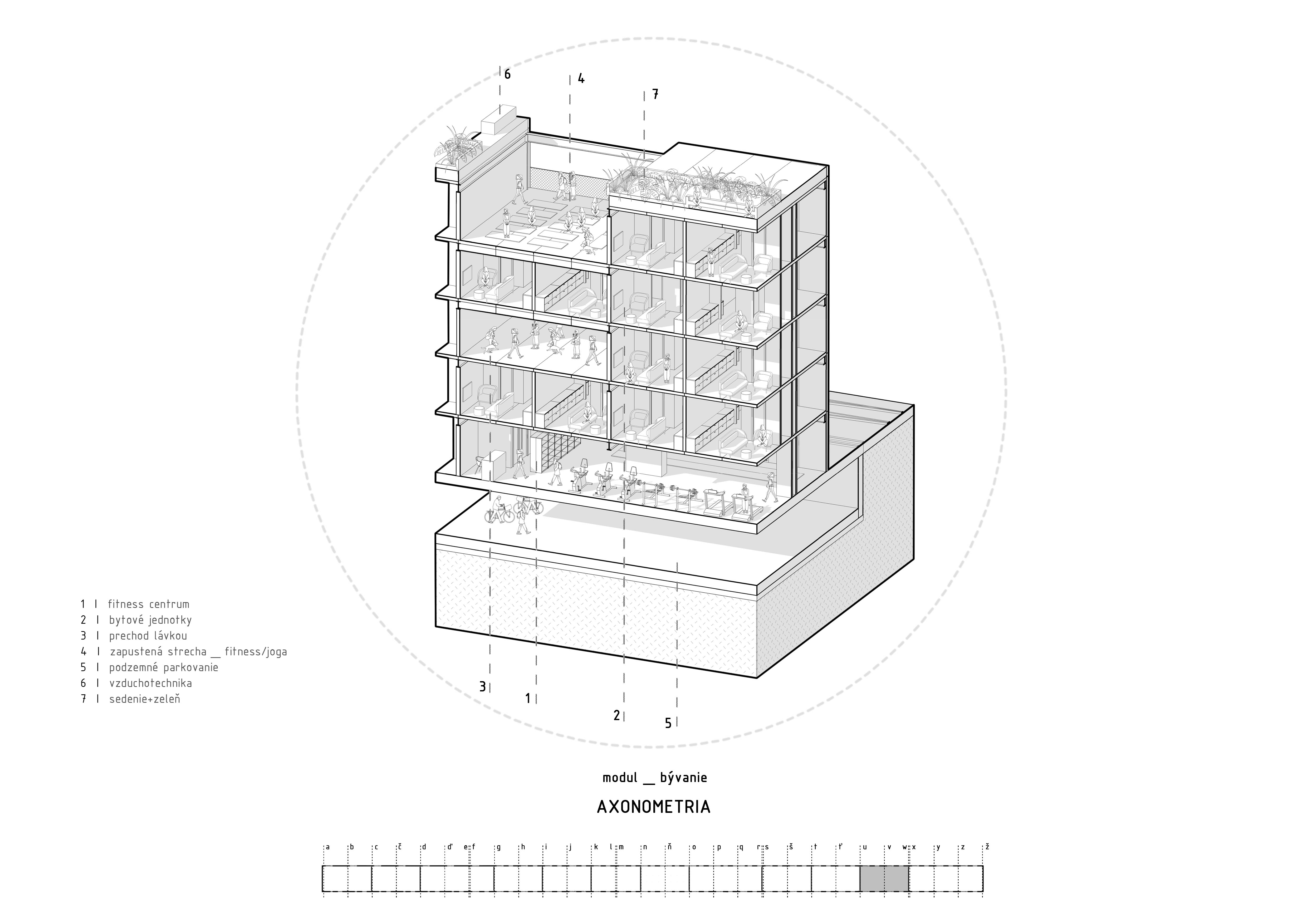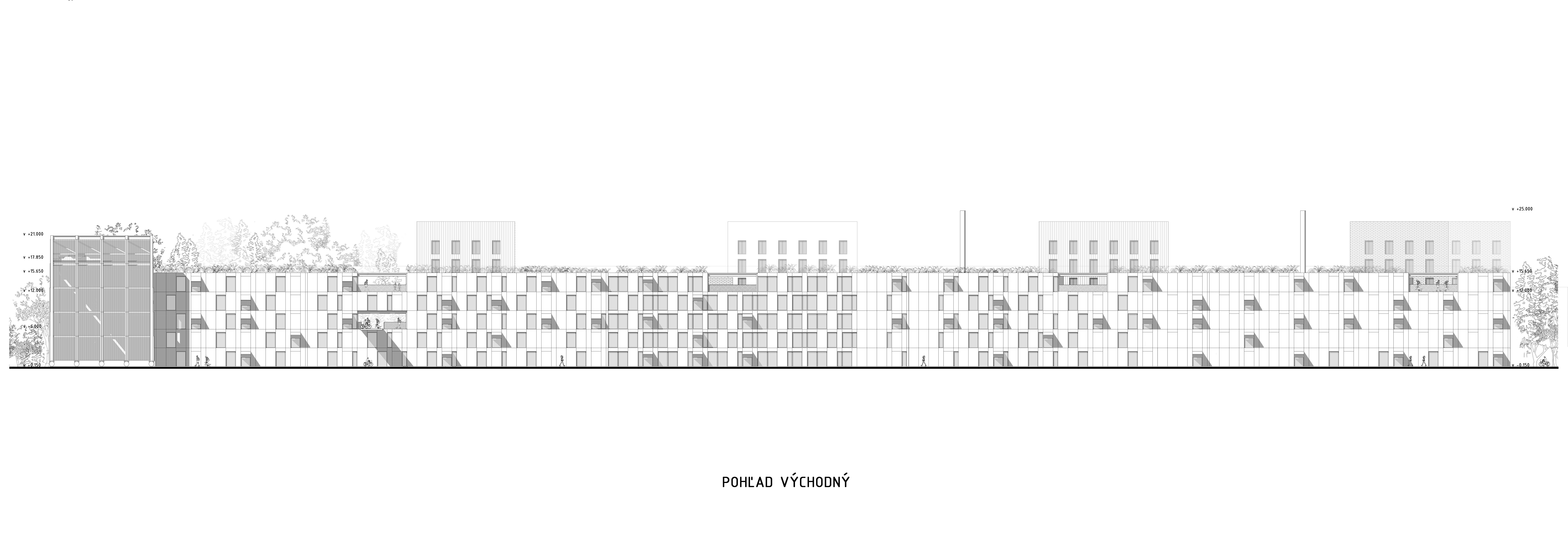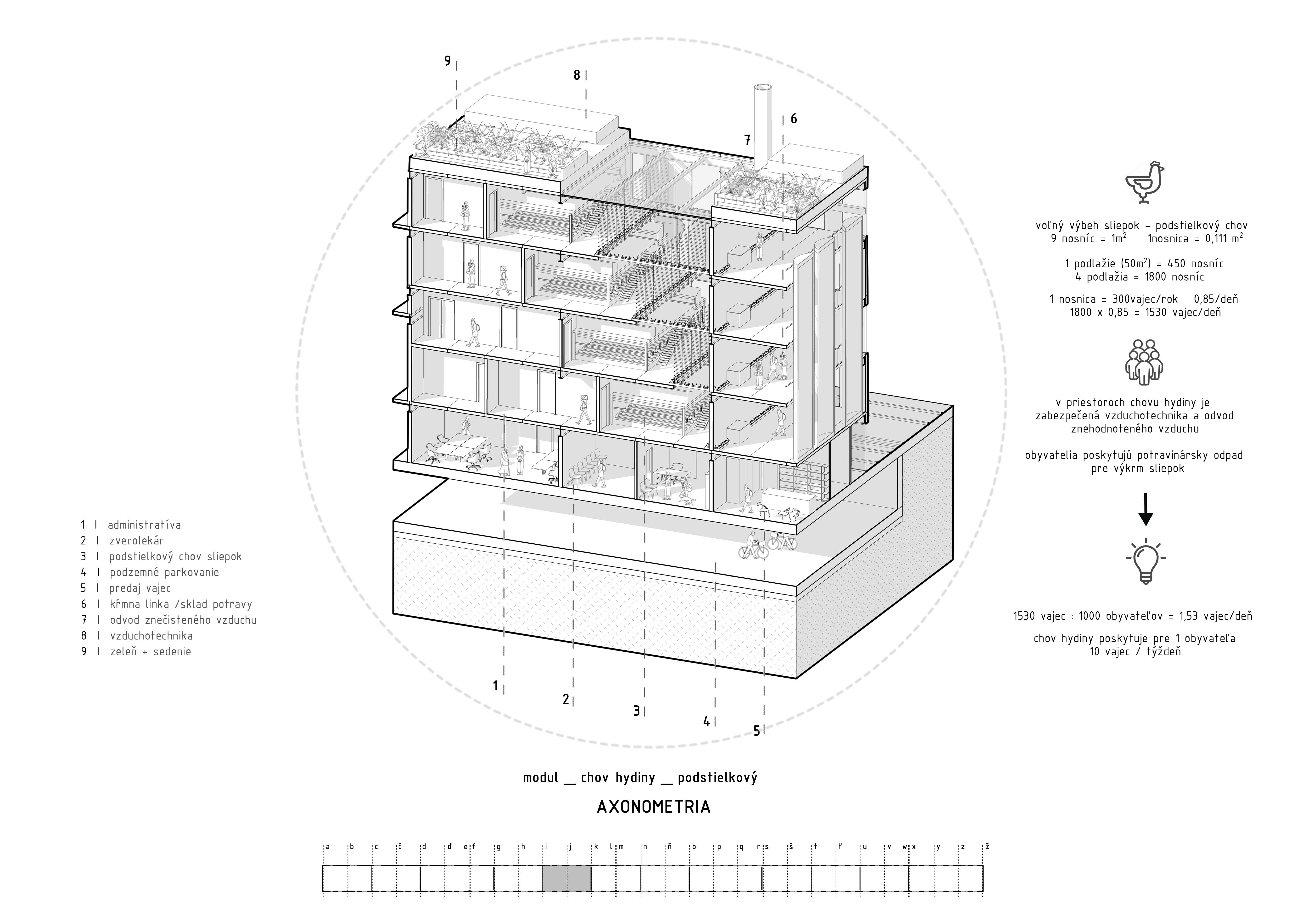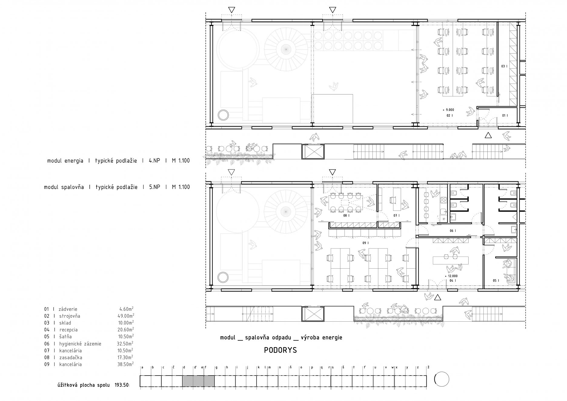 Postindustriálna zóna ovplyvnila konštrukciu navrhovaného objektu a pretavila sa do návrhu v podobe prefabrikácie.