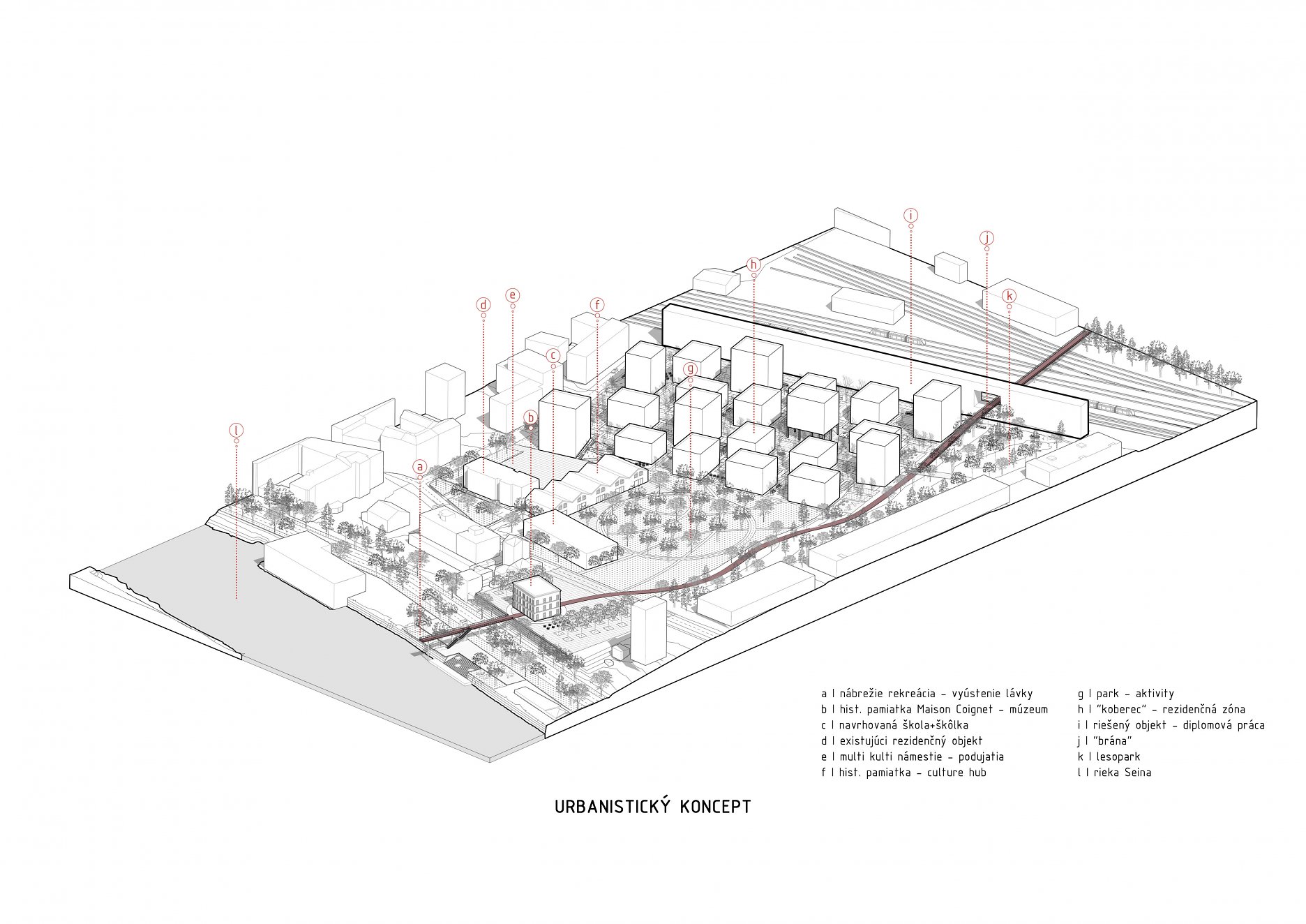 V dejinách urbanizmu sa stále hľadá ideál mesta, nájdenie jeho komplexnosti a ideálneho zahustenia. Cieľom návrhu bolo vytvoriť akési nadštandardné podmienky zastavovacej zóny pri maximalizácii sebestačnosti a nezávislého života od vonkajšieho prostredia. Výsledkom diplomovej práce je akýsi urbanistický a sociálny experiment, ktorý má ponúknuť širokú škálu rôznych funkcií, ktoré prekračujú obvyklú mestskú polyfunkčnosť.