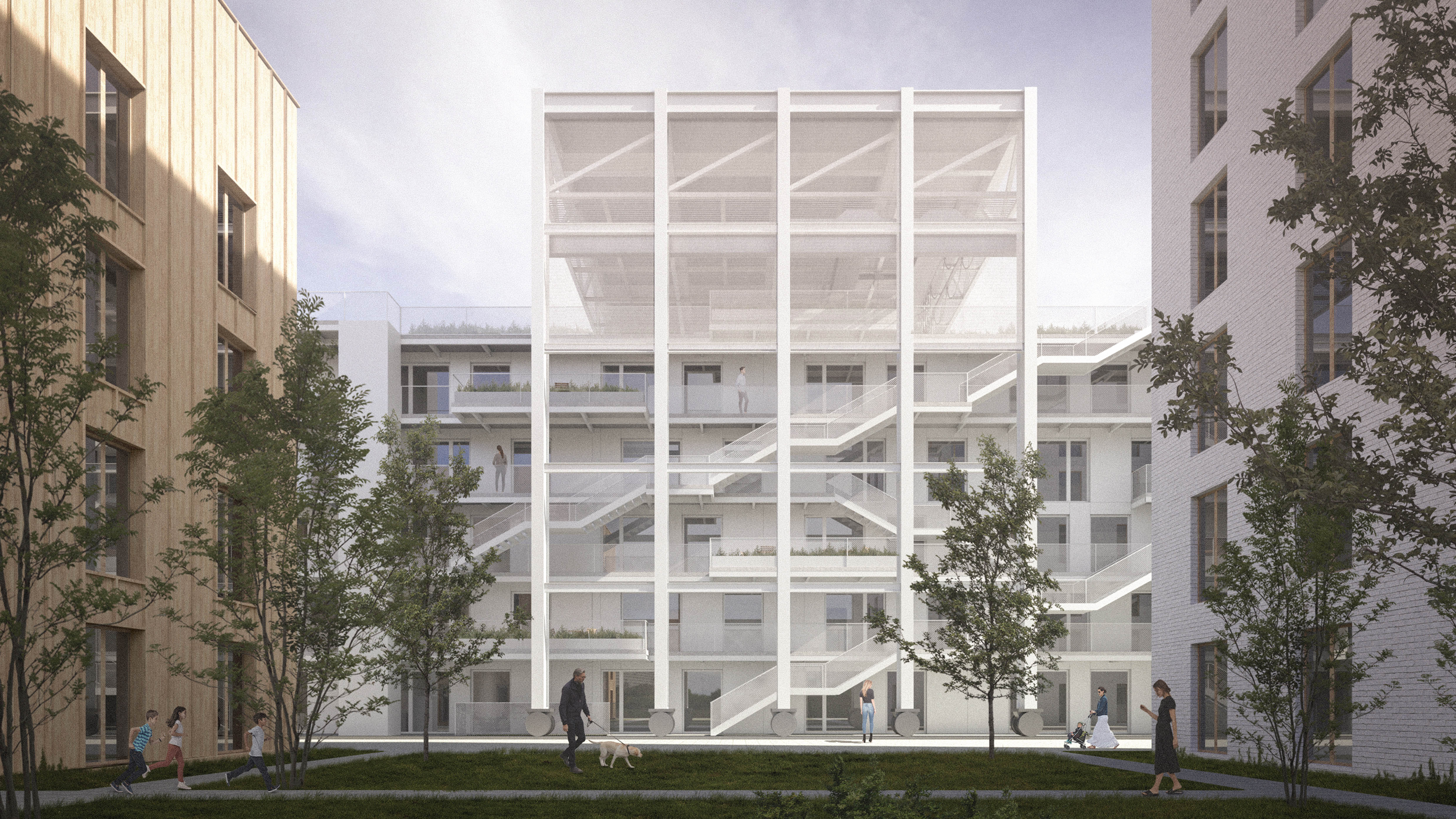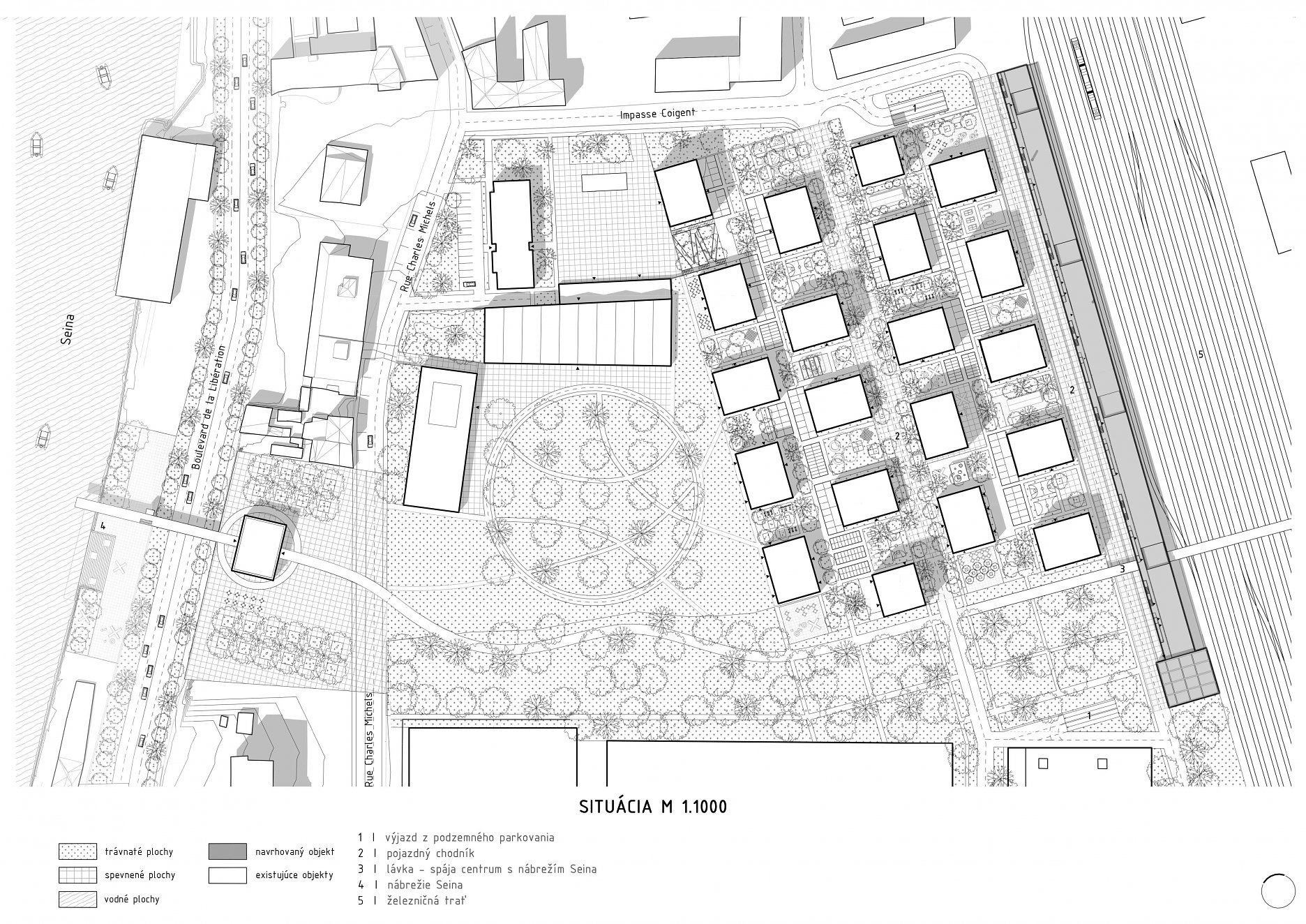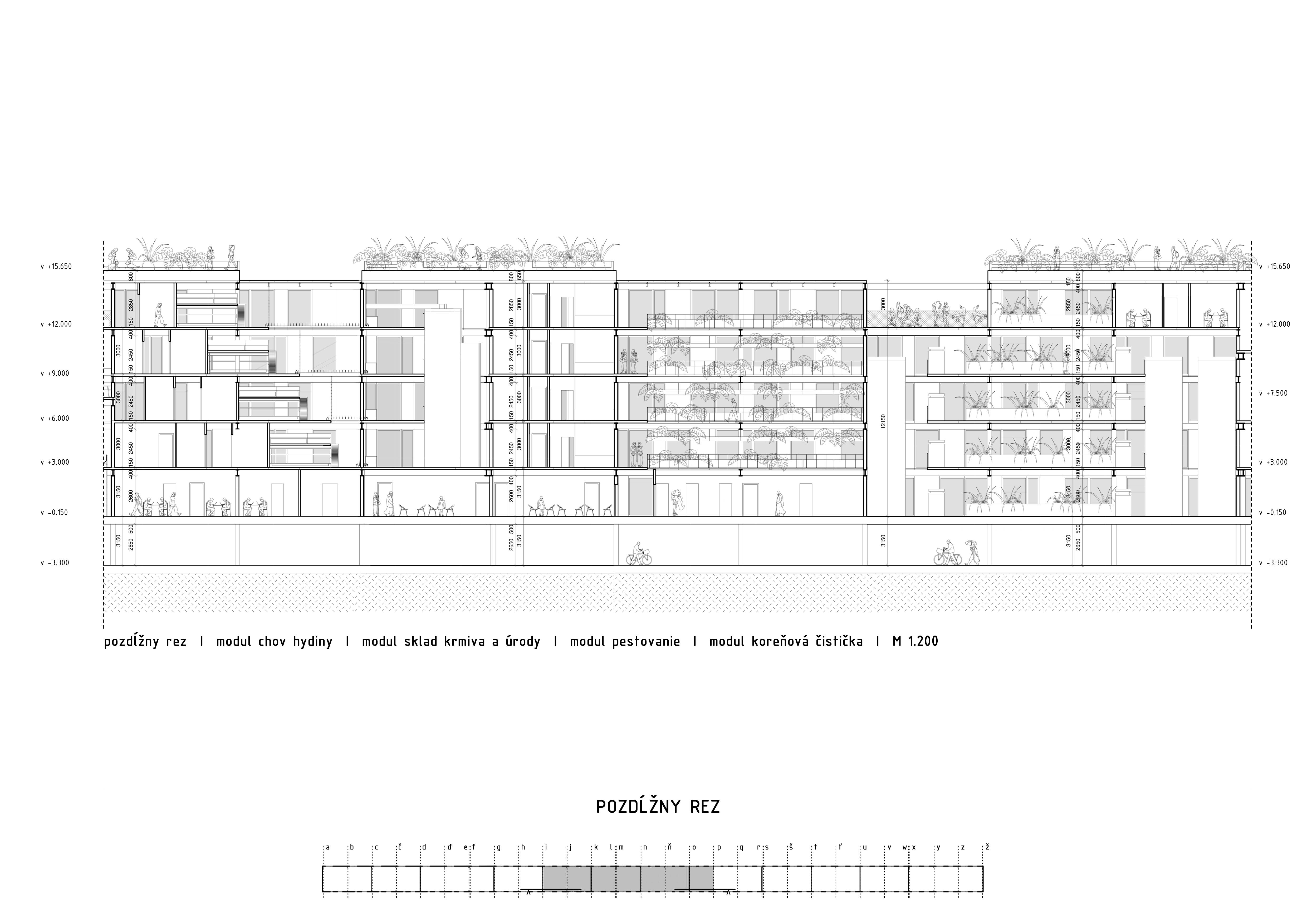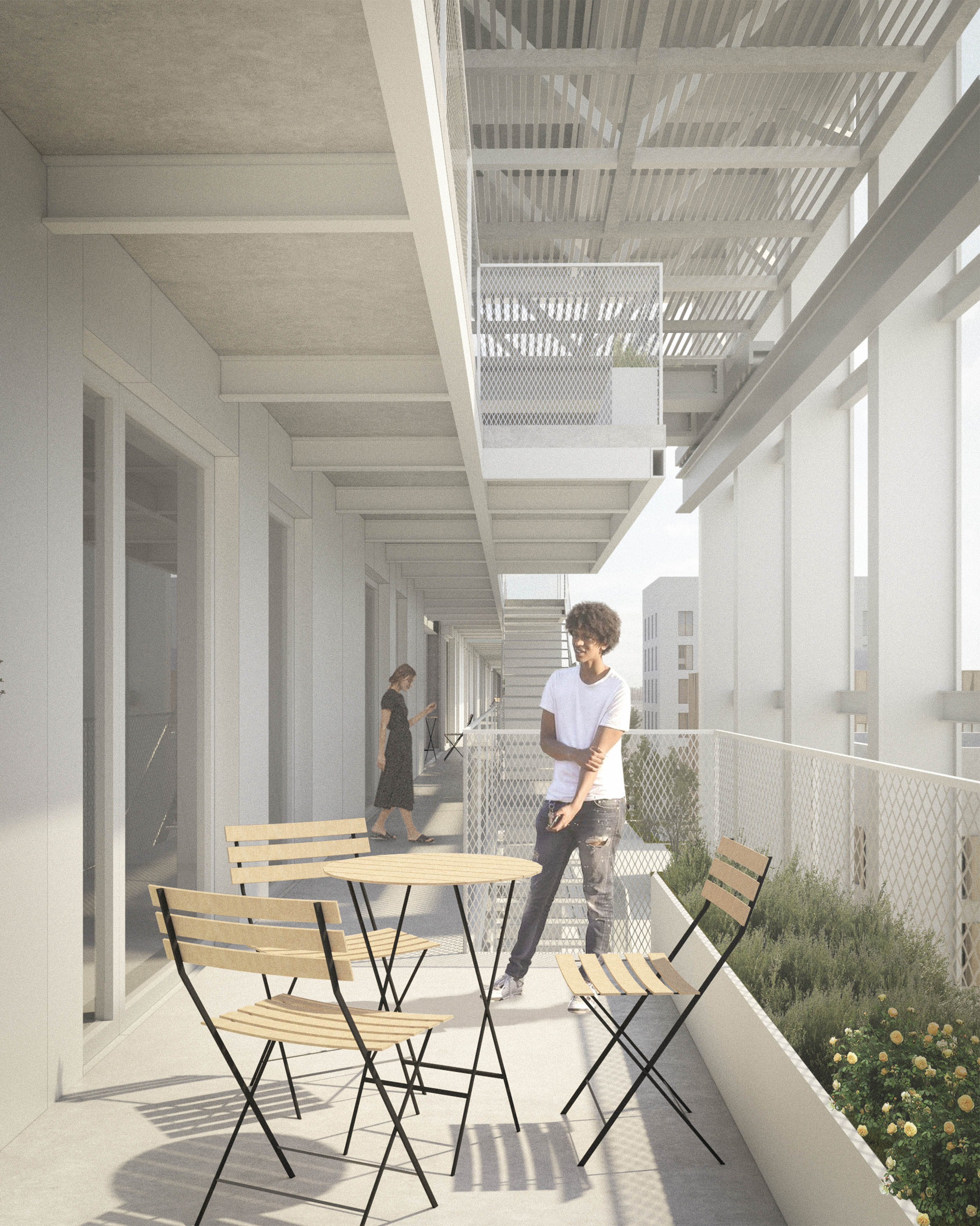Objekt sa nachádza na rozhraní riešeného územia a železničnej trati a zohráva úlohu bariérového domu, ktorý má zabezpečiť vhodné akustické podmienky navrhovanej rezidenčnej oblasti. Typologicky objekt predstavuje dlhý dom, ktorý bol špecifickou ideovou figúrou v 20. storočí a za inšpiráciou som nemusela ísť ďaleko. Ako napríklad v Paríži Montparnasse alebo Ríme Corviale alebo rezidenčný komplex Les Courtilliéres priamo v Saint Denis. Všetky spomenuté objekty naprieč históriou tohto typologického druhu boli navrhované ako prevažne monofunkčné stavby. V práci navrhujem nový typologický druh, tzv. typologický hybrid. Zamýšľam sa ale aj nad úvahami utopistického ideálu dlhej a polyfunkčnej hybridnej formy. V práci som zistila, že sa vraciam k ideálu Corviale, ale v zmysle udržateľnosti a novým potrebám spoločnosti, ktorá smeruje k efektívnejšiemu a ekologickejšiemu fungovaniu obytnej zóny.