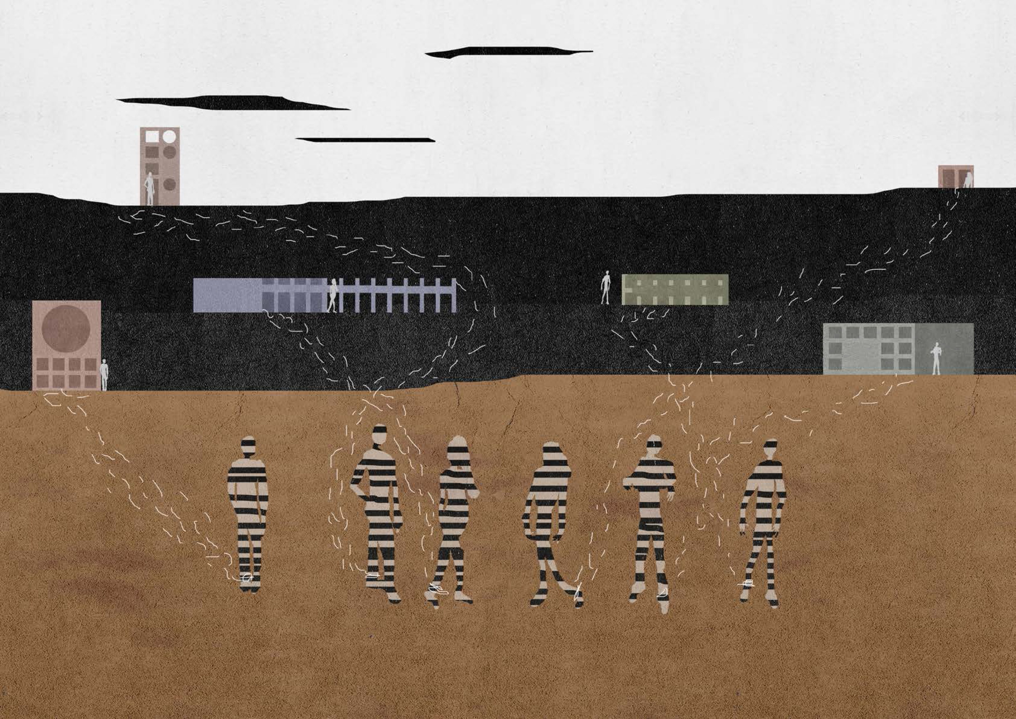 V práci analyzujem konkrétne spoločenské vstupy vplývajúce na psychiku väzňa a jeho vnútorné reakcie. Hľadám súvislosti medzi bežnými procesmi prebiehajúcimi vo väzení a všeobecným spoločenským poriadkom. Teórie voľne vovádzajú do samotného riešenia konkrétnej väznice v poslednej tretine textu, ktorá bola zároveň praktickou časťou diplomovej práce. Ilustrácie sprevádzajúce celý text doplňujú jednotlivé témy a myšlienky, zhmotňujú ich abstraktnosť do antropomorfných motívov.