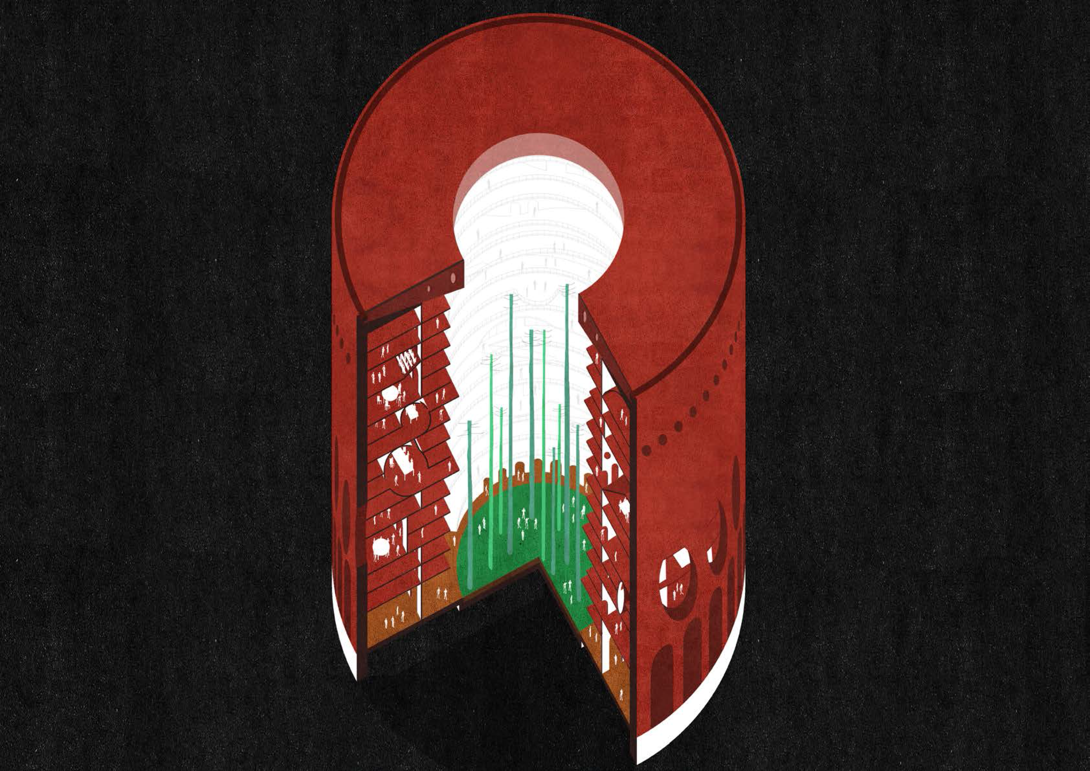 Poslednou fázou väzenia je znova istá forma Panoptika - v tomto prípade je však veľký brat uprostred nahradený zeleným parkom, oázou s voľným pohybom. Namiesto komunikačného ramena je tu vertikálnou aj horizontálnou komunikáciou veľká rampa - ulica, ktorá je sama o sebe miestom stretnutí a slobodného pohybu. Namiesto malých samostatných ciel tu sú veľké otvorené priestory, voľne prenikajúce sa.