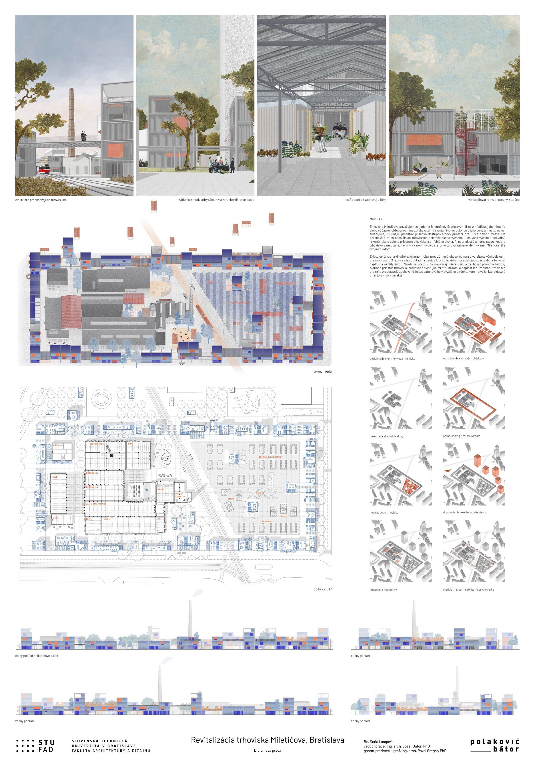 Dnes priblížime prácu, ktorá vznikla na pôde Fakulty architektúry STU Bratislava v rámci vertikálneho ateliéru Polakovič / Bátor. Diplomová práca Soni Langovej sa zaoberá mnohokrát (bohužiaľ len akademicky) riešenou témou revitalizácie trhoviska na Miletičovej ulici. Jedným zo zásadných motívov návrhu je nová trasa električky, ktorá pretína areál trhoviska a delí ho na dve časti.