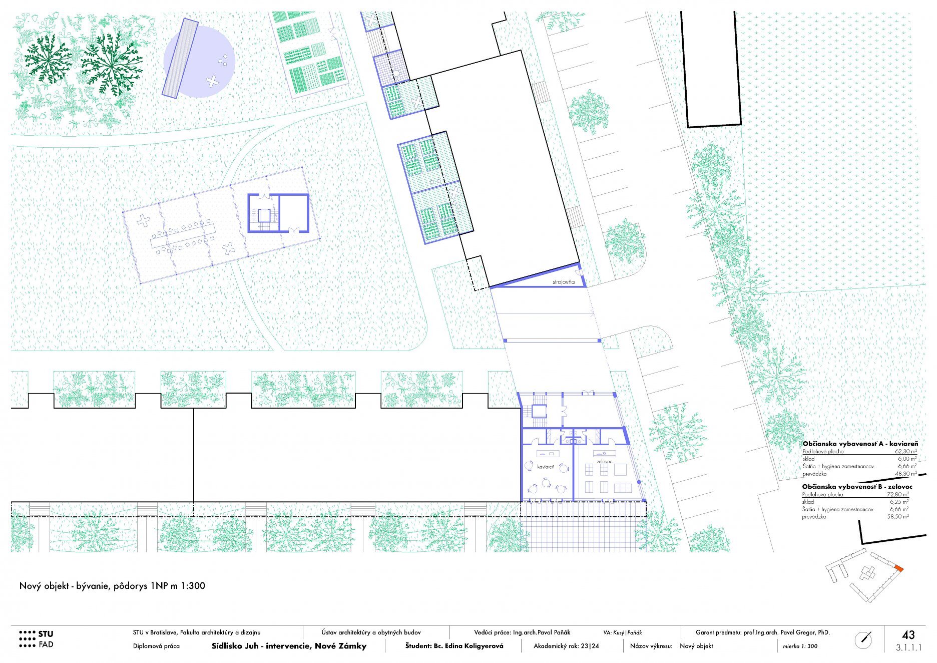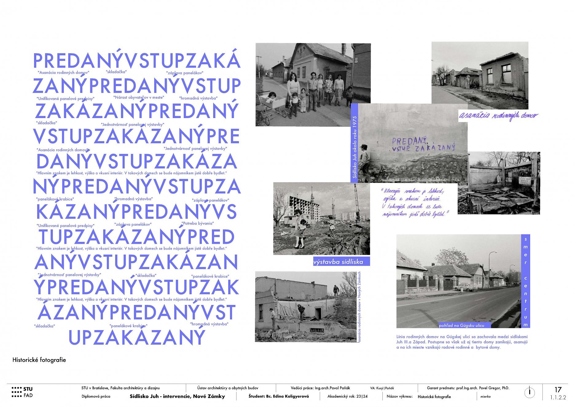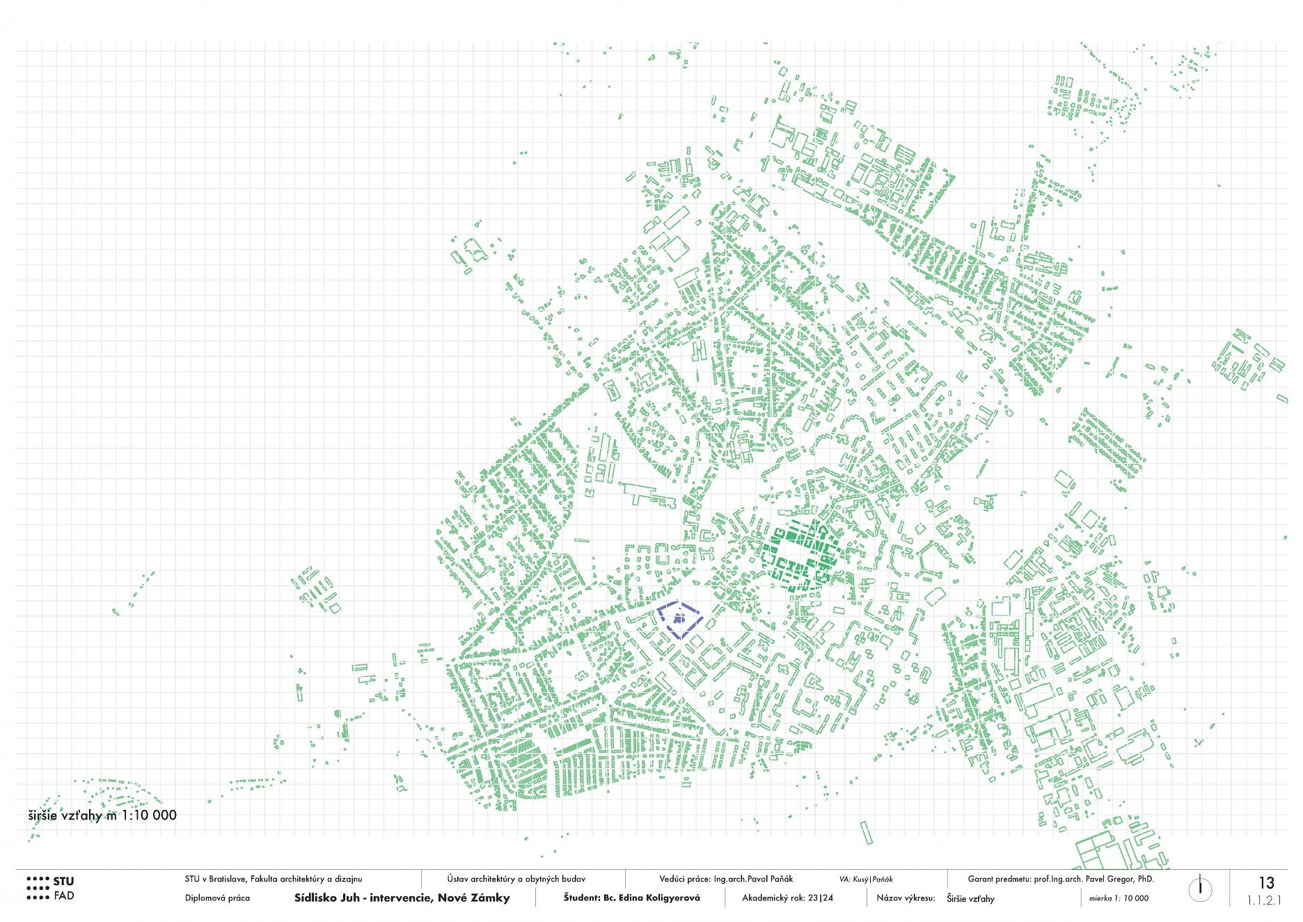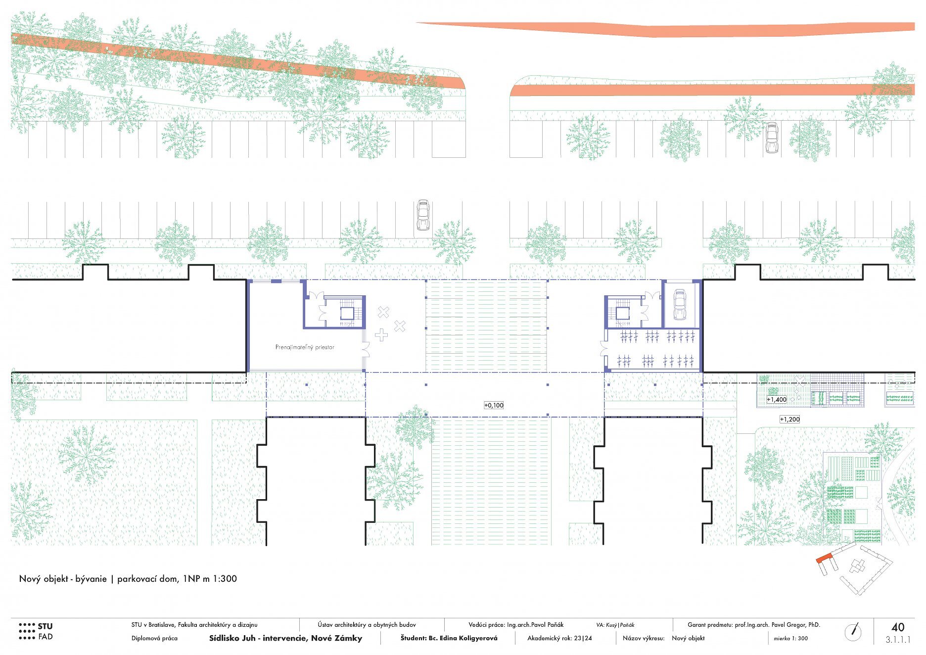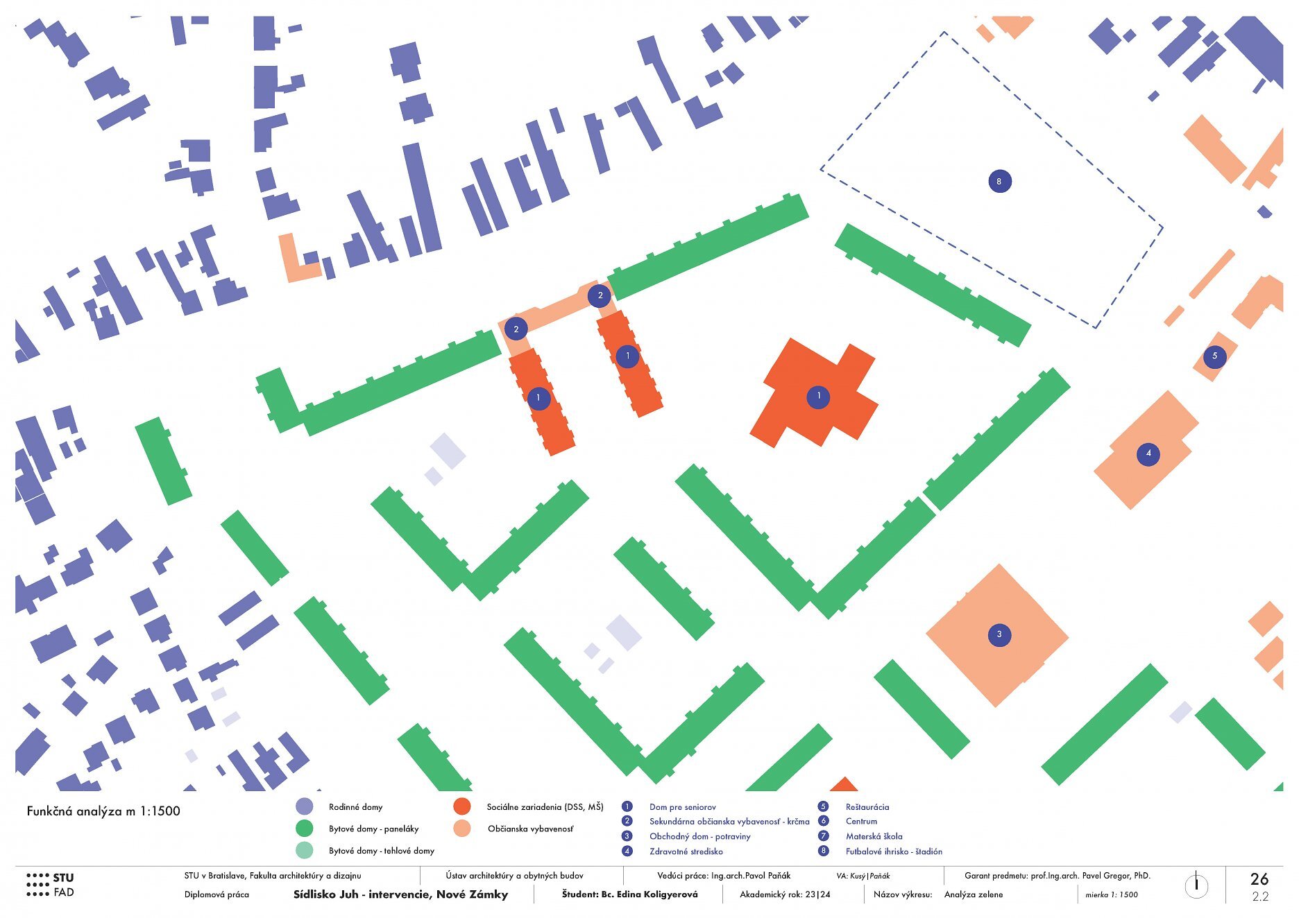 Dnes priblížime prácu "Sídlisko Juh – intervencie, Nové Zámky", ktorá vznikla na pôde Fakulty architektúry STU v Bratislave pod vedením Pavla Paňáka. Edina Koligyerová sa v nej venuje otázke: "Čo tvorí priestor medzi panelákmi a aké sú jeho možnosti využitia?". Interpretuje koexistenciu poľnohospodárstva v meste, zaoberá sa myšlienkou, či je možné sídlisko využívať na pestovanie plodín a chov zvierat. Cieľom práce bolo prinavrátiť sídlisku to, čo mu je vlastné, čo ho charakterizuje a zachovať tým jeho kvalitu. Zároveň prikladá dôležitosť riešenia otázky ako im predĺžiť životnosť.