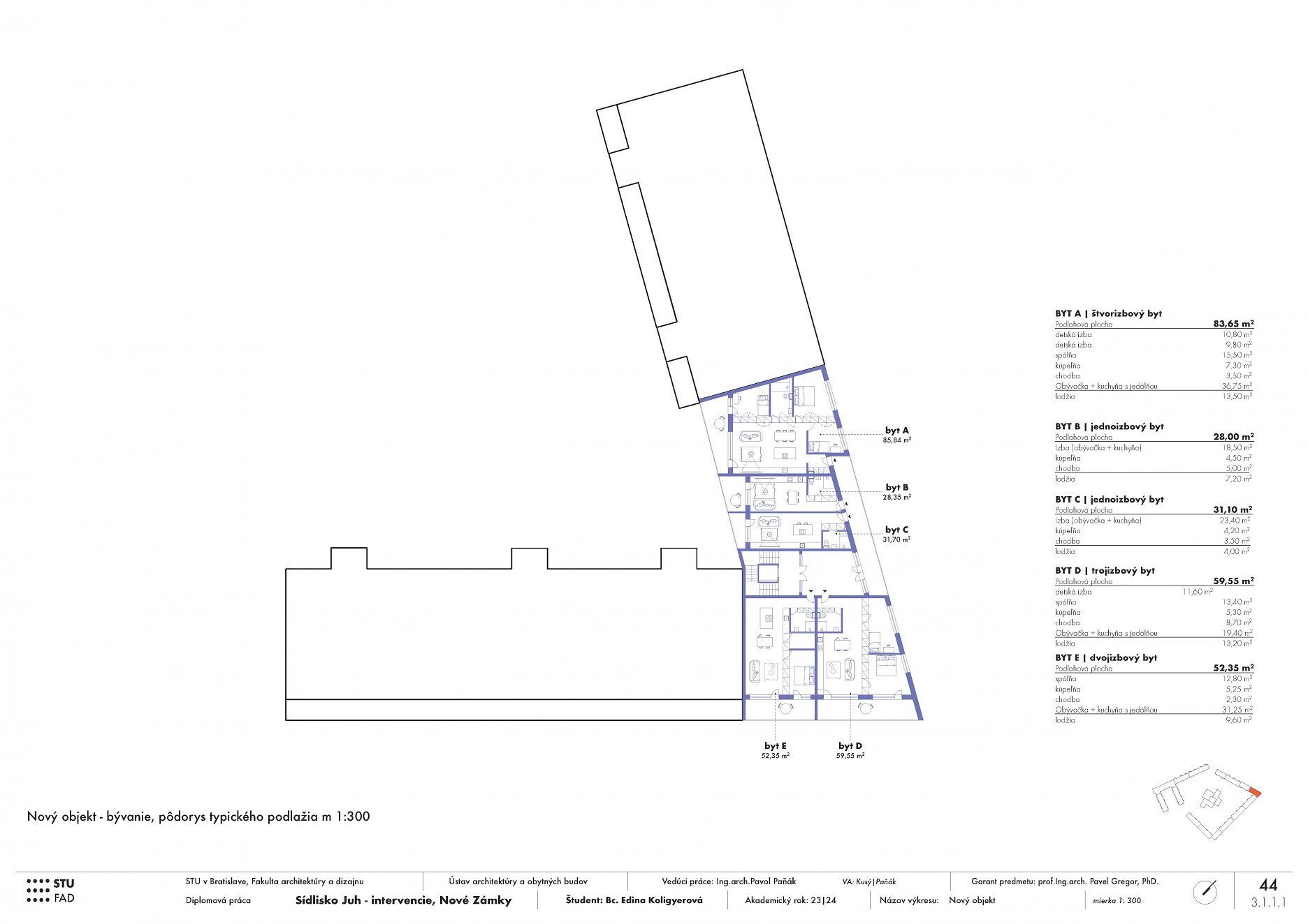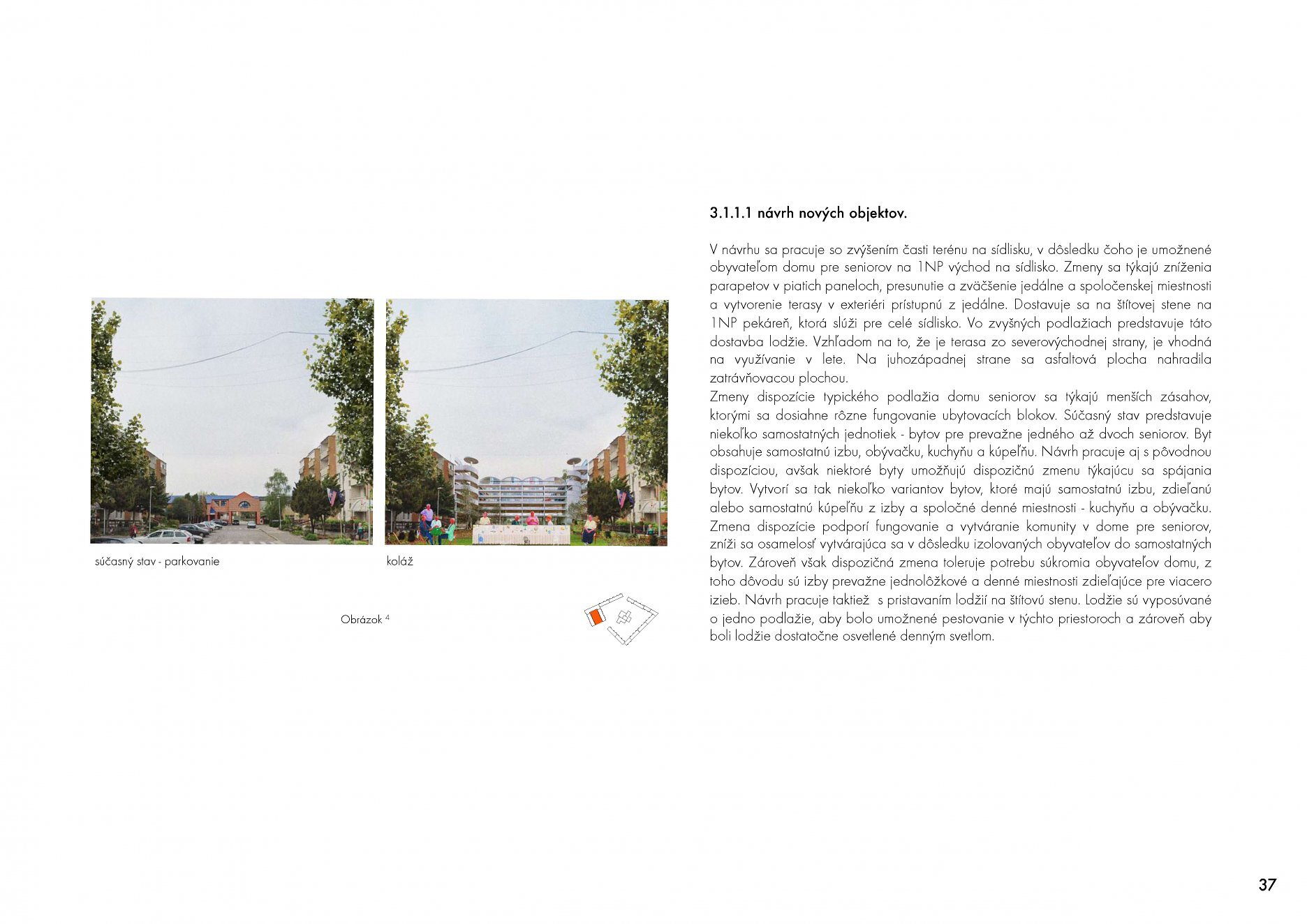 "...Modernistický projekt sociálneho bývania v panelových sídliskách nebol nikdy dopovedaný, nikdy nebol dokončený a to je jeho najväčší problém. Zásadný potenciál bol vždy v medzipriestore medzi domami. Mal to byť úplne iný koncept bývania aký sme poznali dovtedy, mal byť zdravý, zelený, nadýchaný, komunitný, ale naša spoločnosť a ani architektonická komunita nikdy naplno nepreukázali správnosť tohto bývania. V zahraničí sa v posledných rokoch objavilo niekoľko príkladov revitalizácie bývania v panelových domoch, u nás sú takéto príklady stále veľmi zriedkavé, napriek tomu, aké percento obyvateľov krajiny v panelákoch žije. Práve preto je diplomová práca Ediny Koligyerovej tak dôležitá. Hľadá skrytý potenciál panelových sídlisk a ide ďalej za riešenia, ktoré sú očakávané... ...Výsledkom úvah, rešerší a analýz je katalóg možností revitalizácie bývania v panelových sídliskach od masterplánu až po interiér bytovej jednotky, ktorý diplomantka aplikuje na konkrétnu modelovú situáciu. Ako lokalitu pre túto implementáciu si Edina Koligyerová zvolila sídlisko Juh III v Nových Zámkoch," píše v oponentskom posudku Aleš Šedivec.