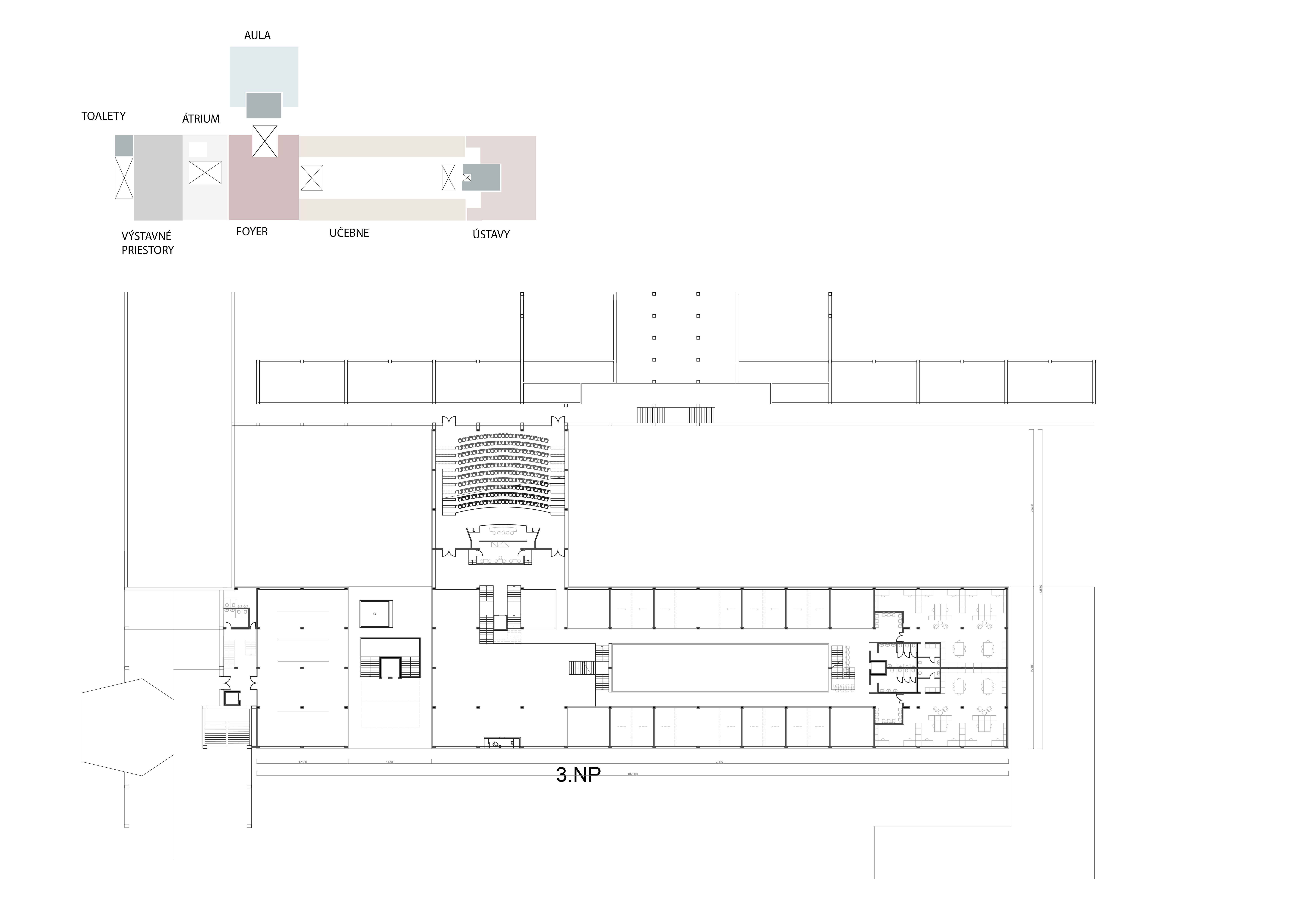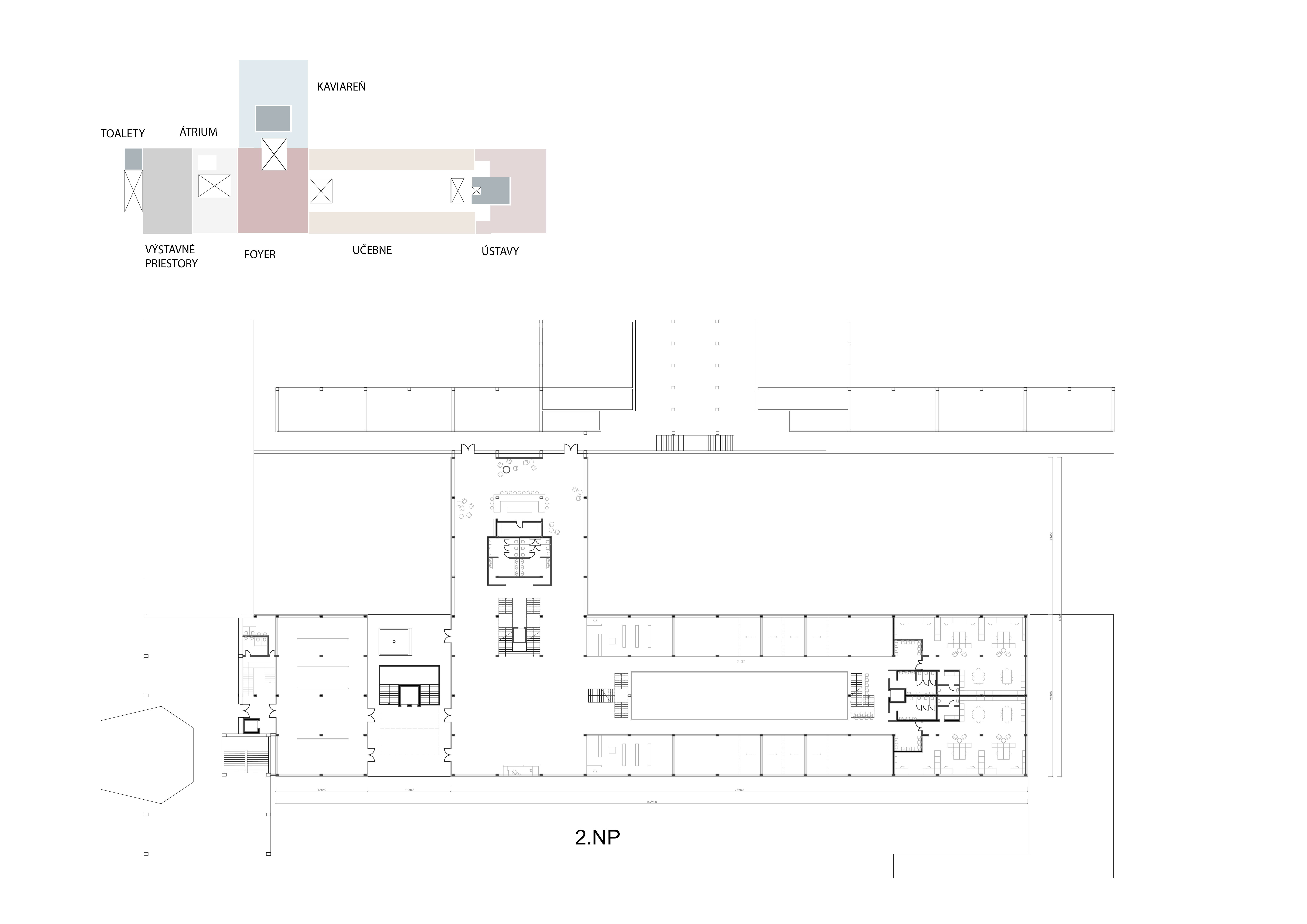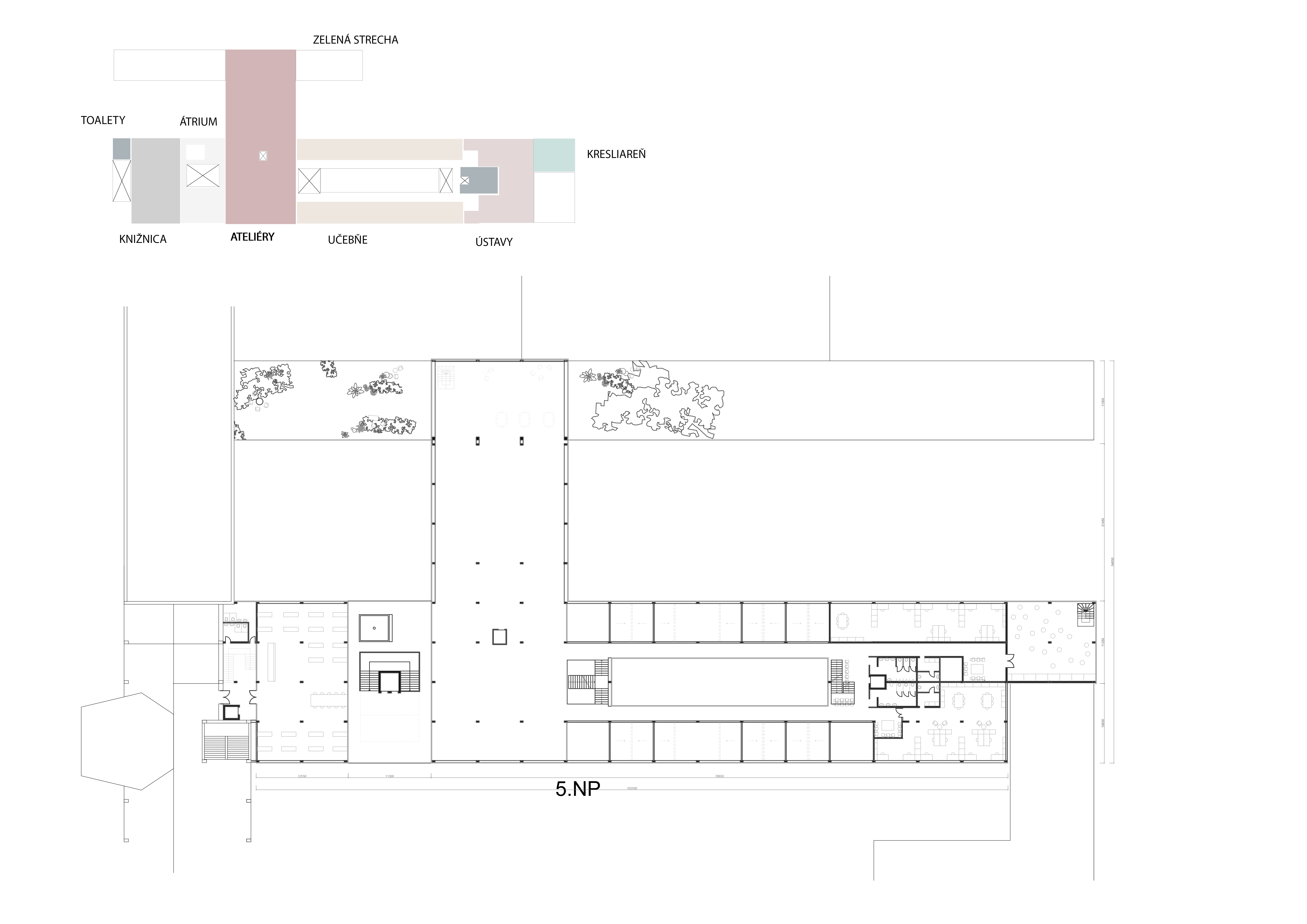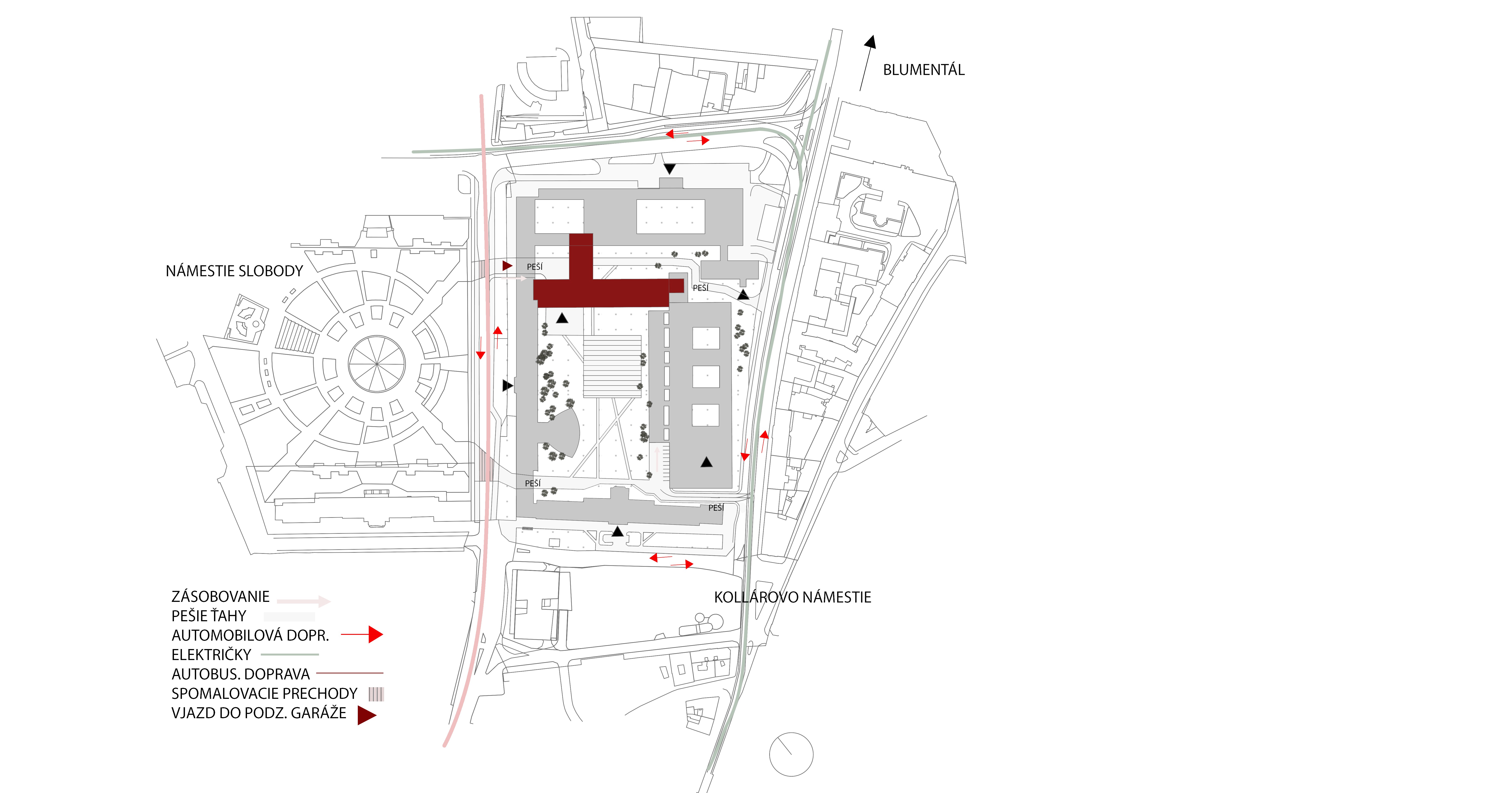 Riešený pozemok je situovaný v centre mesta Bratislava. Základnou myšlienkou urbanistického riešenia bolo vpustiť do vnútrobloku ľudí, otvoriť ho, sprístupniť, vtiahnuť doňho námestie Slobody a taktiež vdýchnuť život nevyužívaným priestorom v centre mesta. Situovaním objektu nad úroveň terénu vznikol pre školy potrebný poloverejný priestor, prístupný pre peších zo strany námestia slobody aj Radlinského ulice.