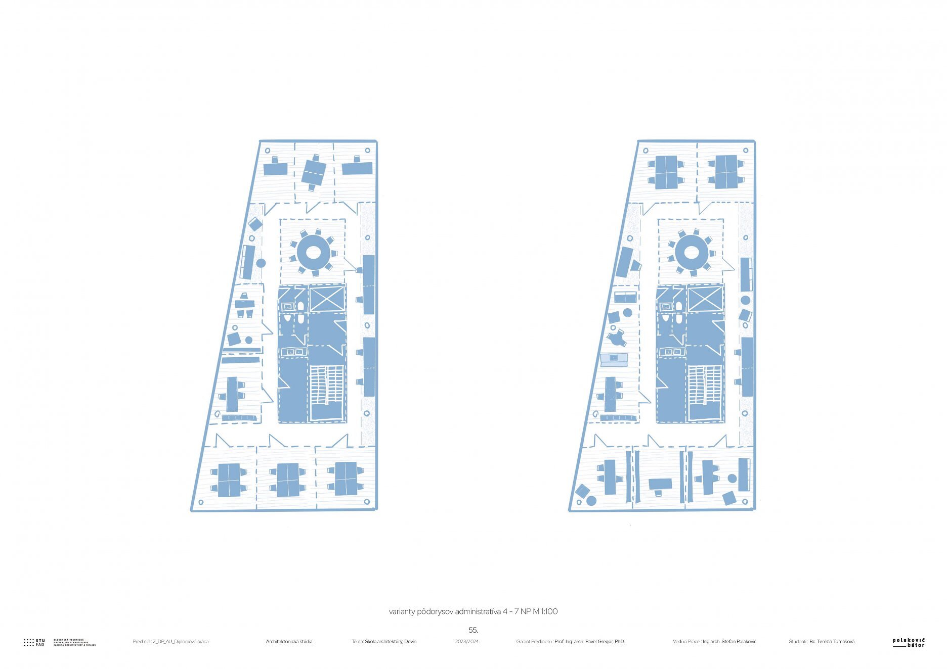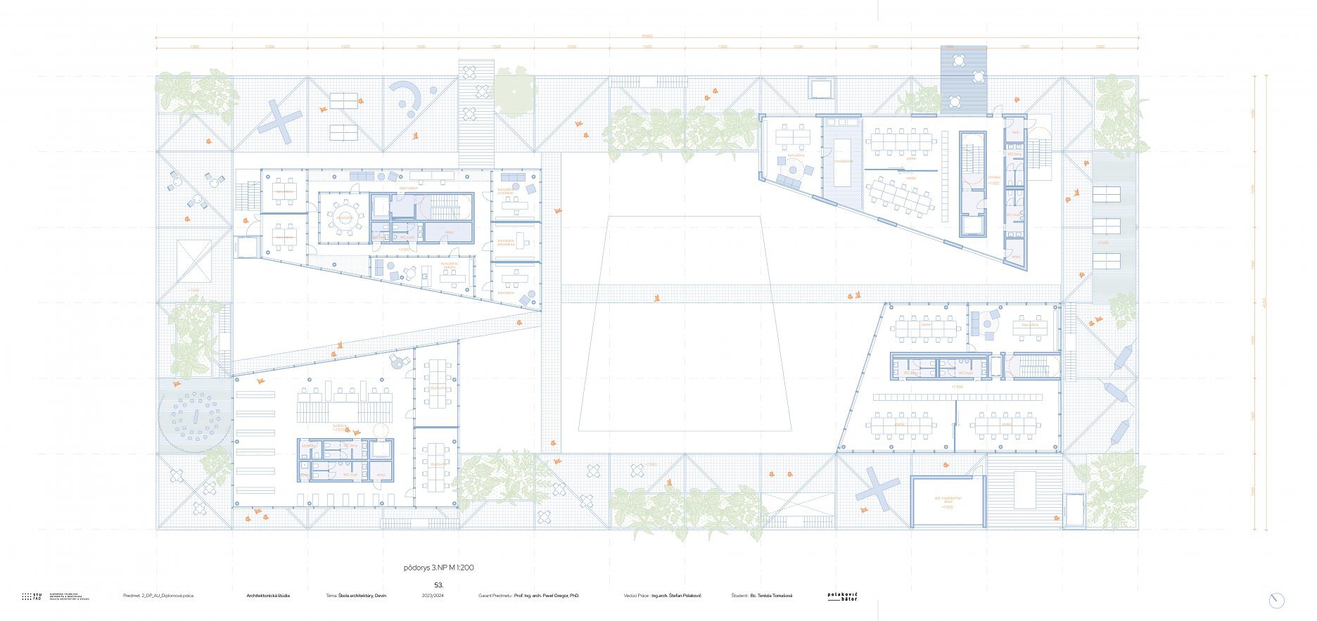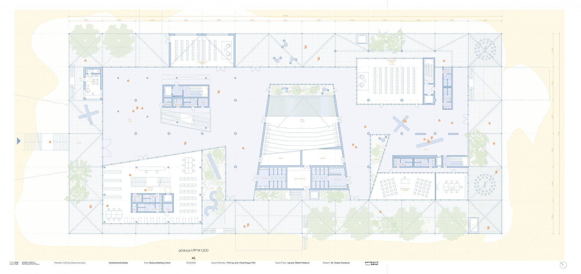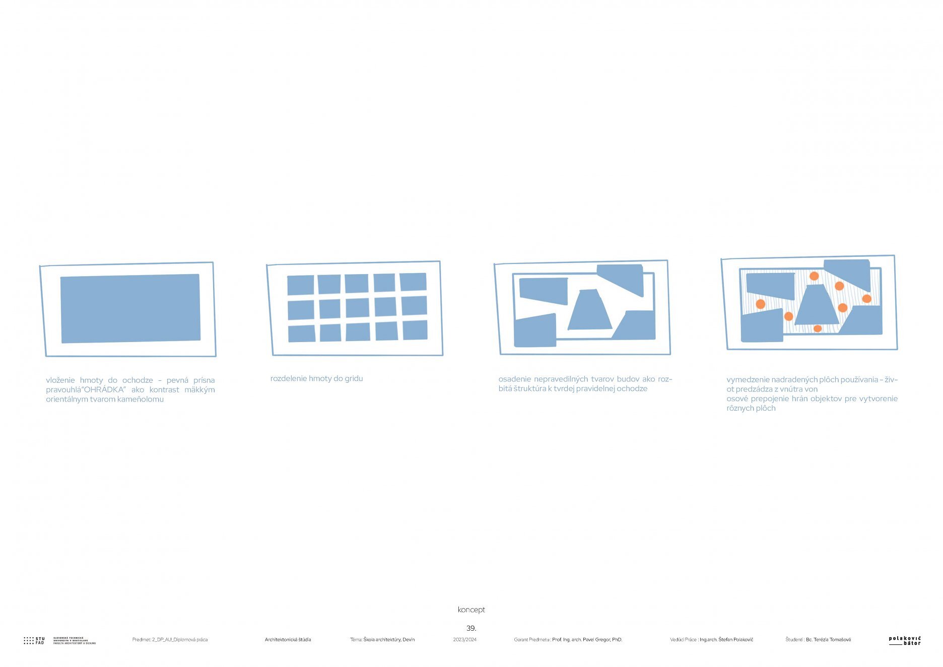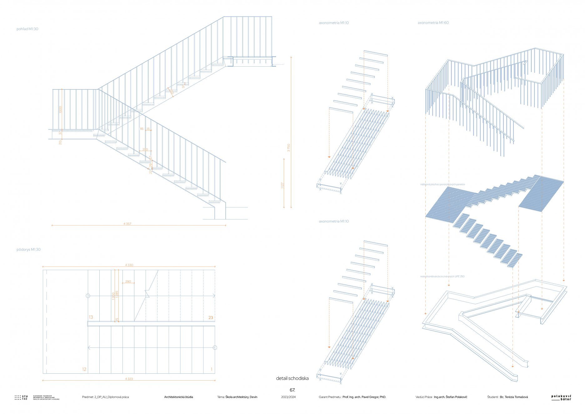 Dnes priblížime prácu "Škola architektúry v Devíne", ktorá vznikla na pôde Fakulty architektúry STU v Bratislave pod vedením Štefana Polakoviča. Diplomantka Terézia Tomašová sa v návrhu zameriava na spojenie vzdelávania, kultúry a prírody. Novonavrhnutá fakulta architektúry a dizajnu je situovaná v prírodnom prostredí Devínskeho kameňolomu. Rozdelenie fakulty na štyri hlavné celky umožňuje efektívne využitie priestoru. Centrálnym bodom je prednášková aula, ktorá slúži ako miesto vzdelávania a stretnutí. Exteriérový priestor plata funguje ako priestor pre aktivity, podporujúce interakciu študentov. Vyššie podlažia sú vyhradené pre študovne, ateliéry a kancelárie, ktoré sú navrhnuté s dôrazom na efektívne využitie svetla a priestoru. "V diplomovej práci som sa snažila pretvoriť želania profesorov a študentov do ideoého návrhu novej školy architektúry. Išlo prevažne o vytvorenie kvalitných, funkčných a reprezentatívnych priestorov pre štúdium v našom odbore," dopĺňa autorka.