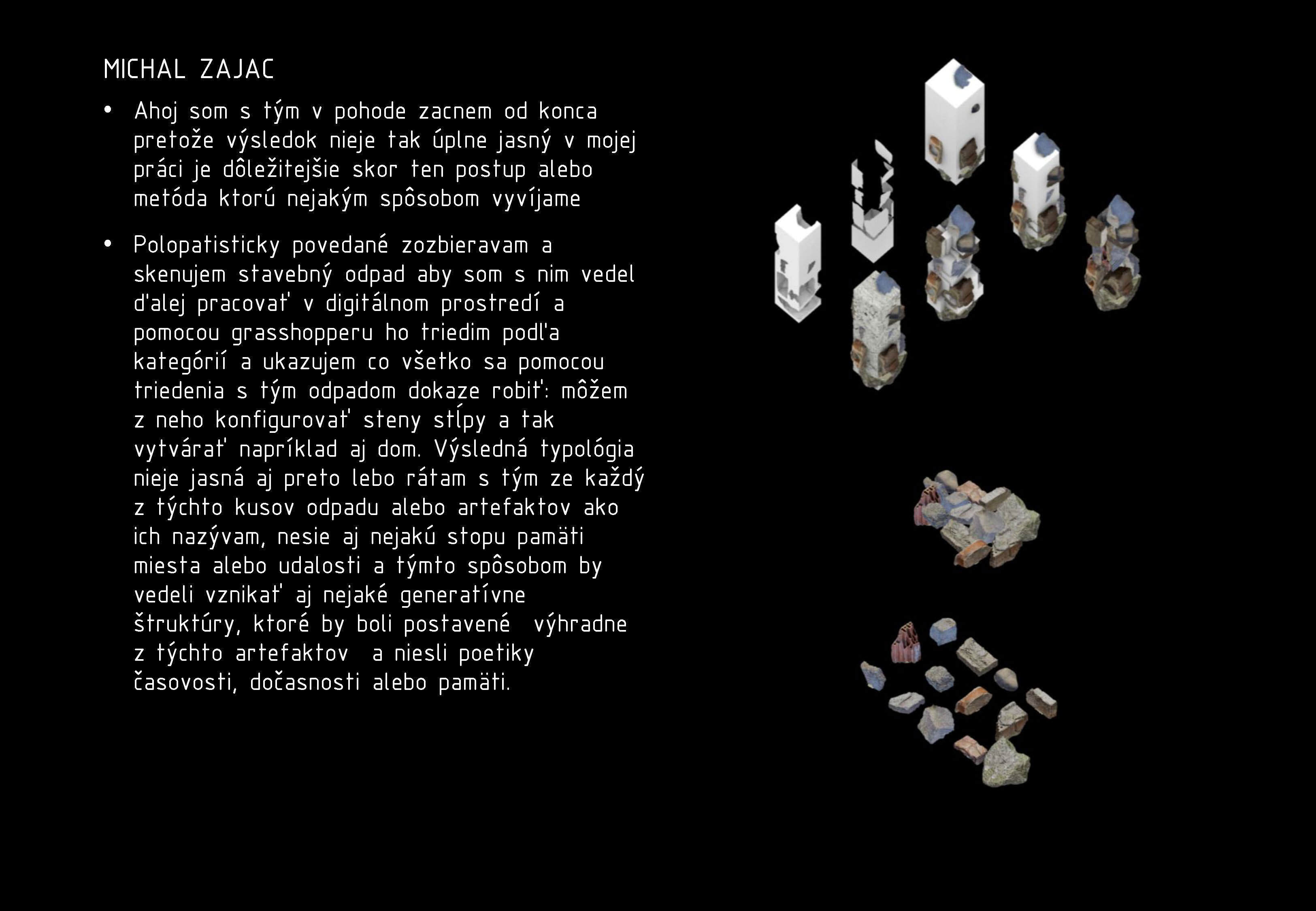 Dnes priblížime prácu „Strojová architektúra“, ktorá vznikla na pôde Vysokej školy výtvarných umení v Bratislave na Katedre architektonickej tvorby pod vedením Víta Haladu a Benjamína Brádňanského. Diplomantka Lucia Peštová skúma symbiotický vzťah architekta a umelej inteligencie v procese navrhovania a overuje ho na sérii fragmentov.