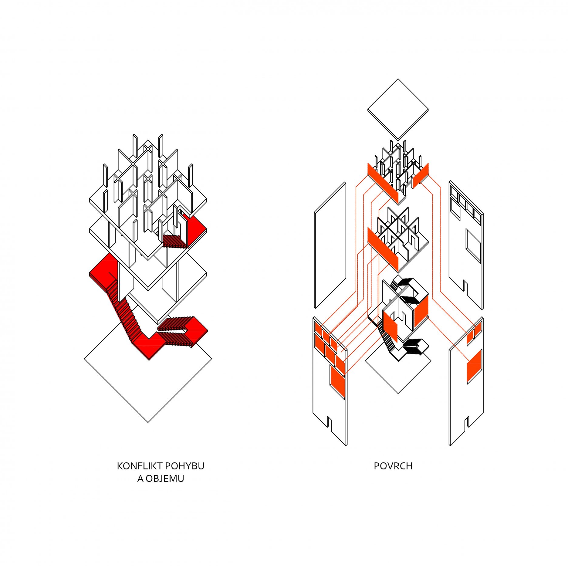 Aj napriek veľkému úsiliu o analytický postup práce (ktorý bol demonštrovaný hlavne v teoretickej časti), sa praktická časť vo viacerých momentoch rozpadá. Niektorým rozhodnutiam autora pri navrhovaní konkrétnych hmôt nerozumiem, no to neznamená, že nemajú racionálny základ.