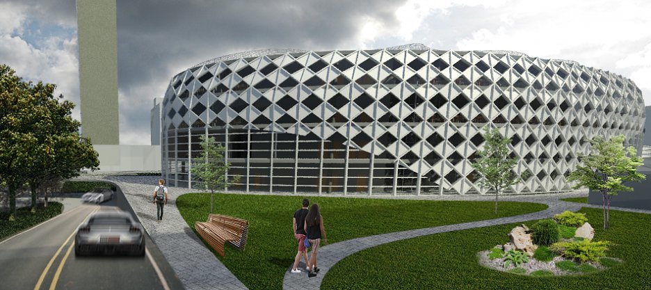 Budovy ako študentské centrá a knižnice sa v súčasnosti budujú ako reprezentačné budovy pre dané inštitúcie. Cieľom tohto typu budov je človeka inšpirovať a vzbudiť v ňom určité nadšenie a pritiahnuť ho. Objekt popiera pravouhlé tvary okolitej zástavby. Z pôdorysného, ale aj výškového hľadiska by sme mohli objekt rozdeliť na dva celky. V severnej časti je objekt štvorpodlažný eliptického tvaru a na južnej strane objektu strecha druhého podlažia plynule klesá na povrch a vytvára zelenú pochôdznu strechu, čím opticky zmenšuje objekt a jeho podlažnosť. Južné nižšie krídlo budovy dynamicky smeruje k hlavnej kompozičnej osi smerujúcej k starej budove FCHPT - Kollárovmu námestiu. Organický tvar budovy zmäkčuje okolitú funkcionalistickú zástavbu a prináša do tohto striktne lineárneho prostredia priebeh kriviek, čo vytvára dynamiku prostrenia. Hra kriviek objektu nadväzuje na krivočiarý tvar Auly Aurela Stodolu. Tento organický tvar osviežuje tento priestor a dáva mu úplne odlišný, no zároveň súčasný charakter, ktorý inšpiruje a priťahuje človeka.