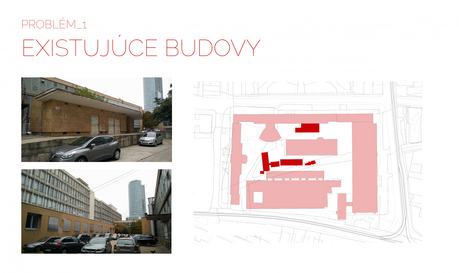Z hlbšieho prieskumu najväčšej budovy vnútorného areálu univerzity vyplýva jej potenciál na zachovanie a vnesenie novej funkčnej náplne. Základným argumentom sa v tomto prípade stáva jej nosný systém, ktorý bol pôvodne dimenzovaný na veľké zaťaženia ťažkých strojov laboratórií. Tvorený je železobetónovým skeletom s prierezovými dimenziami stĺpov 300x500mm, ktoré sú v pozdĺžnom smere budovy osovo vzdialené 3000mm. Tento nosný systém sa javí byť zdravý a vzhľadom na svoje dimenzie vhodný na ďalšiu prácu s budovou.