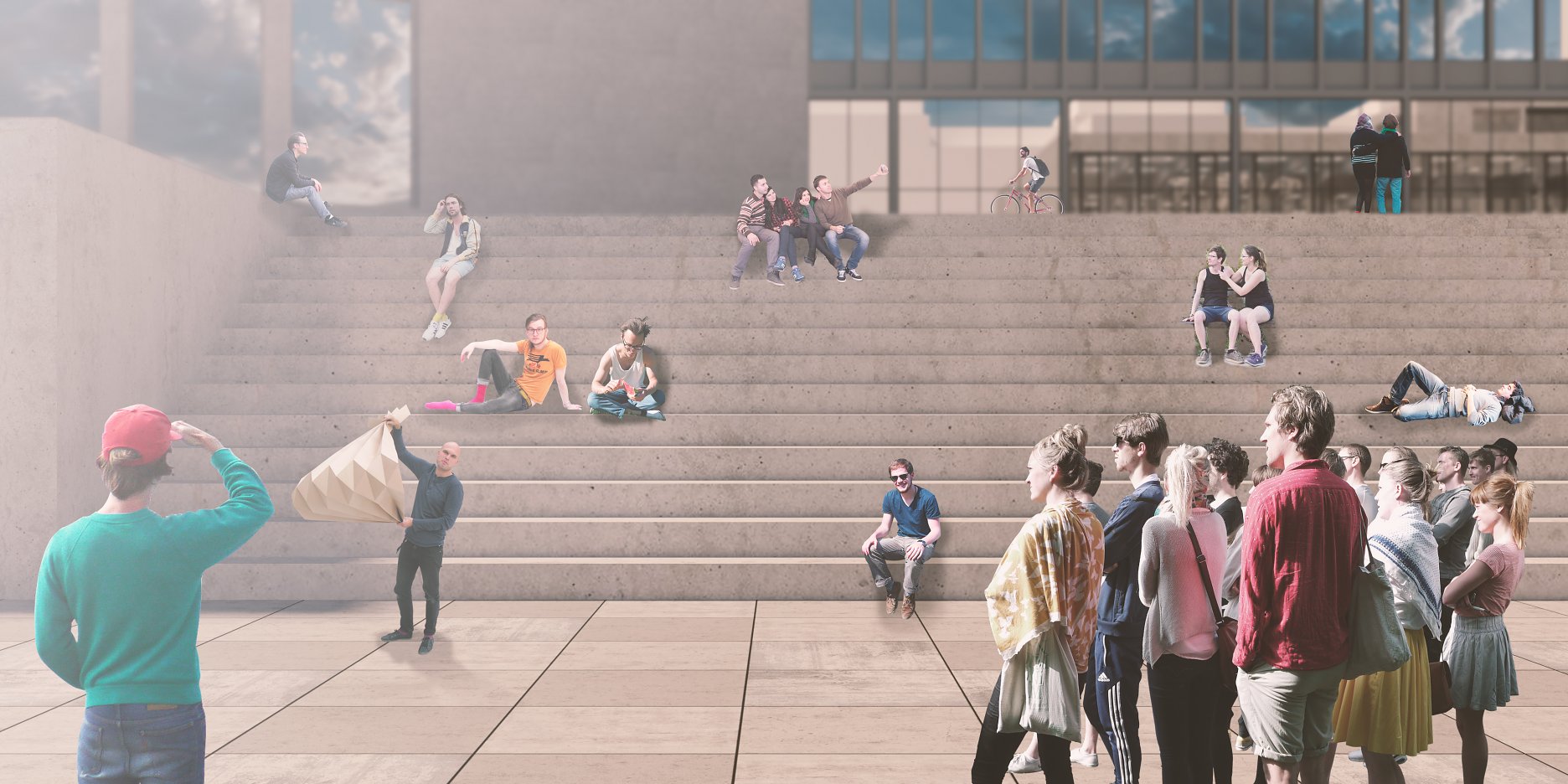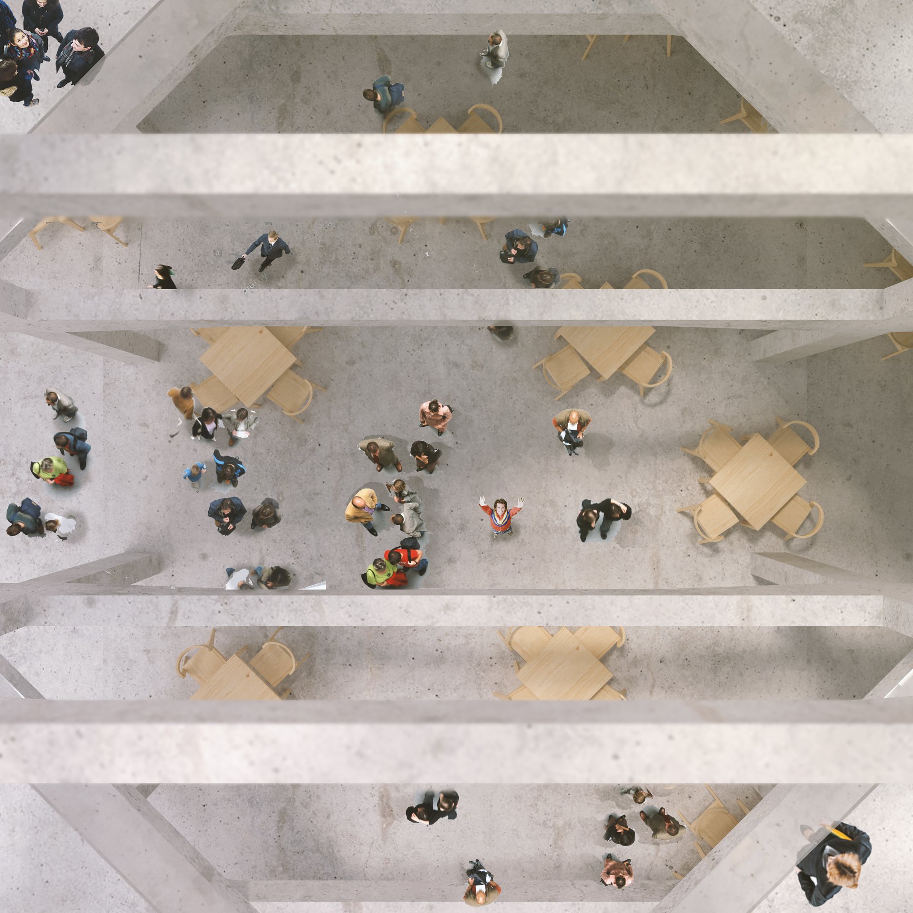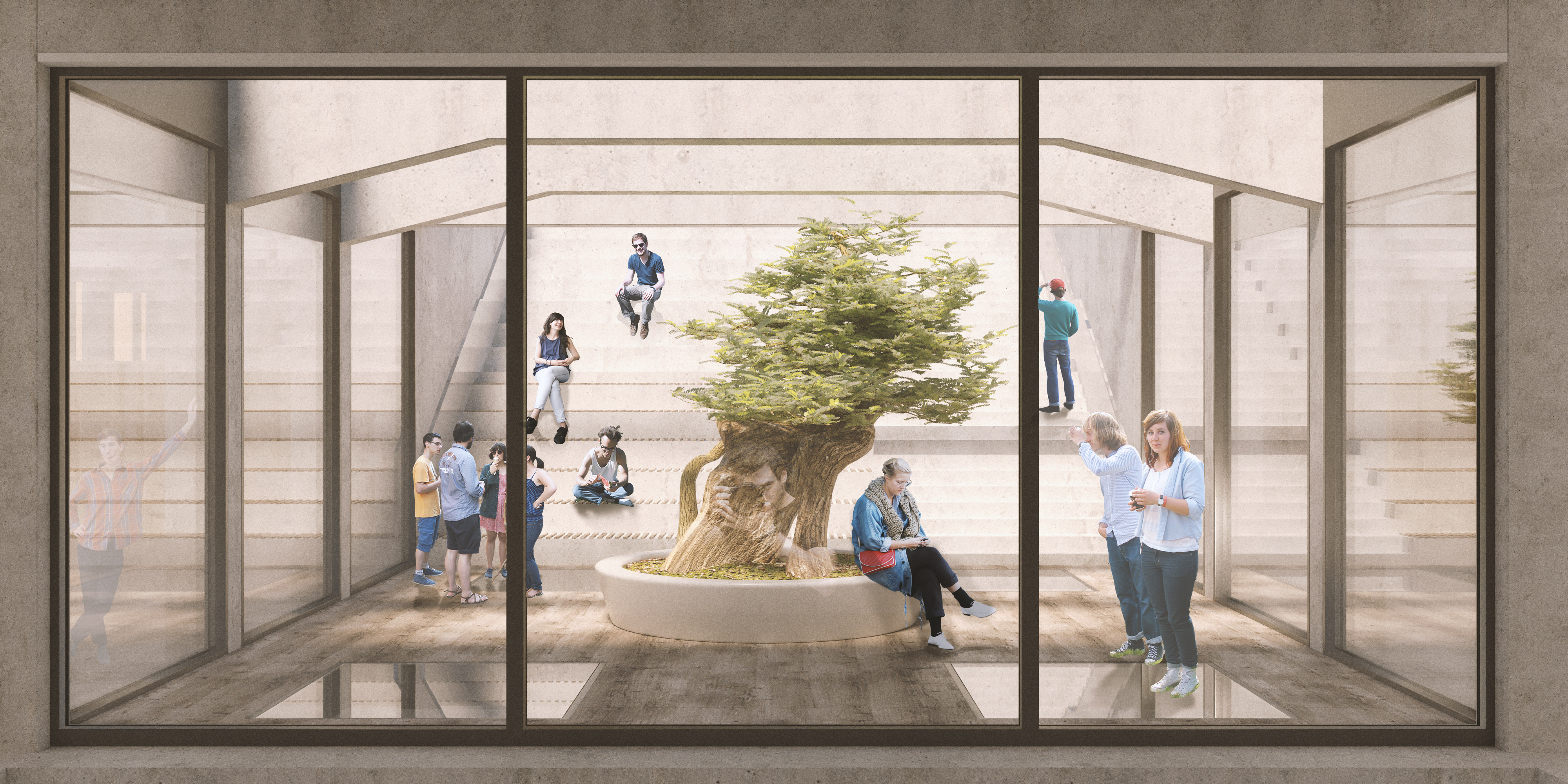 Po rozhodnutí zachovať budovu laboratórií Strojníckej fakulty nasledoval proces skúmania možnosti umiestnenia všetkých predpísaných funkčných celkov do tejto stavby. Typologická príprava ukázala, že skladba priestoru je priamo daná tvarom a umiestnením budovy. Už v prvých konceptoch návrhu prestavby budovy bolo zrejmé, že vstupný prezentačný priestor bude koncipovaný ako čo najviac otvorená plocha, ktorá by mala zvýrazňovať vstupnú os do Strojníckej fakulty a zároveň vzdať hold aule vysunutej do priestoru. Práve z tohto dôvodu sa v koncepte návrhu počíta s posunutím hrany budovy o tri nosné trakty, 9 metrov, od hrany auly. Tým sa zmiernilo pnutie medzi týmito dvoma budovami a okolitý priestor sa zároveň prevzdušnil. Pre optické otvorenie vstupného priestoru do teraz už novej budovy univerzitného centra bol zvolený architektonický prvok prierazu naprieč všetkými stropmi jednotlivých poschodí budovy. Toto rozhodnutie má úlohu vpustiť do vnútra budovy difúzne svetlo. Zároveň sa štvorcový otvor pootočil o 45°, čím dáva najavo dôležitosť dvoch osí, výhľadu na Aulu Maxima a v druhom smere na novovzniknuté námestie.