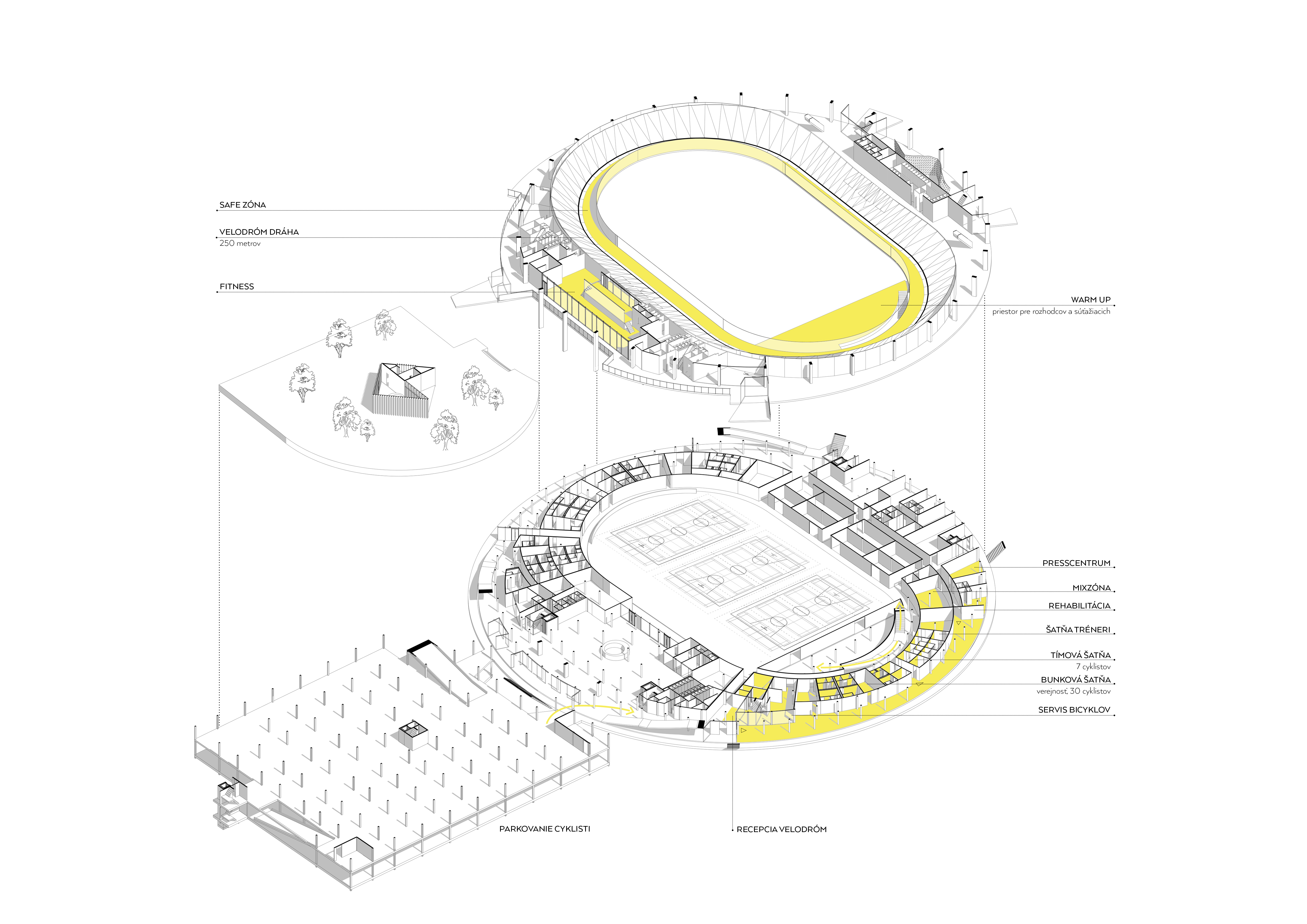 Cieľom práce je návrh viacúčelovej športovej haly s velodrómom, ktorá obohatí aktívny a kultúrno-spoločenský život v meste Žilina. Architektonický koncept a urbanistické riešenie celého športového areálu je založené najmä na citlivom prelínaní medzi mestským a prírodným prostredím. Architekt(ka) nenavrhuje len športovú halu, ale navrhuje prostredie a takisto aj atmosféru, ktorú budú zažívať profesionálni športovci, ale aj bežní obyvatelia mesta.