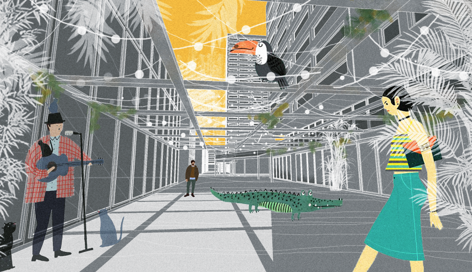 Zdrojom inšpirácie je newyorský projekt The High Line. Lineárny most ponad pešiu zónu, ktorý dovoľuje vyjsť ľudom na druhé podlažie a zotrvať na novovybudovaných terasách. Potenciál riešenej oblasti je vysoký, pretože sa nachádza v centre mesta v susedstve vysokých obytných budov, ale aj nákupných centier a kancelárií. Preto má opodstatnenie vybudovať zaujímavý priestor pre ľudí práve v tejto oblasti.
