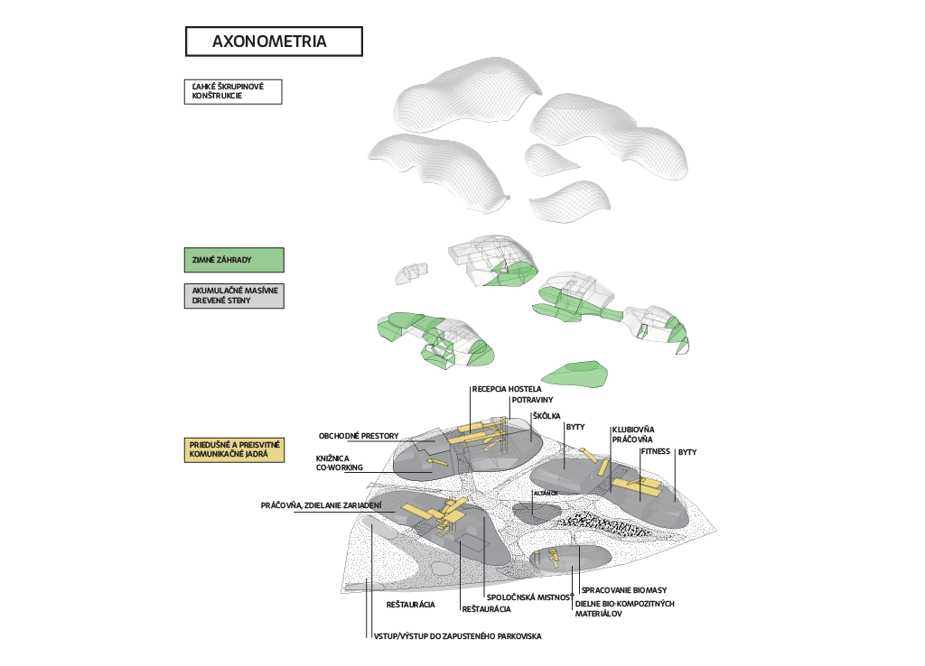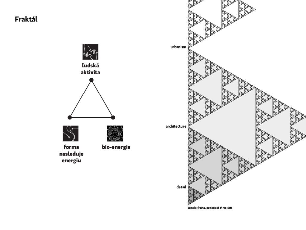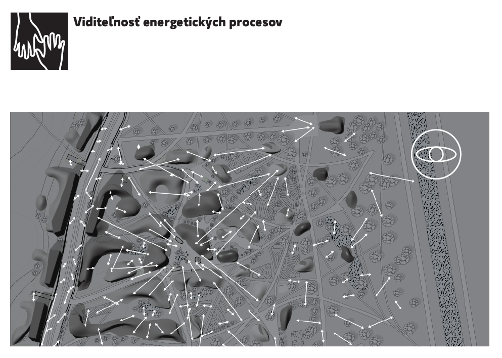 Faktory ktoré, som si ja ako autor vybral a pokúšam sa zohľadniť pri návrhu rozdeľujem do troch hlavných tém: forma nasleduje energiu, ľudská aktivita, bioaktivita medzi ktorými vždy hľadám fraktálny proporčný vzťah od mikro po makro merítko presne tak, ako sa to odohráva v prírode.