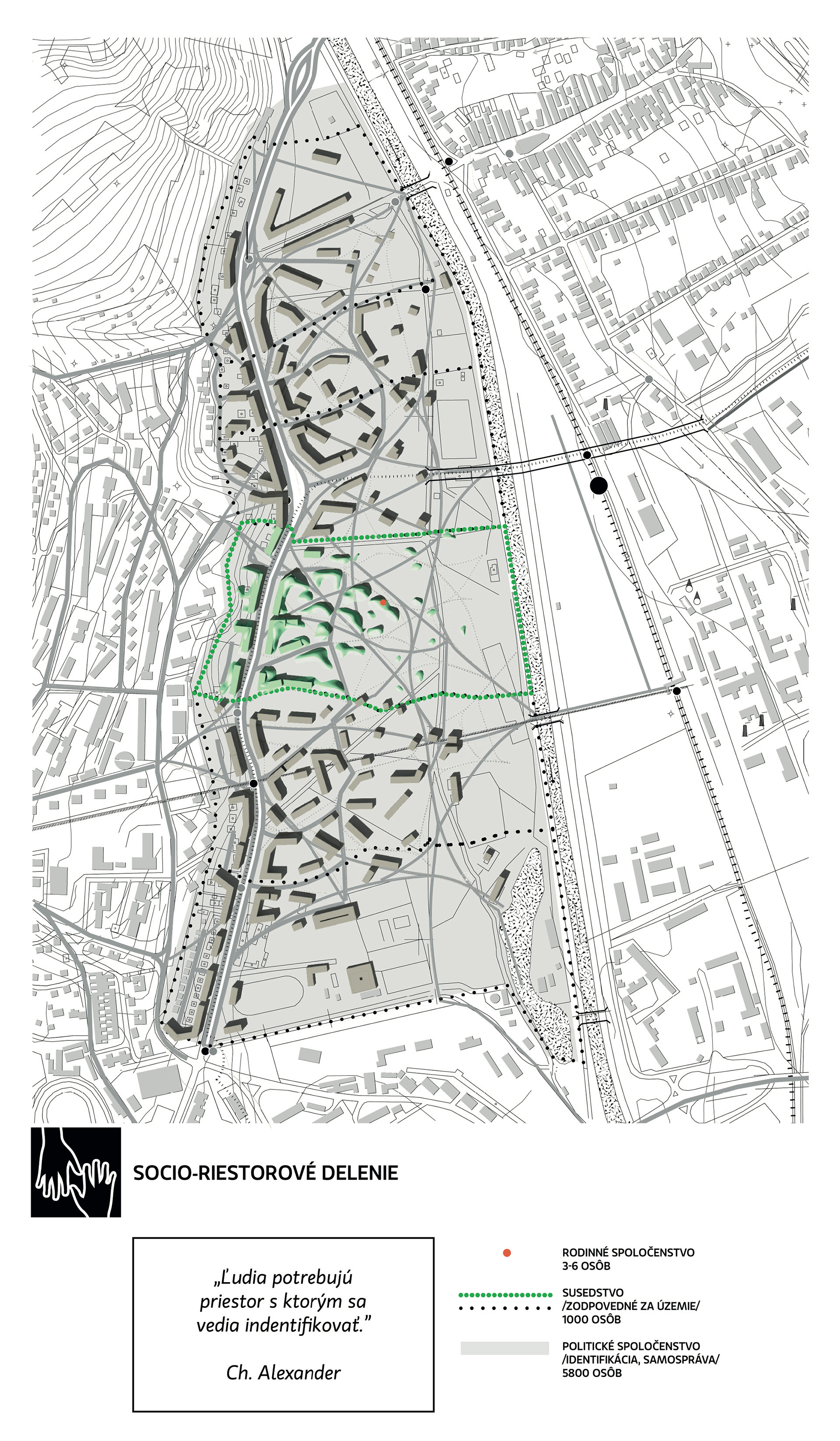Urbanizmus je najväčšie merítko, ktoré svojou formou presahuje vizuálne a fyzické schopnosti jedného človeka. Kde vlastne toto merítko začína, kde končí? Za základný kameň mesta považuje architekt a matematik Christopher Alexander za tzv. Komunita 7000 (Community of 7000). Táto komunita s decentralizovanou samosprávou v rámci mestského celku, je výsledkom mnohých štúdií na tému "veľkosť politickej komunity", ktorá sa ustálila v rozmedzí 5000 – 10 000 obyvaťeľov. Čím decentralizovanejšiu štruktúru vytvoríme tým zodpovednejšia–udržateľnejšia jednotka vznikne.