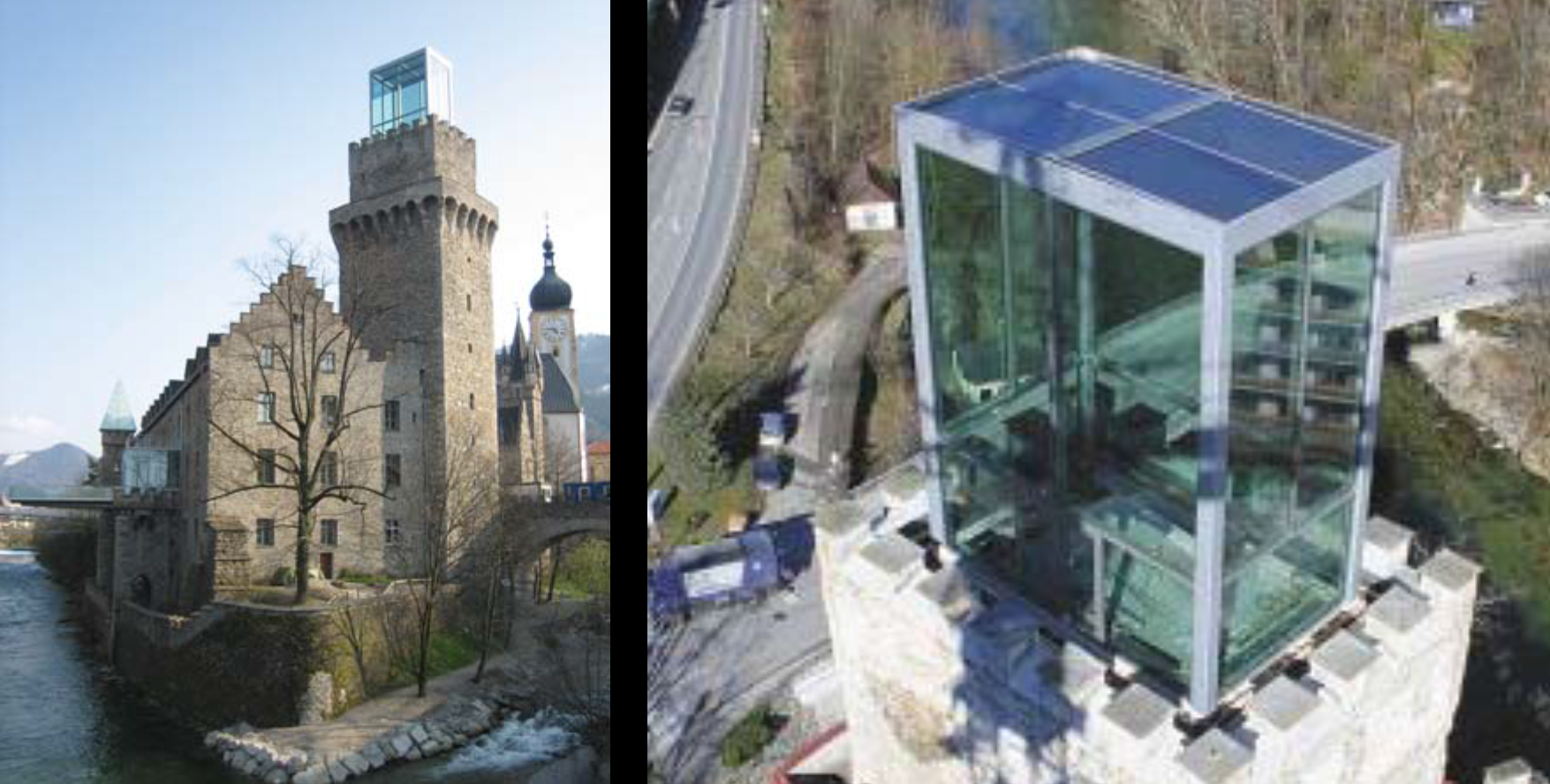 • 2. skupina - architektonizované formy, pridané technické prvky sú zámerne vizuálne exponované, jedná sa o implementácie nových technológií do historického prostredia, príklady riešia komponovanie fotovoltických článkov na objekty s kultúrno - historickou hodnotou, problematiku zateplenia a jeho nového vizuálneho stvárnenia a priamu konfrontáciu iných technických zariadení a ich častí v historickom prostredí, reprezentanti skupiny: Chateau Rothschild, Nemecko, architektonizovaný novotvar „solárnej veže“ – snaha o skĺbenie novej technológie fotovoltických článkov v rámci konceptu novotvaru na hradnej veži (obr. 25,26), hrad Dunster, Anglicko – snaha o nenarušenie vizuálnej exponovanosti objektu s cieľom využívať fotovoltické články (obr. 27), Manor Farm Barns, Anglicko, Jonathan Hendry Architects, administratívna budova s priznanými potrubiami vzduchotechniky v kontraste s historickými konštrukciami v interiéri (obr. 28), vila pisára v Driebergene, Holandsko, architektonizované spracovanie zateplenia objektu Z toho vyplýva, že forma akou sú nové udržateľné aspekty zapracované a komponované v rámci obnovy objektu s historickou hodnotou závisia od citlivosti, zručnosti a kreativity tvorcov a nemusia ostať len v rovine rutinného stavebno-technického riešenia.