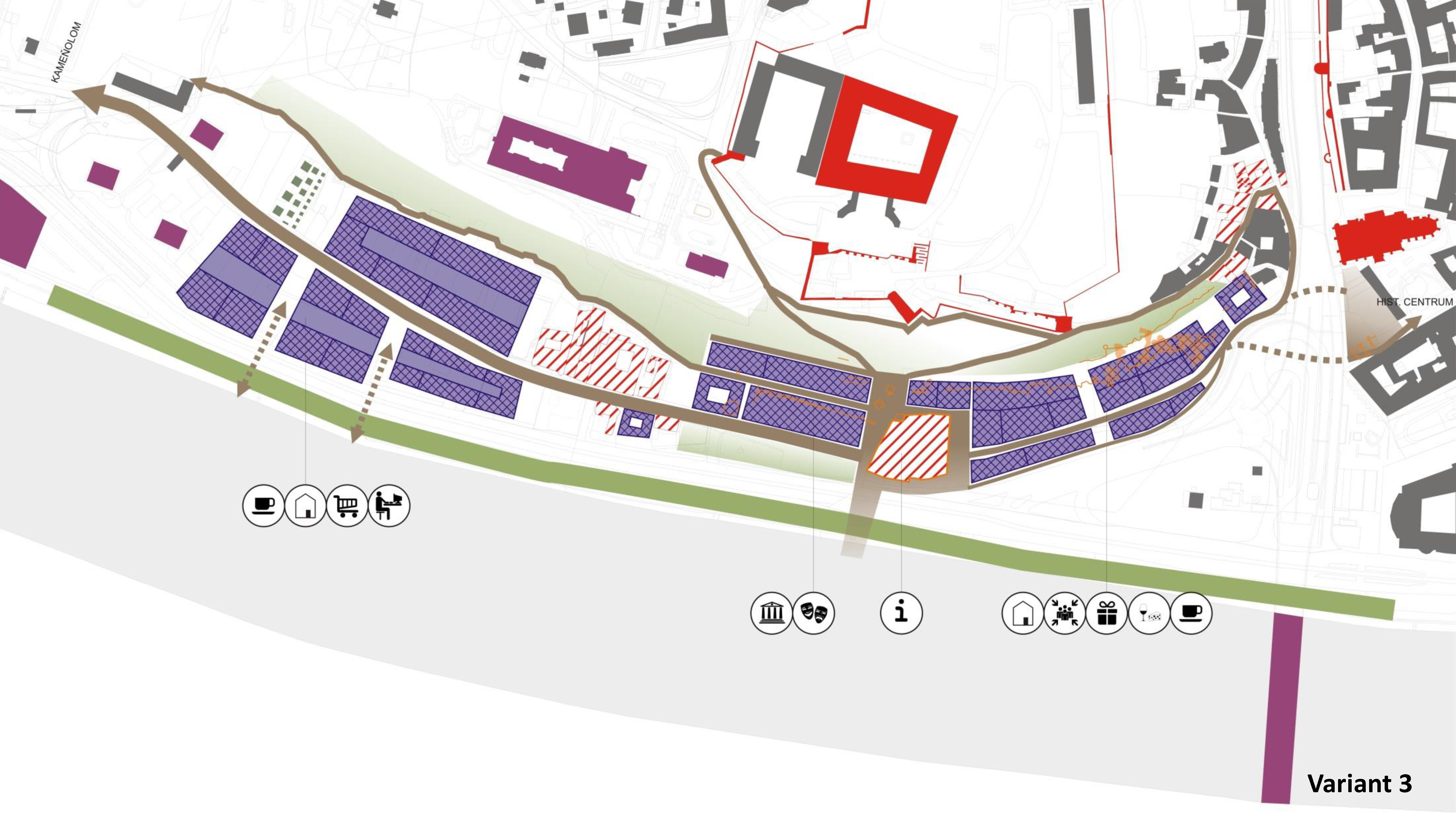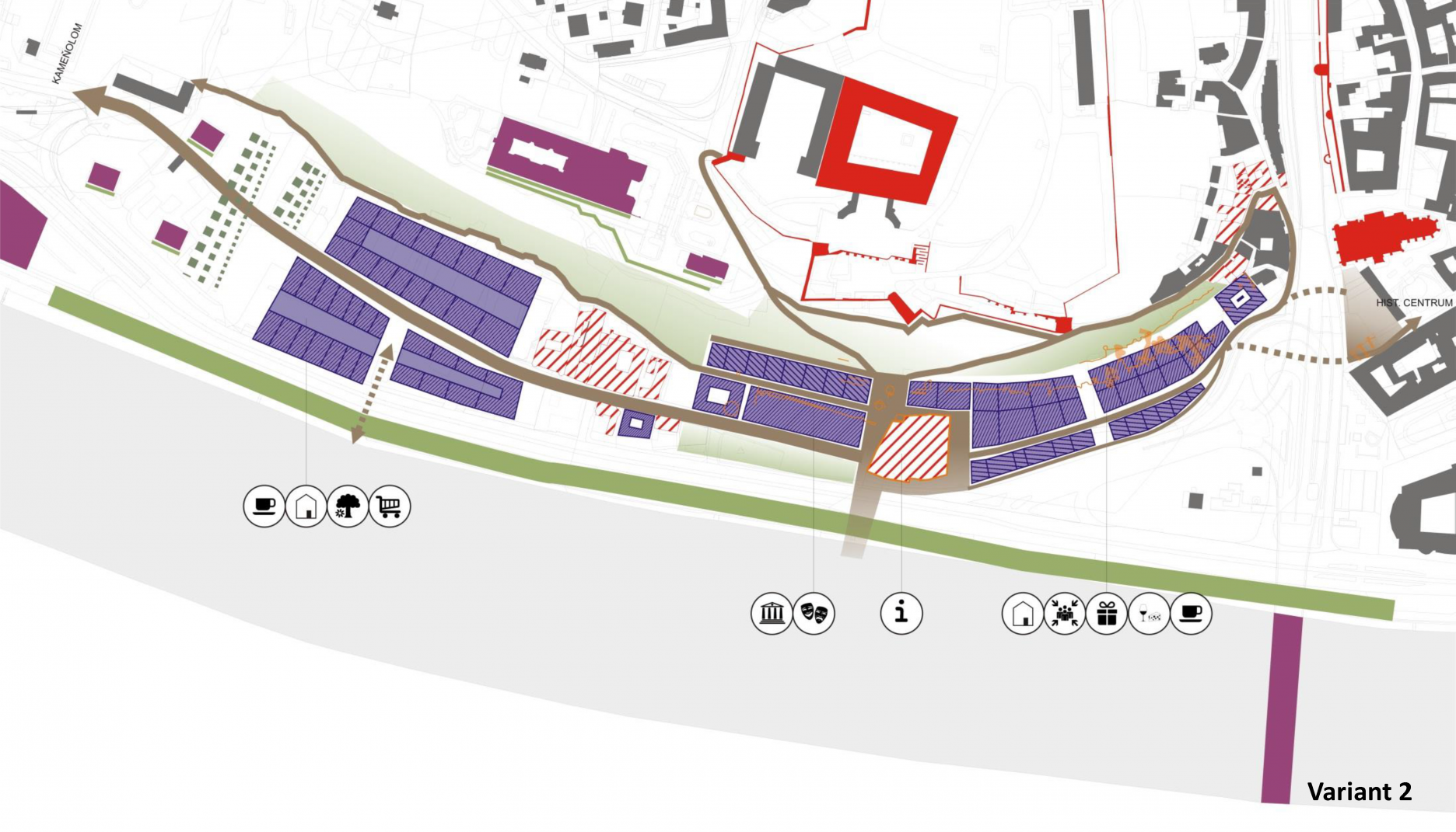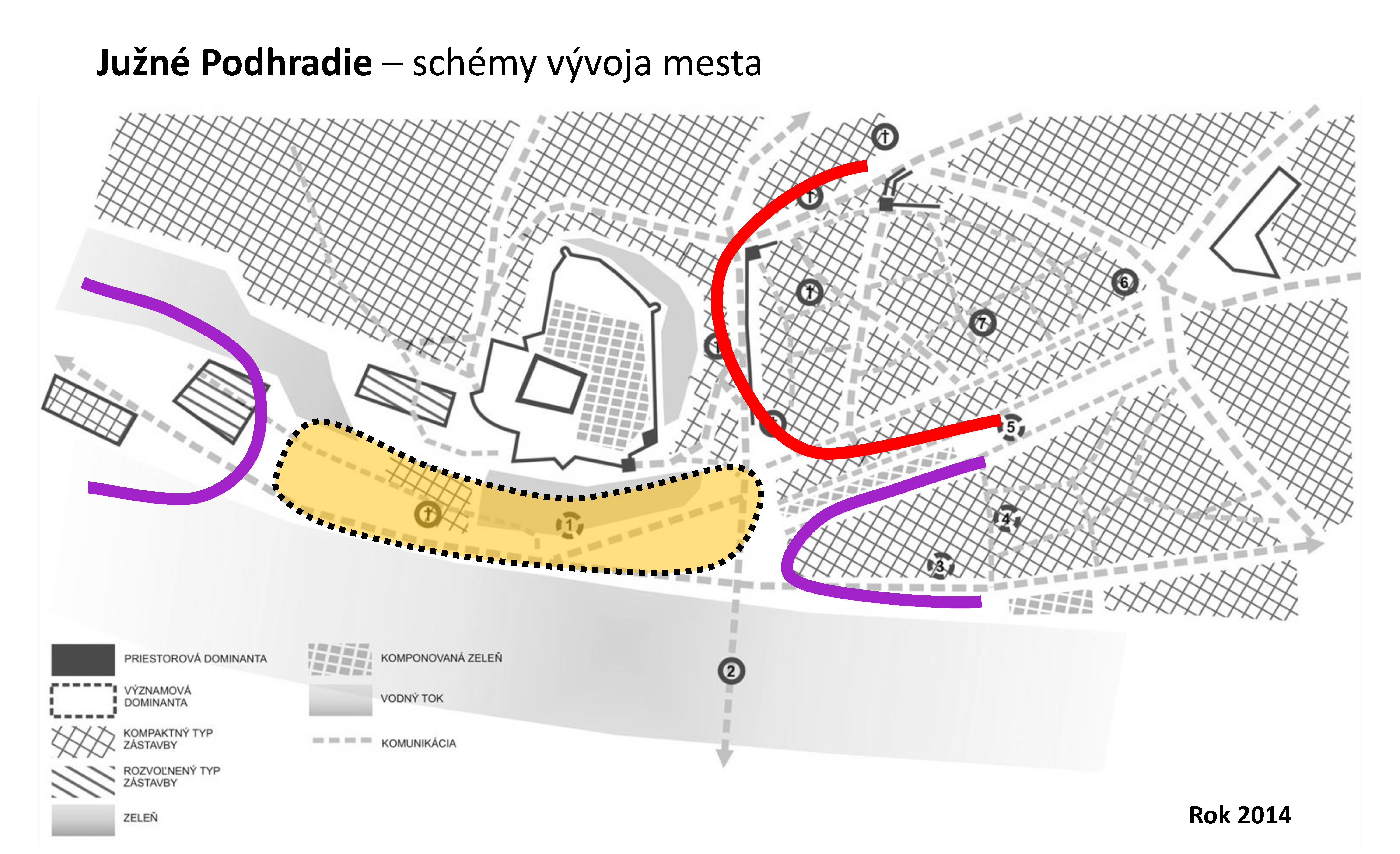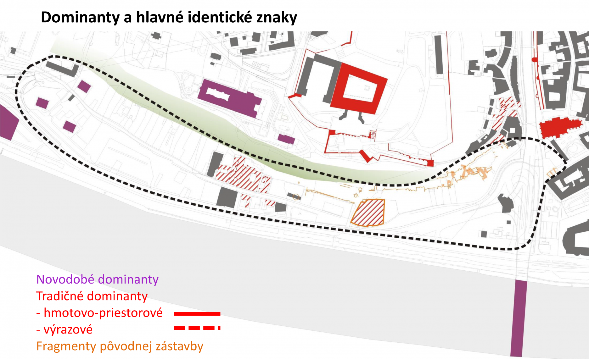 Prepojenie s historickým jadrom (strešná krajina) + nábrežím (štruktúra zástavby)