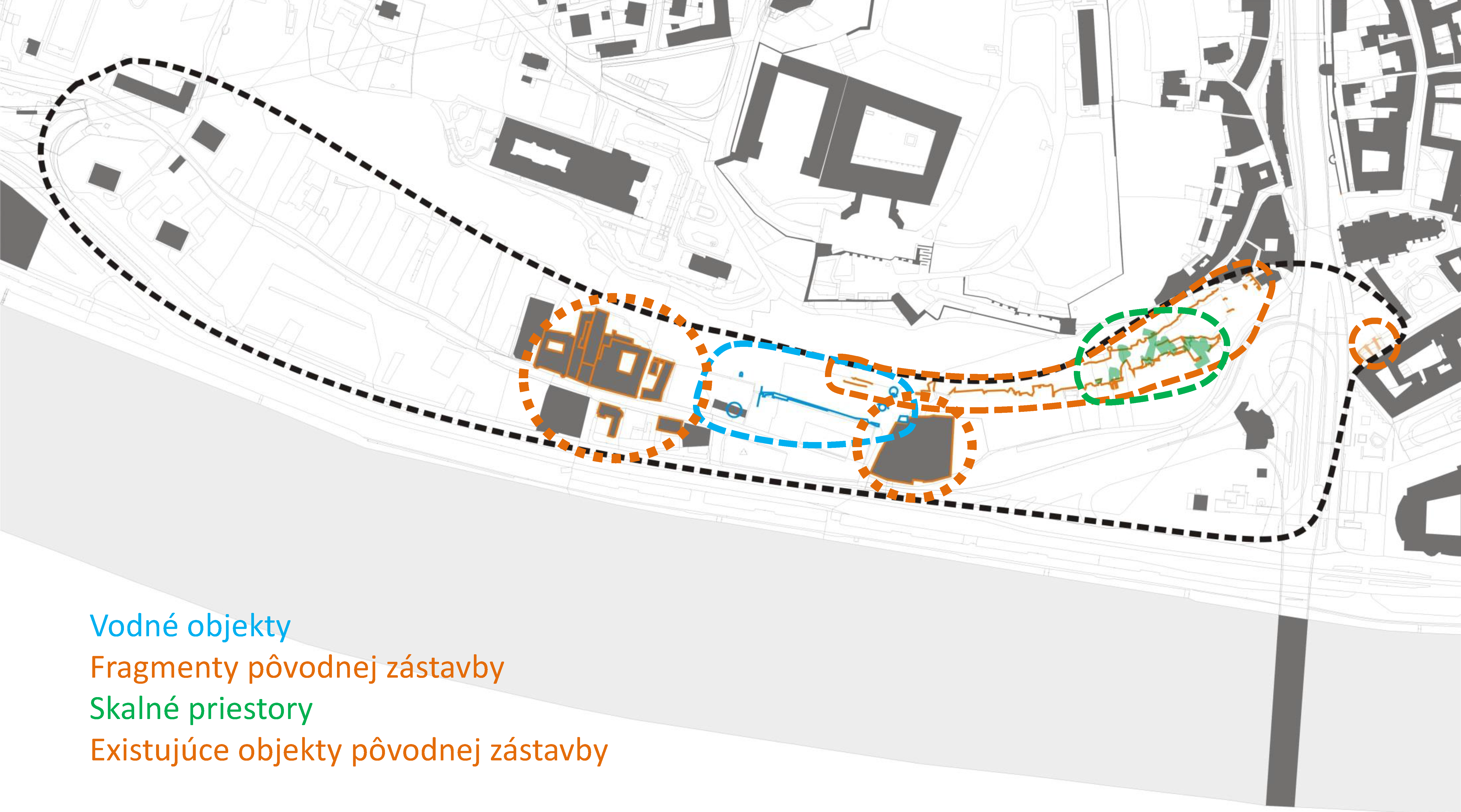 - fragmenty pôvodnej zástavby + ich prezentácia