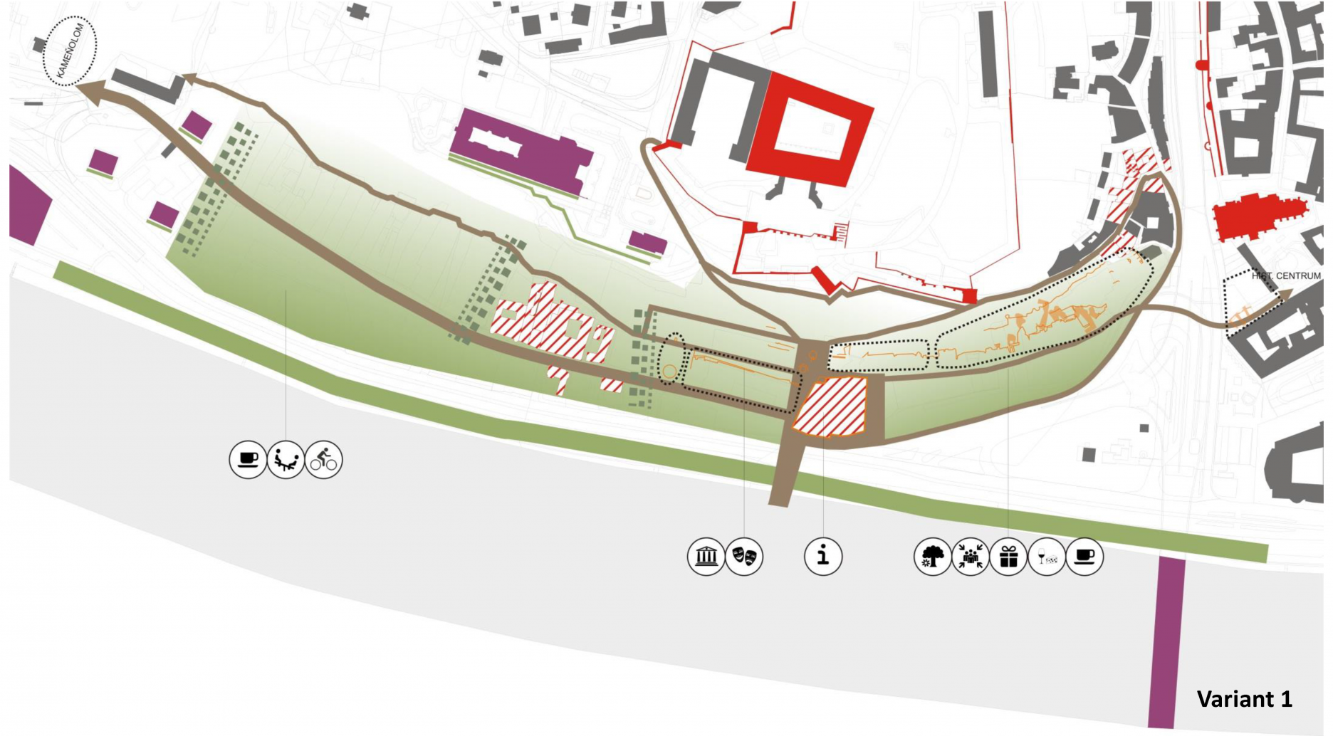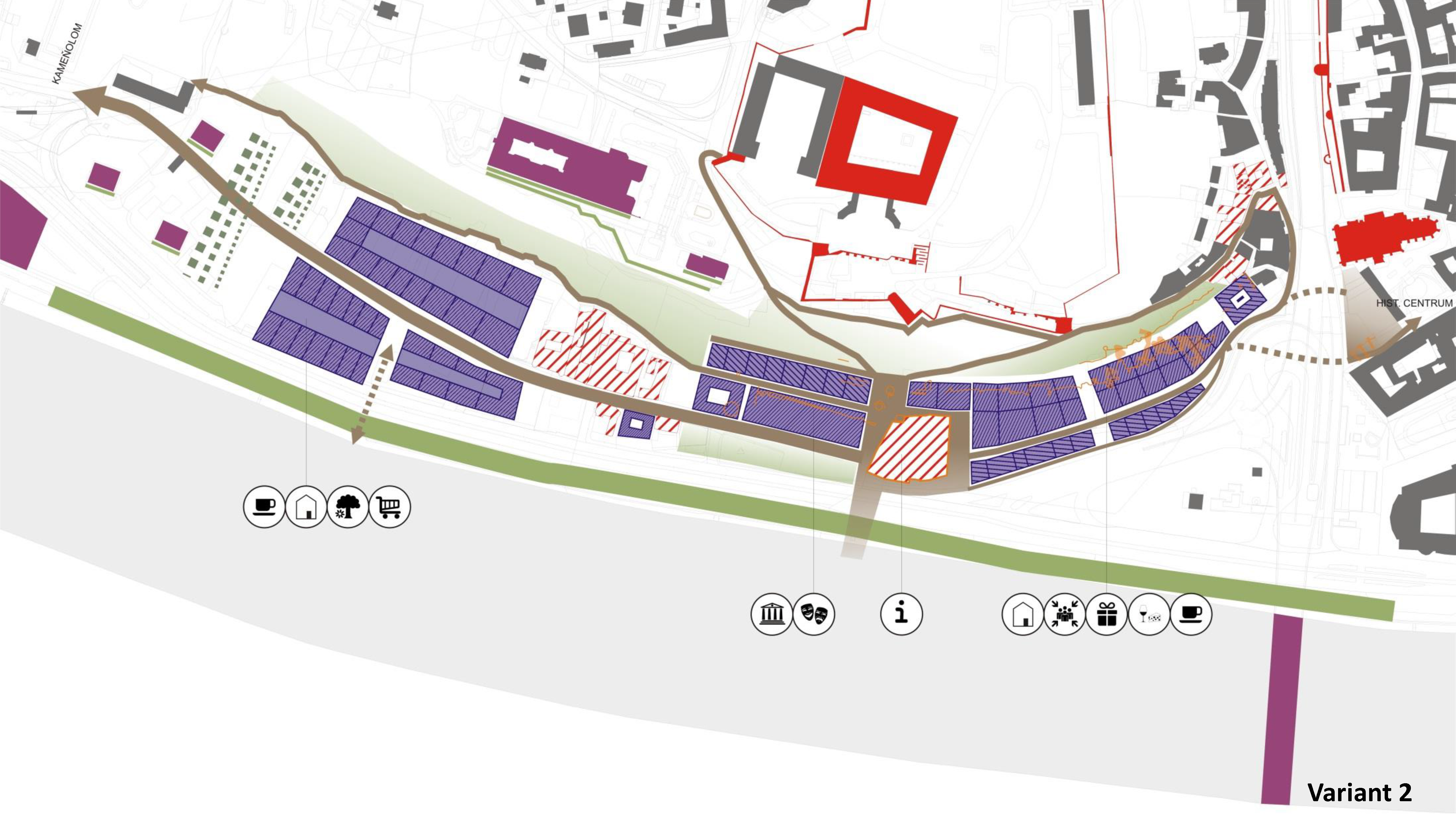 Prepojenie s modernistickým nábrežím (štruktúra zástavby + strešná krajina)