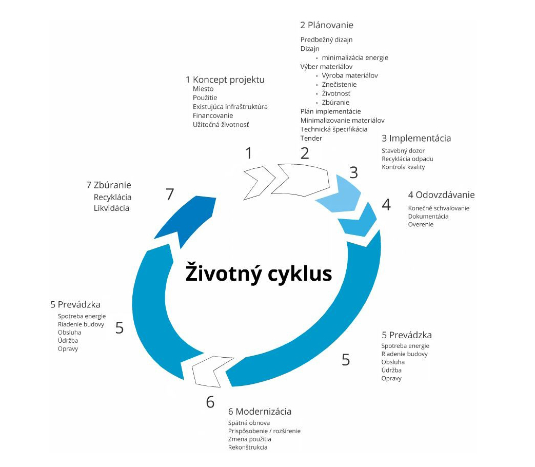 V priebehu životného cyklu spotrebujú stavby značné množstvo zdrojov a prispievajú k premene oblastí. Výsledkom toho môžu byť významné ekonomické následky a vplyvy na životné prostredie a ľudské zdravie. Preto sa snažíme minimalizovať vplyvy stavieb na prostredie počas celého ich životného cyklu.