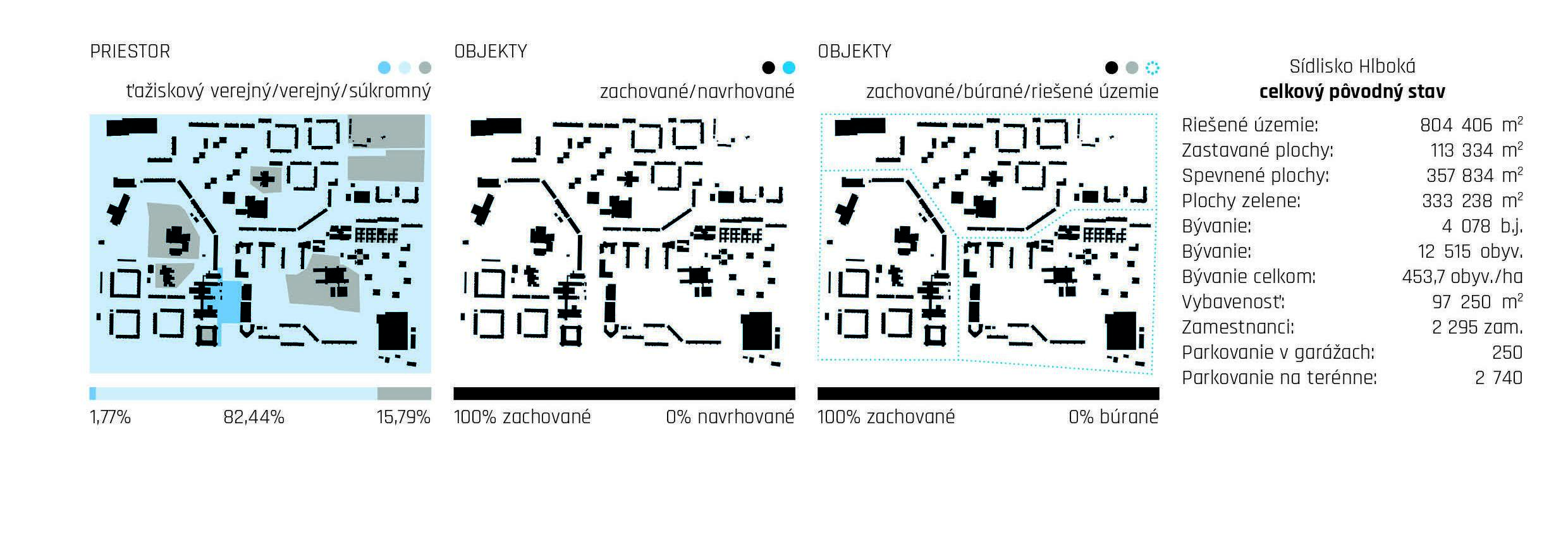 Zamerali sme sa preto na koncepciu obnovy sídliska ako celku. Následne boli rozpracované jeho jednotlivé segmenty a konkrétne lokality až po detailné riešenia jednotlivých mikropriestorov sídliska. Na sídlisku Trnava - Hlboká sme demonštrovali modelové schémy možných prístupov k obnove sídlisk, ako z hľadiska teoretického, tak z hľadiska edukačného vedenia študentov v ich tvorbe. Z výskumného hľadiska, uplatnením metódy „research by design“ bolo pre nás kľúčové poukázať na diferencovanú možnosť miery dostavby a prestavby sídliska. Vychádzali sme zo súčasného stavu zástavby sídliska, no disponovali sme pôvodnými konceptami, s ktorými pracovali autori riešenia sídliska. Naším cieľom bolo zachovať existujúcu priestorovú štruktúru a overiť rôznu mieru a možnosti jej priestorového a funkčného dotvárania. V tomto procese zohrával podstatnú úlohu verejný priestor a najmä jeho ťažiskové polohy, ako generátor nových aktivít či novej zástavby. V spolupráci s pedagógmi spracovali študenti i grafické prílohy i v podobe schém. Schémy spracovali vždy v rovine súčasného stavu a nimi navrhovaného riešenia, pričom analyzovali a hodnotili nasledovné aspekty: