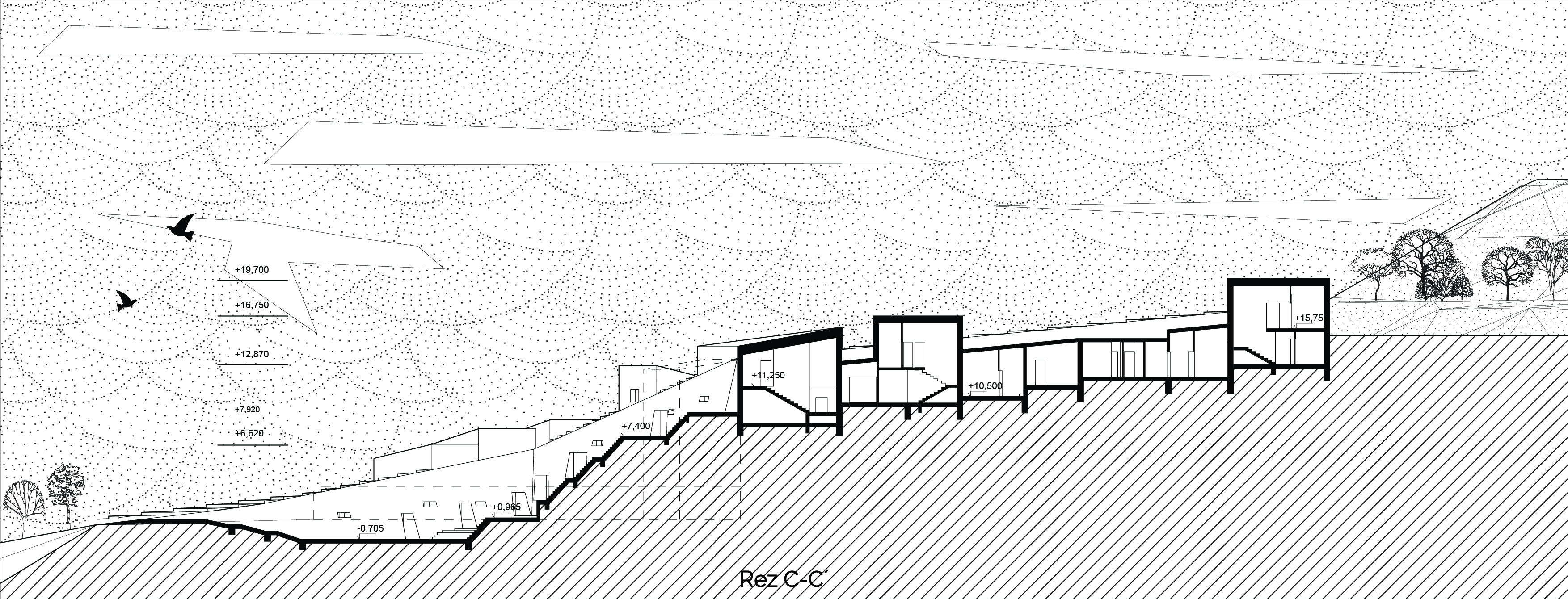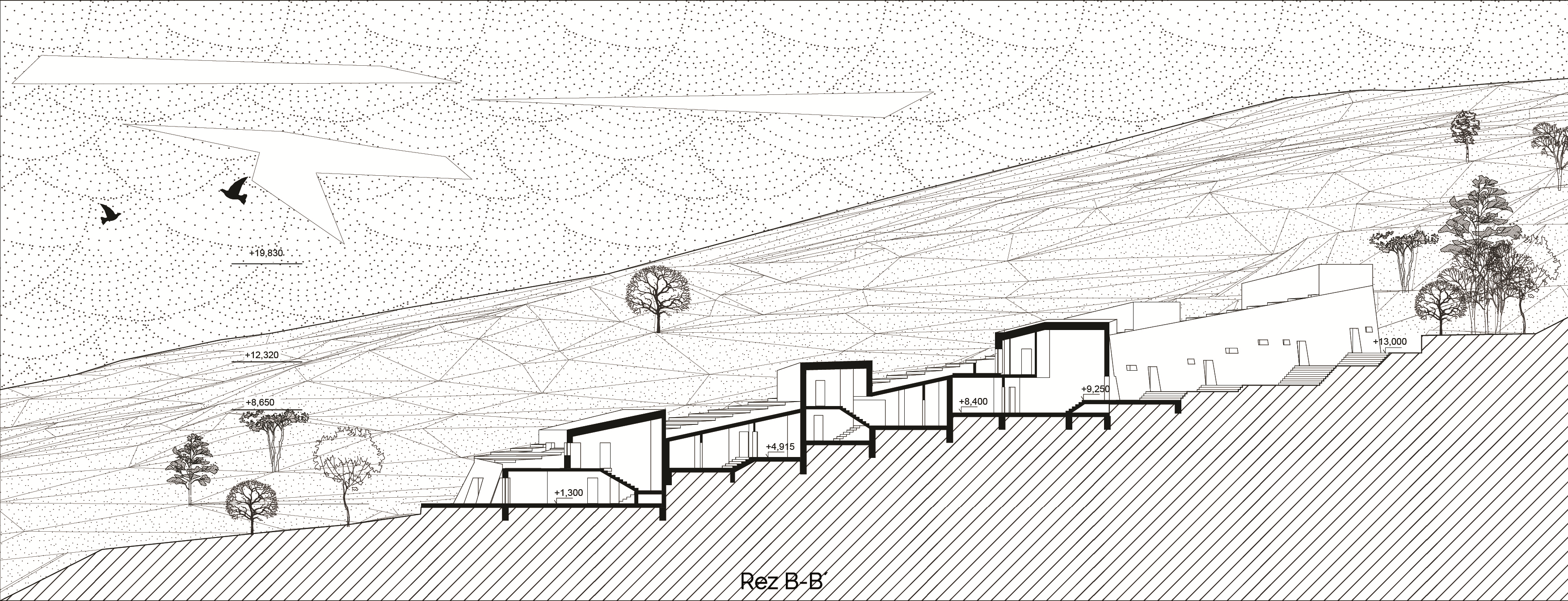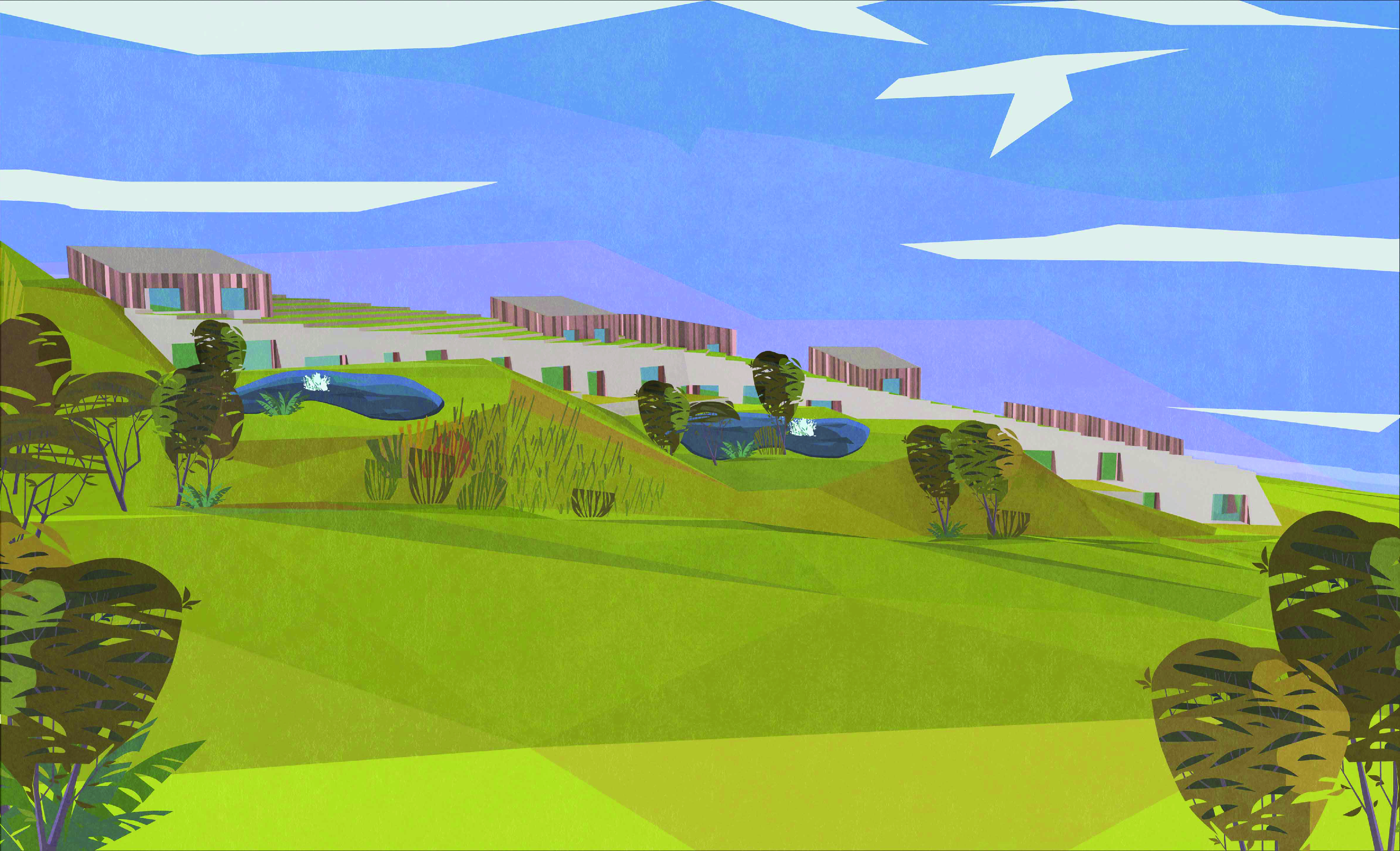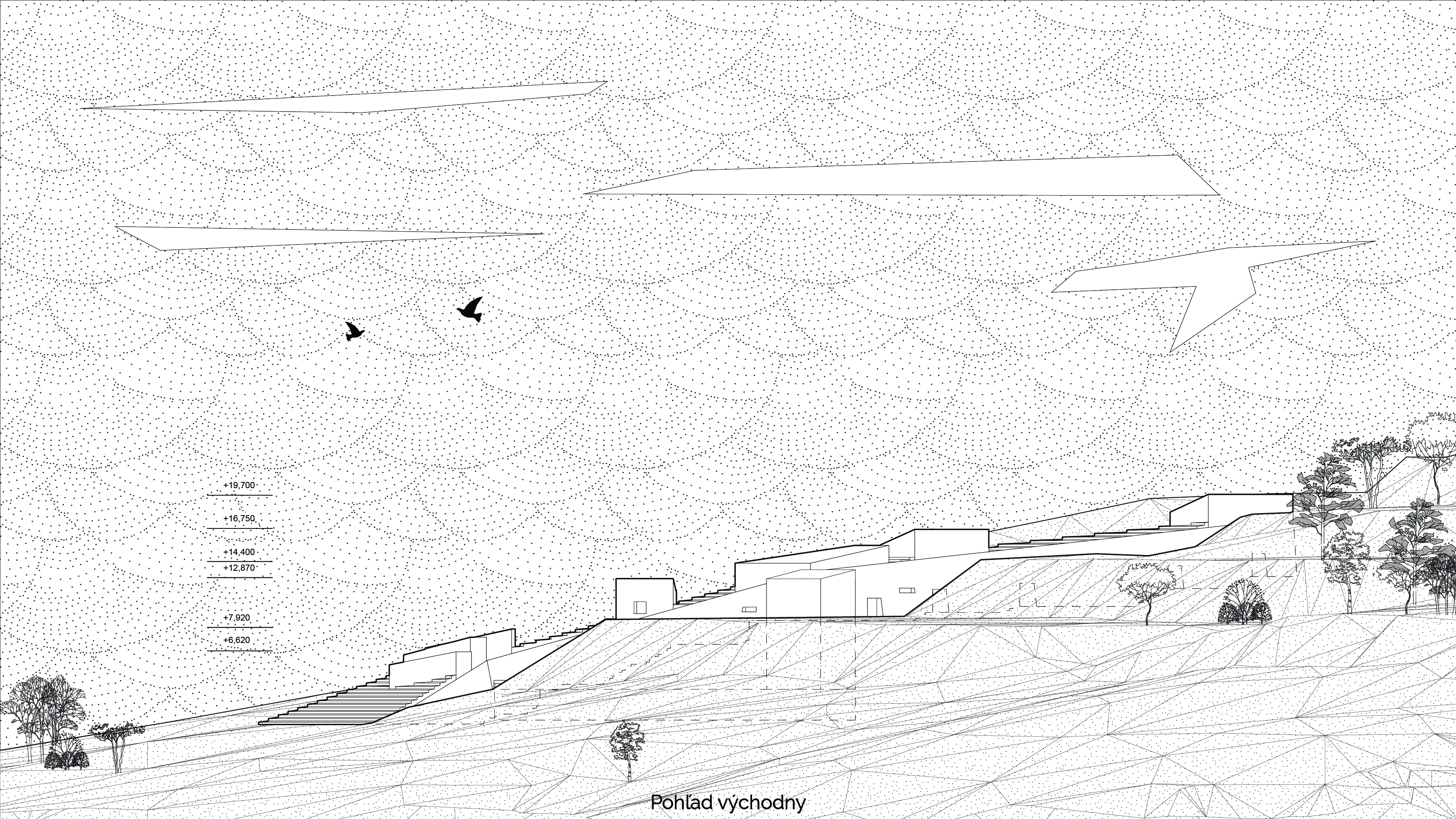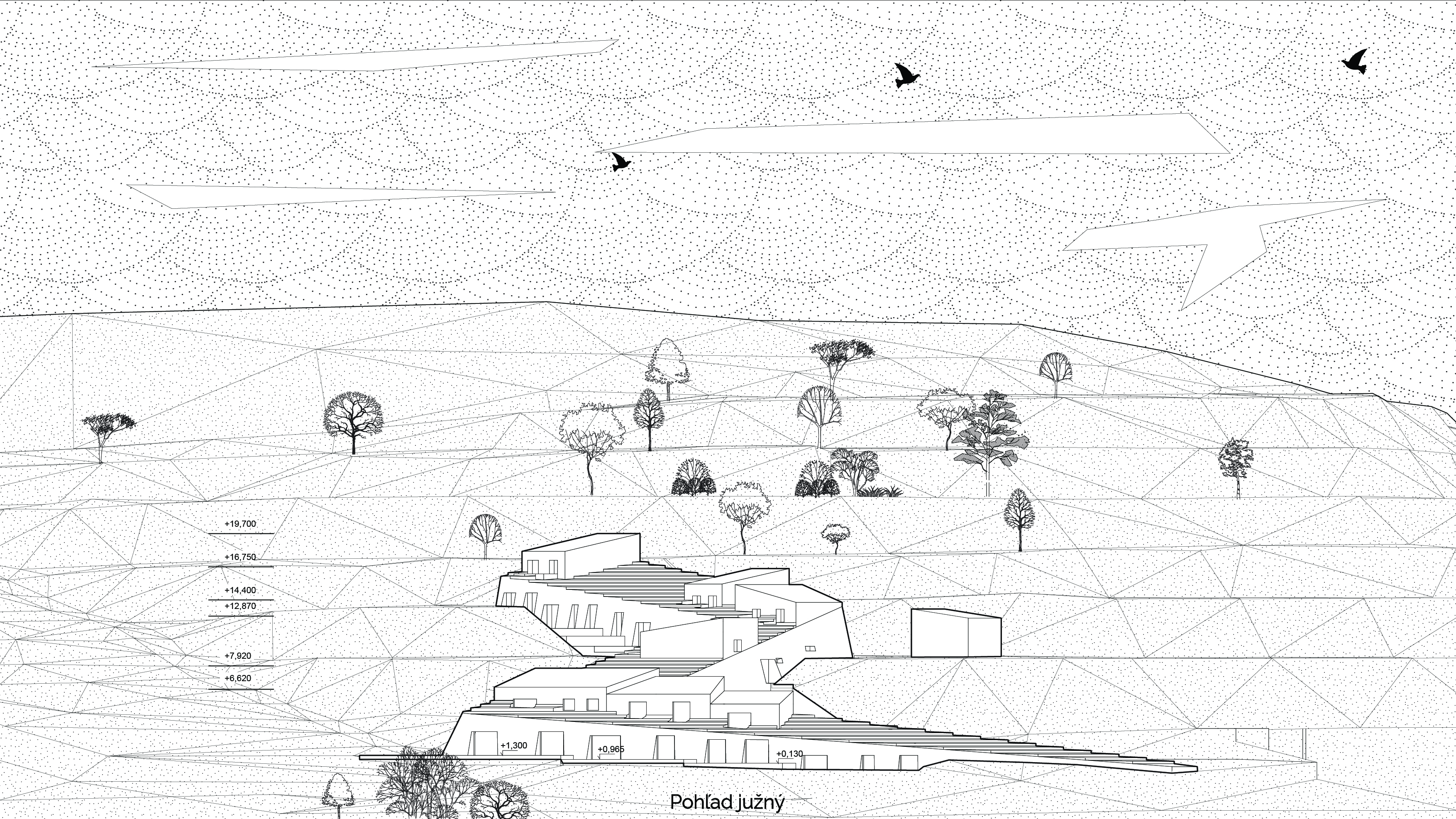 Tretia čast samotná architektúra navrhovaného objektu je výsledkom optimalizácie prvých dvoch krokov – krásy (kompozícia, vzhľad, osadenie v prostredí) a technológii (prečerpávacie jazerá, spevnená plocha odvádzajúca vodu, solárne zisky, ….) V poslednom kroku vstupujú do návrhu moje vlastné subjektívne pocity (čo považujem za pekne, krasné a funkčné) Na základe vlastných uvážení optimalizujem dispozíciu, priestor a objem.