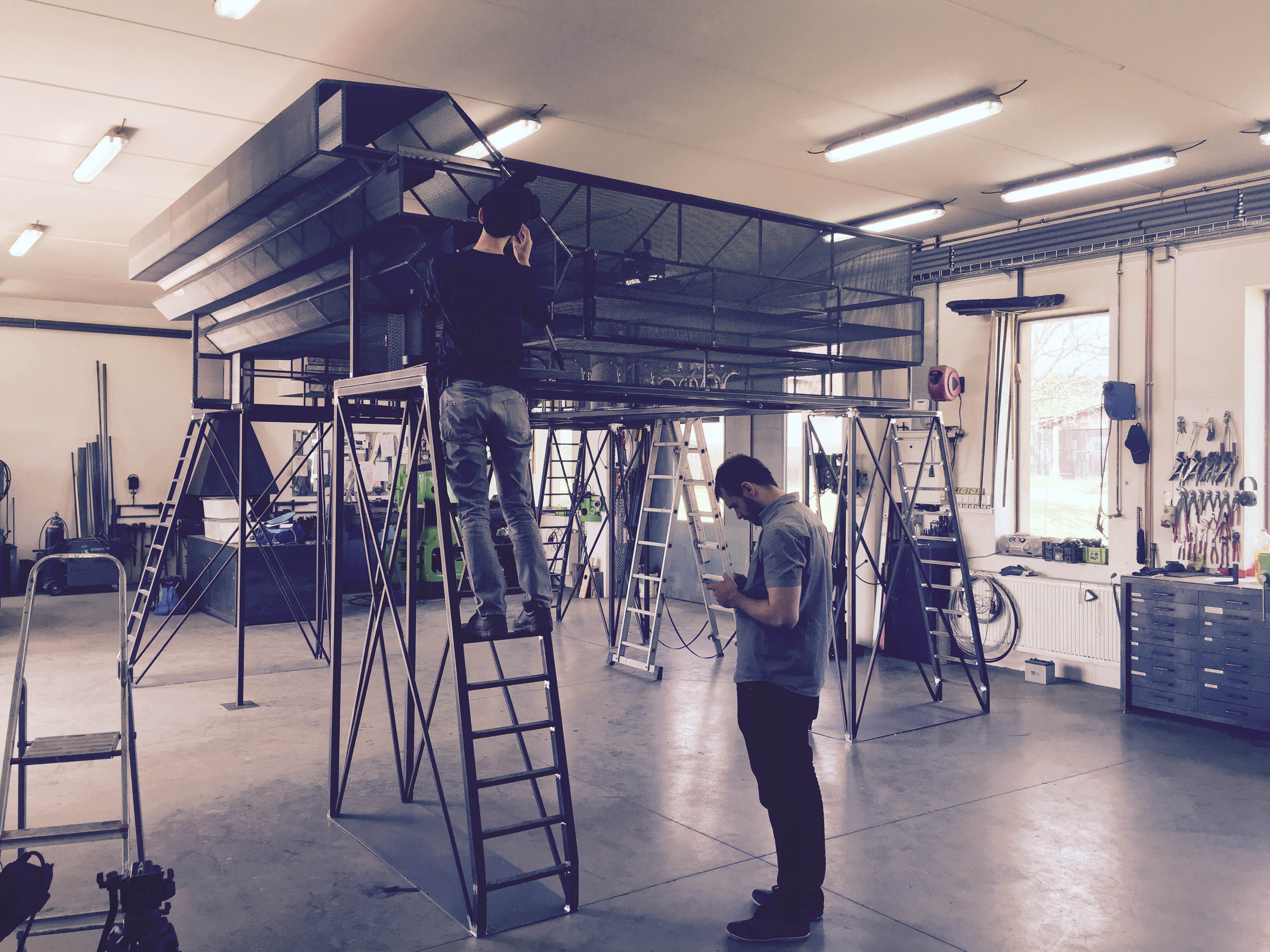 Tento projekt vznikol v spolupráci ateliéru Petra Hájka s Vítom Haladom a ateliéru Jána Studeného s Benjamínom Brádňanským (Katedra architektonickej tvorby VŠVU) a teoretika architektúry Mariána Zervana (Katedra teórie a dejín umenia Trnavskej univerzity a VŠVU). Ďalej sa rozvinul aj v spolupráci s komisárkou výstavy za SNG, teoretičkou architektúry Monikou Mitášovou (Katedra teórie a dejín umenia TU). Autori projekt predstavili aj na tlačovej konferencii v Slovenskej národnej galérii dňa 19. 5. 2016 spolu s dielami prizvaných umelcov vystavených v pavilóne, ktoré sa zaoberajú areálom či budovou SNG.