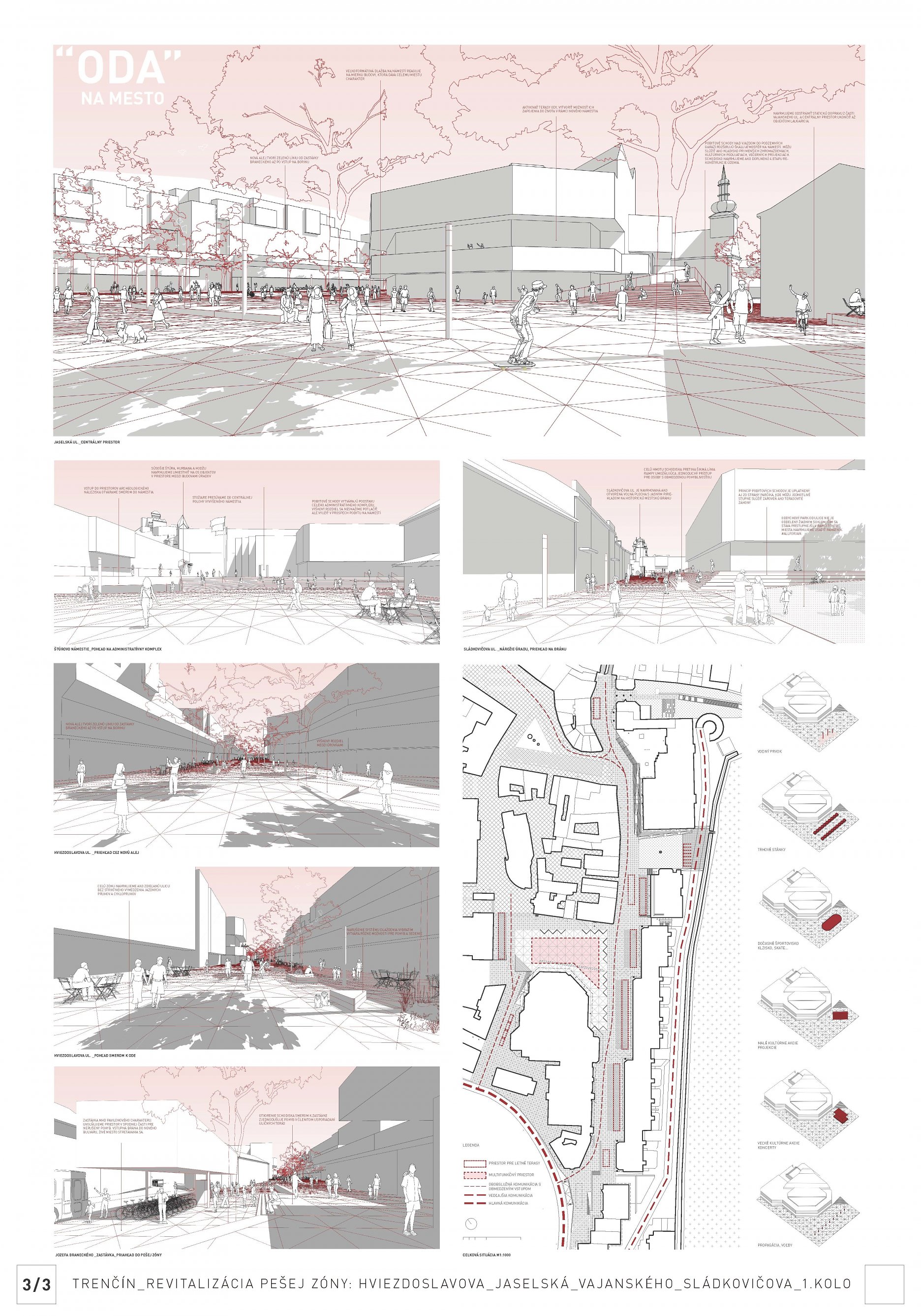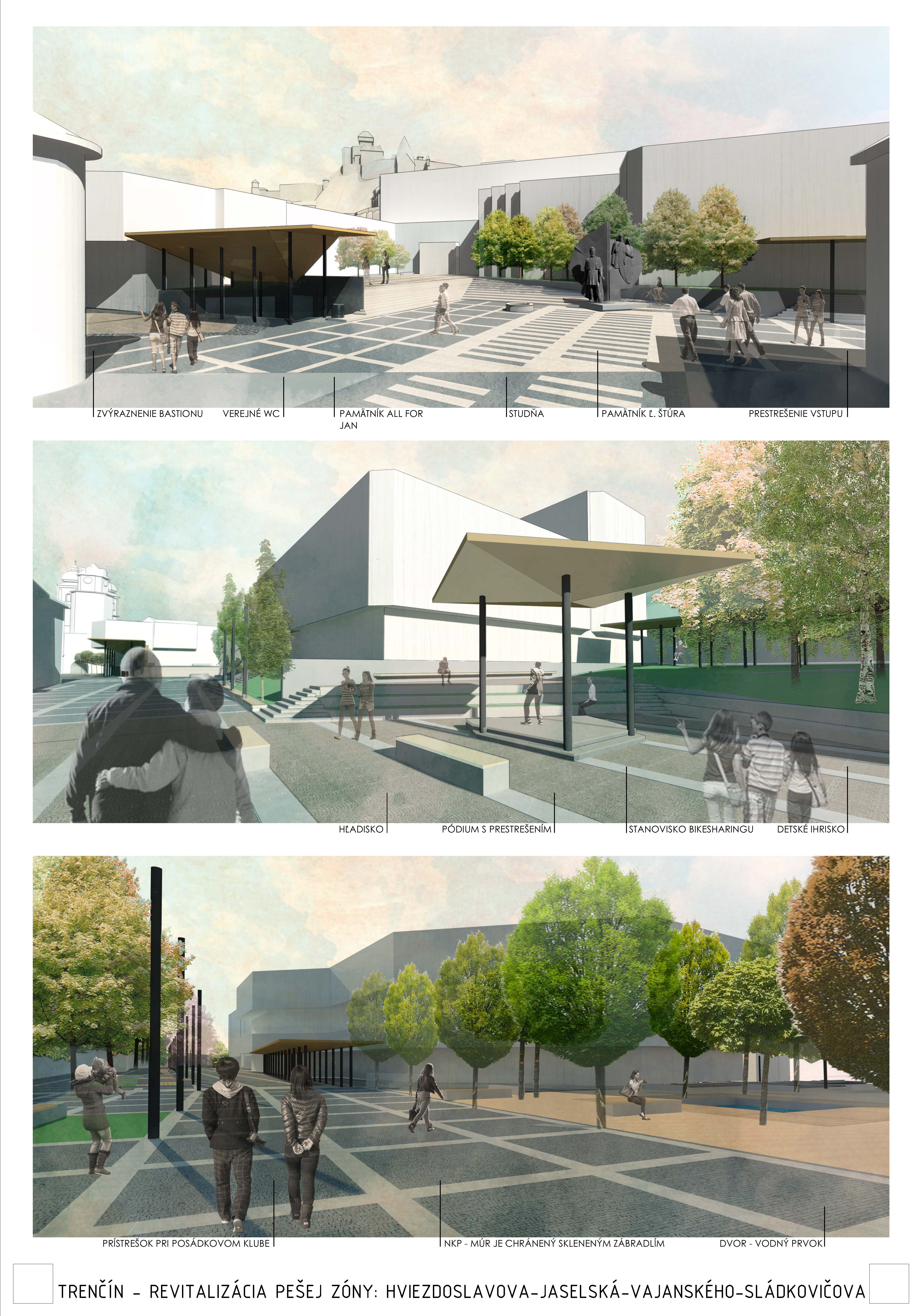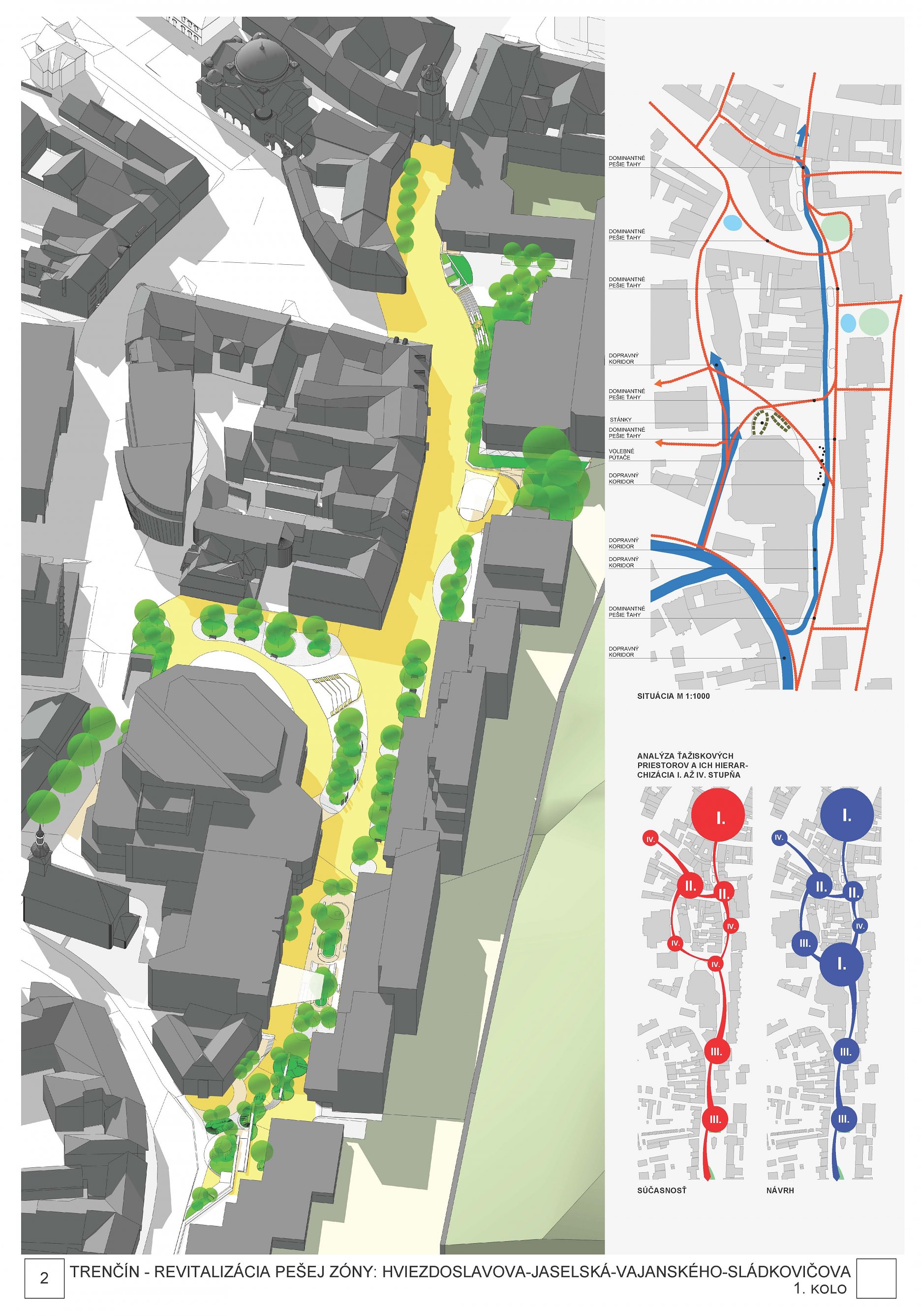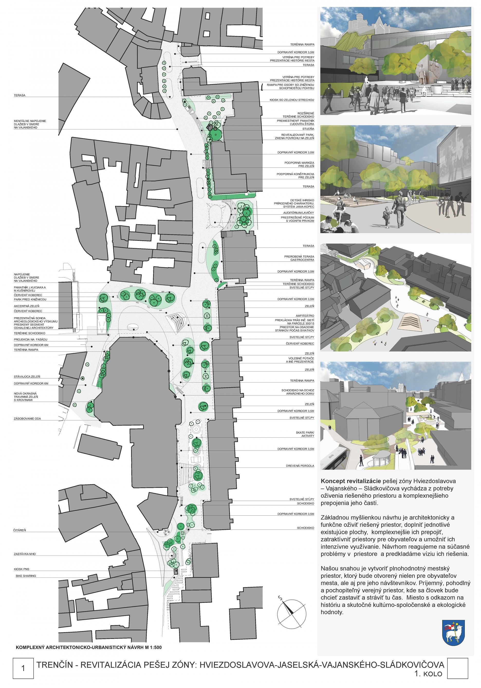 Rok po dokončení rozsiahlej rekonštrukcie Mierového námestia (ateliér RAW - súťaž 2007) vyhlásilo mesto Trenčín súťaž na revitalizáciu nadväzujúcich priestorov pešej zóny. Predmetom riešenia boli frekventované priestory ulíc Hviezdoslavova, Jaselská, Vajanského a Sládkovičova.