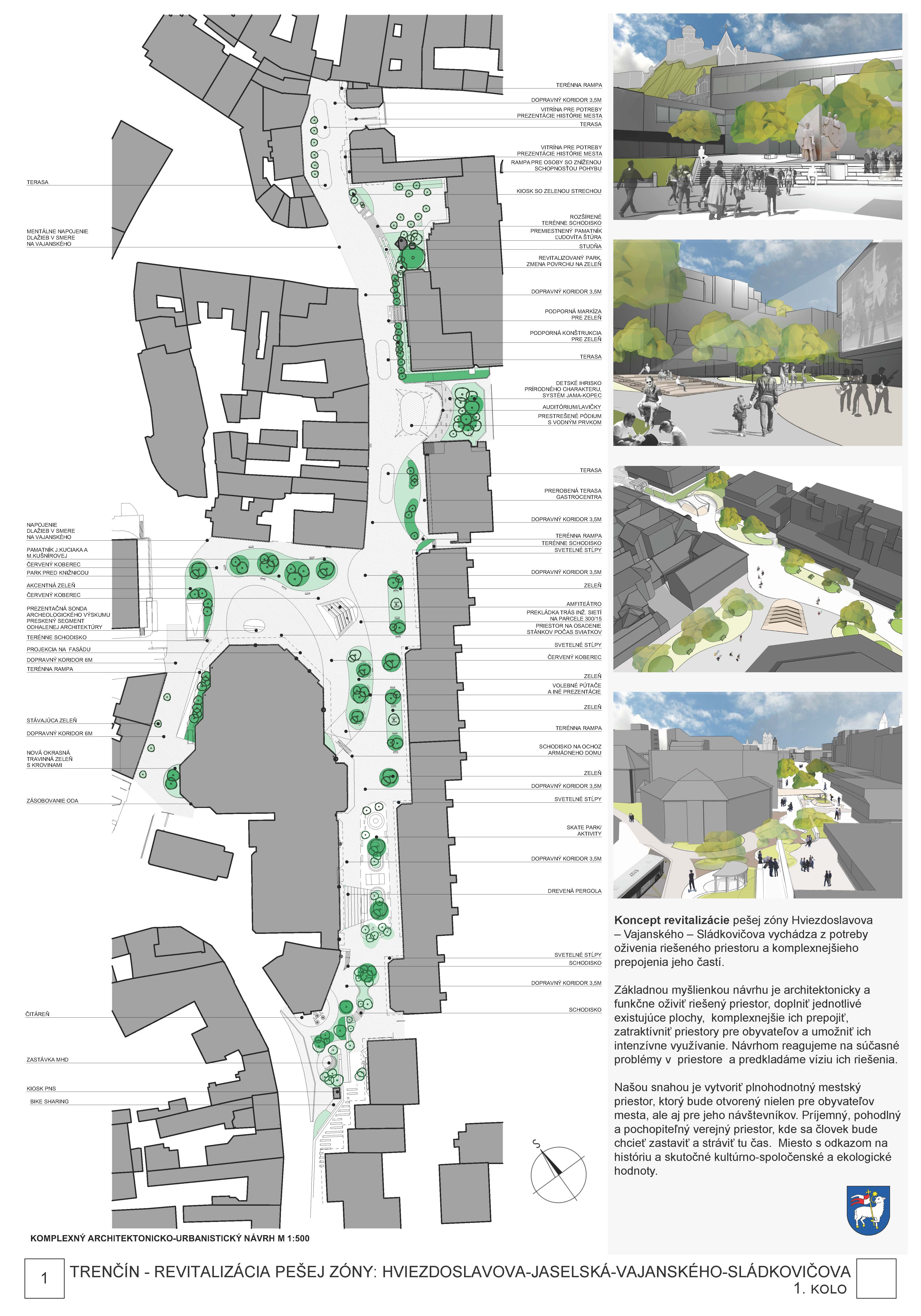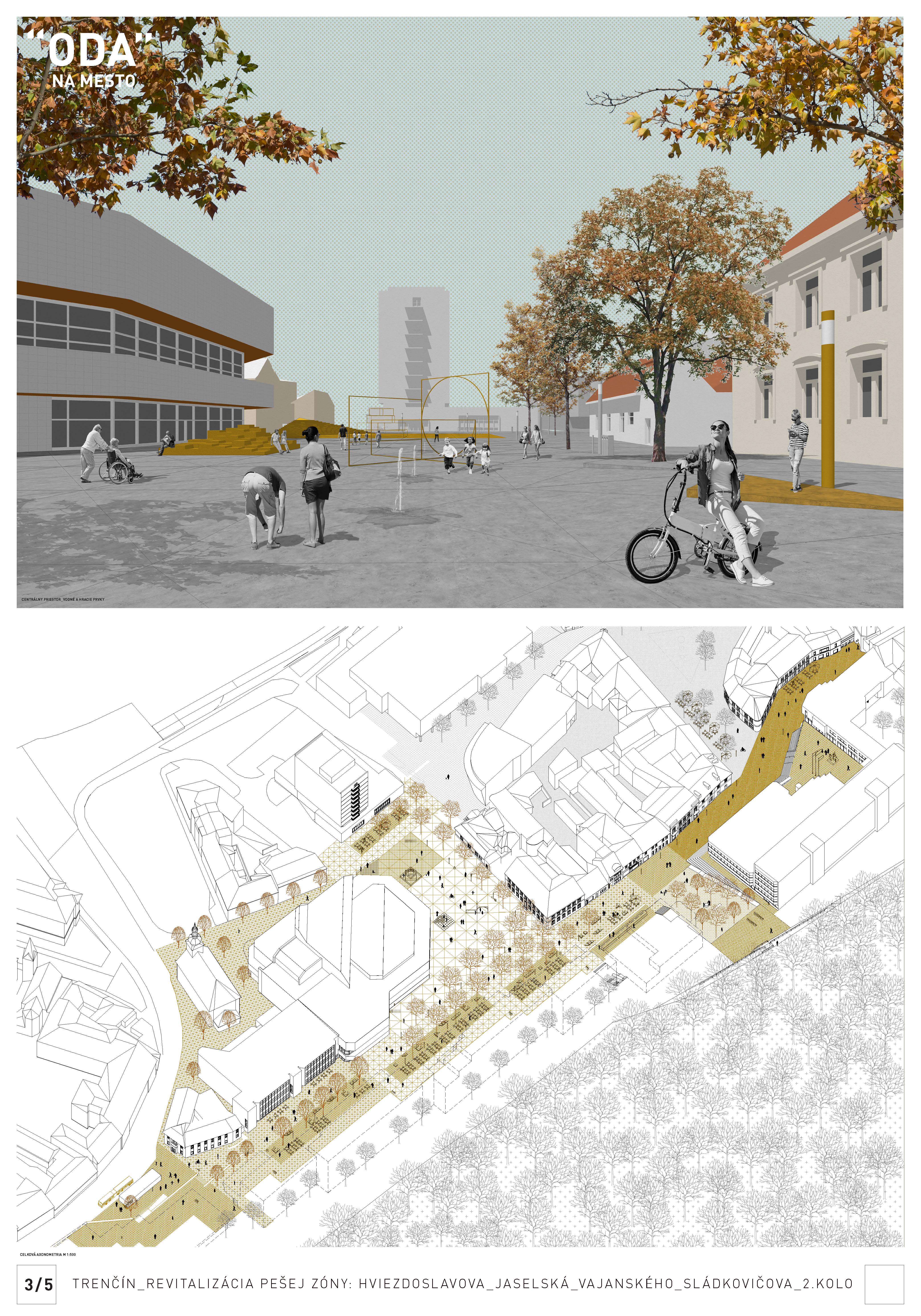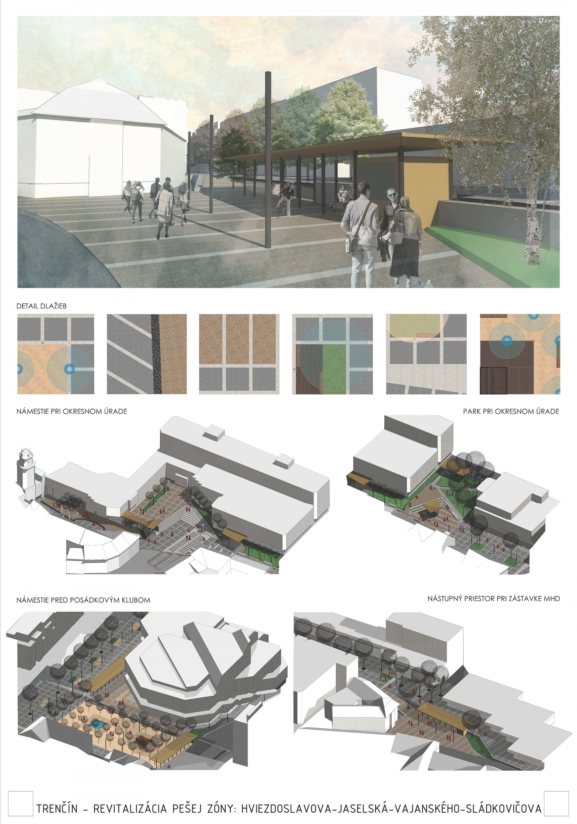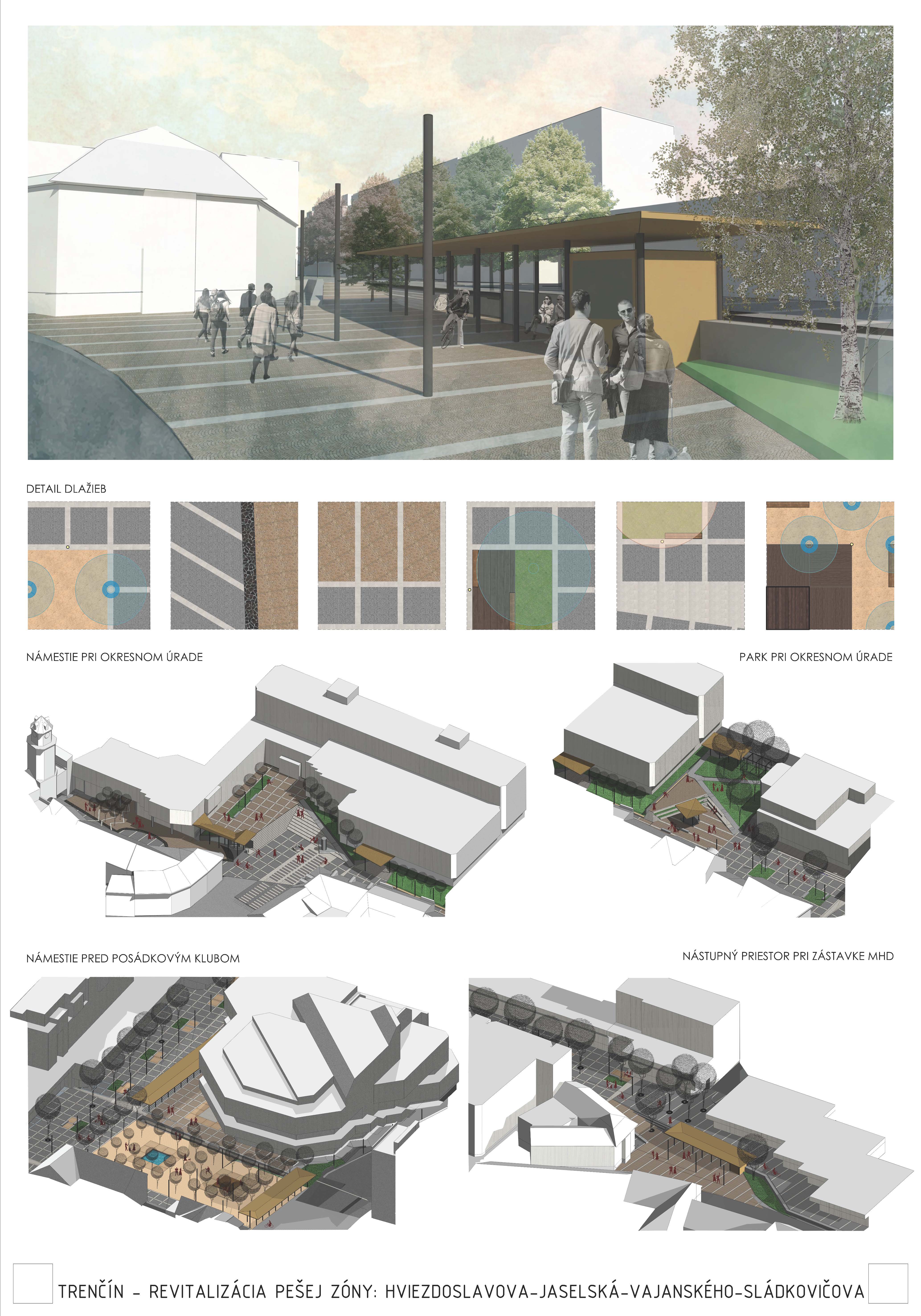 Rok po dokončení rozsiahlej rekonštrukcie Mierového námestia (ateliér RAW - súťaž 2007) vyhlásilo mesto Trenčín súťaž na revitalizáciu nadväzujúcich priestorov pešej zóny. Predmetom riešenia boli frekventované priestory ulíc Hviezdoslavova, Jaselská, Vajanského a Sládkovičova.
