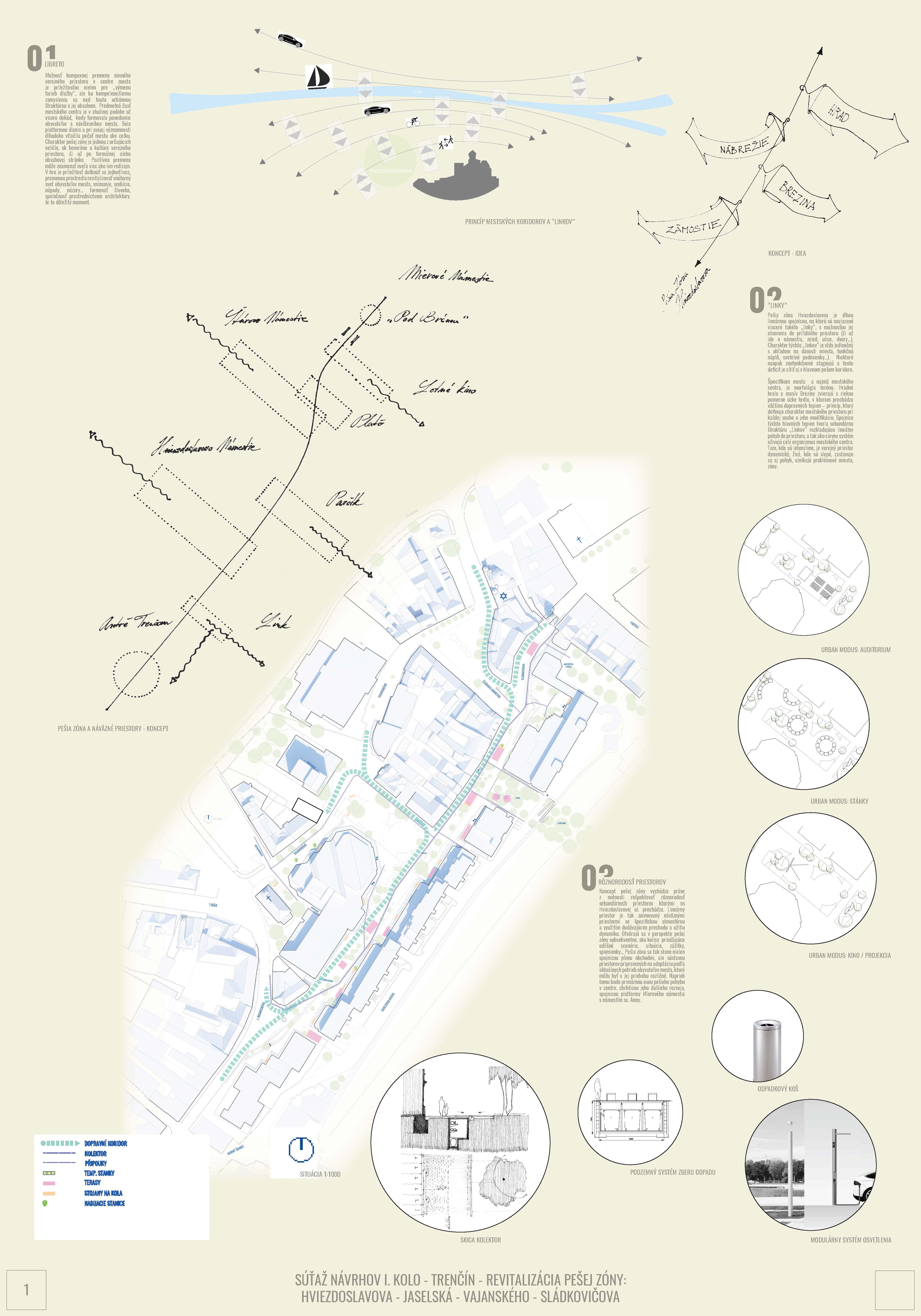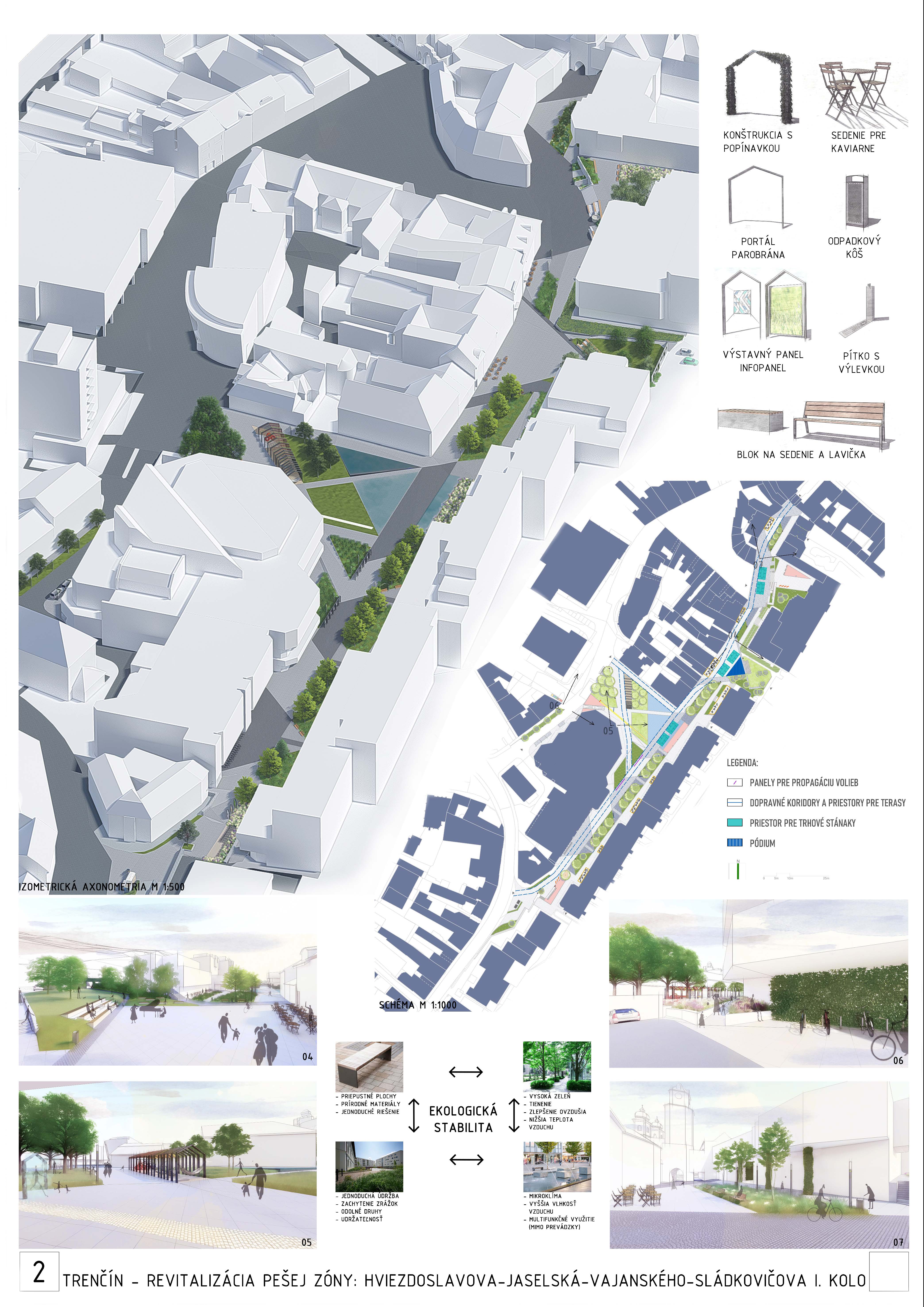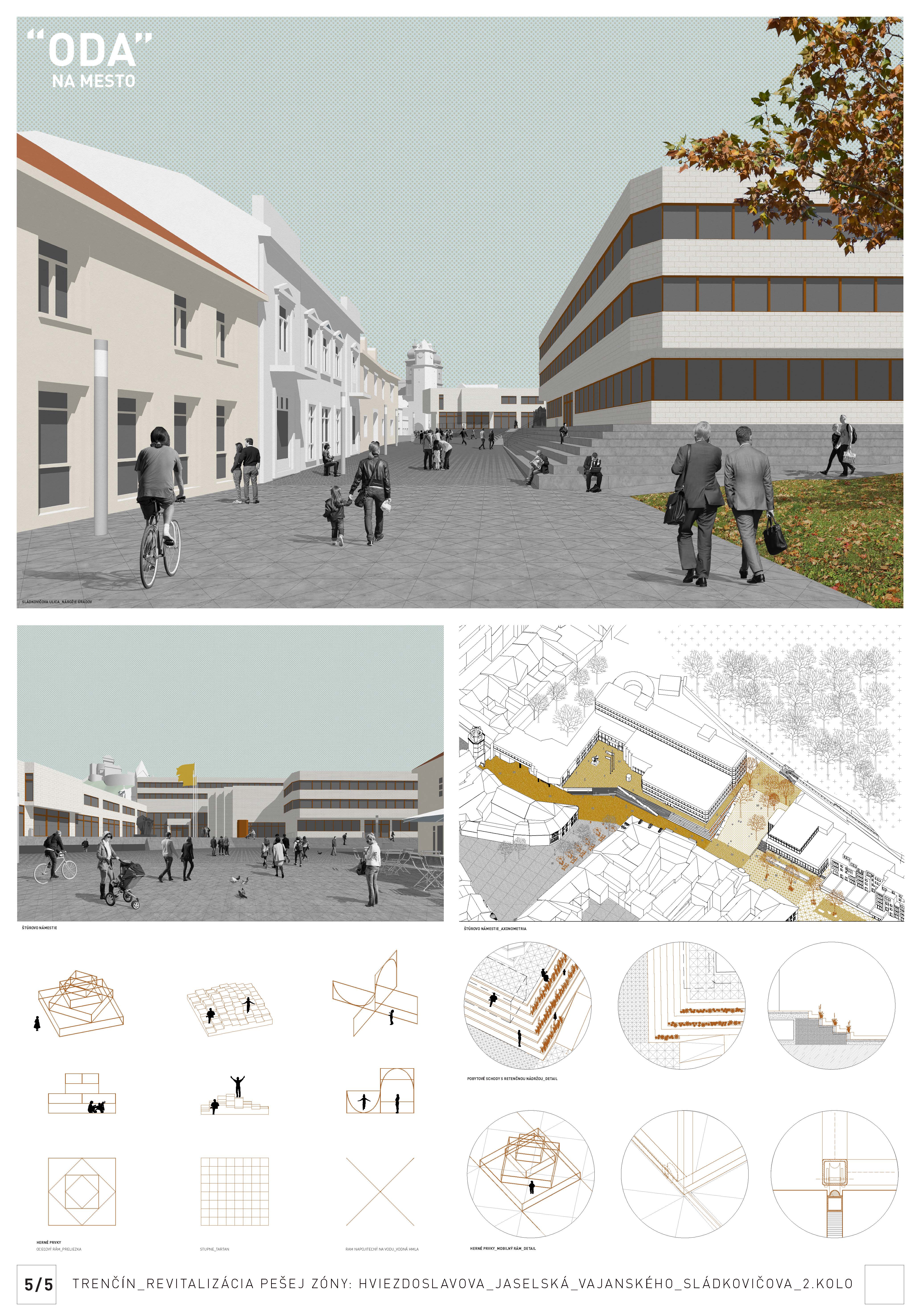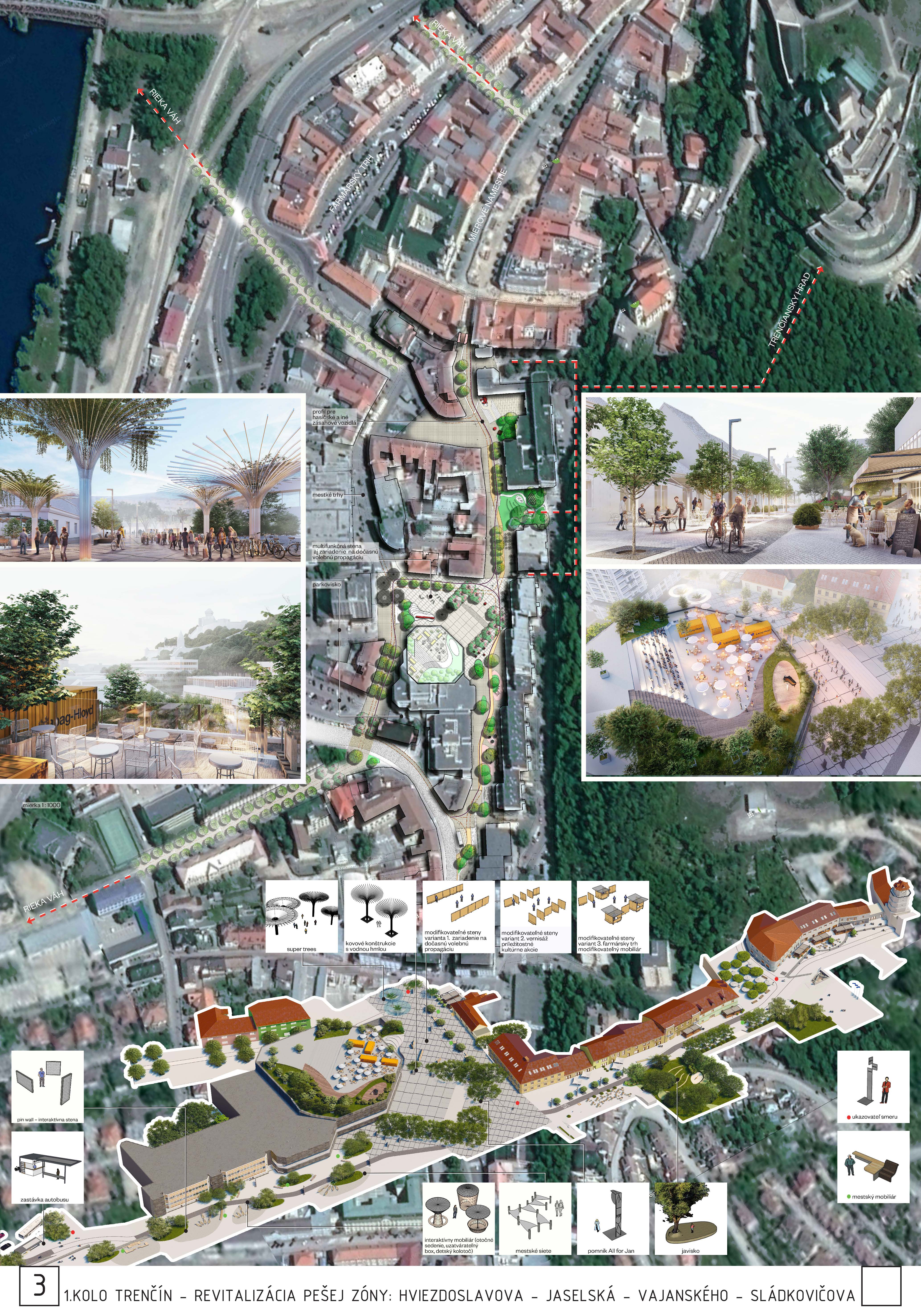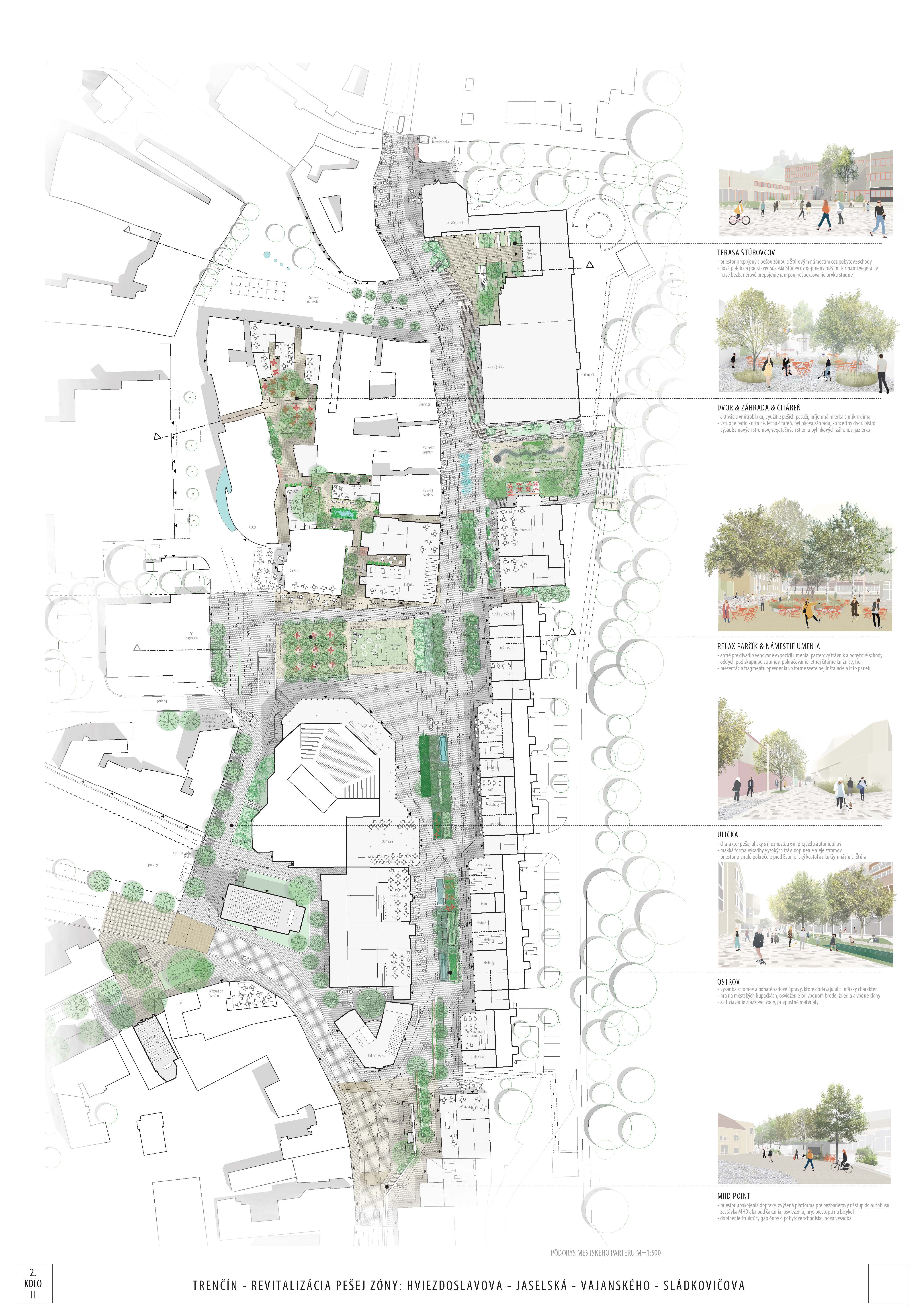 Rok po dokončení rozsiahlej rekonštrukcie Mierového námestia (ateliér RAW - súťaž 2007) vyhlásilo mesto Trenčín súťaž na revitalizáciu nadväzujúcich priestorov pešej zóny. Predmetom riešenia boli frekventované priestory ulíc Hviezdoslavova, Jaselská, Vajanského a Sládkovičova.