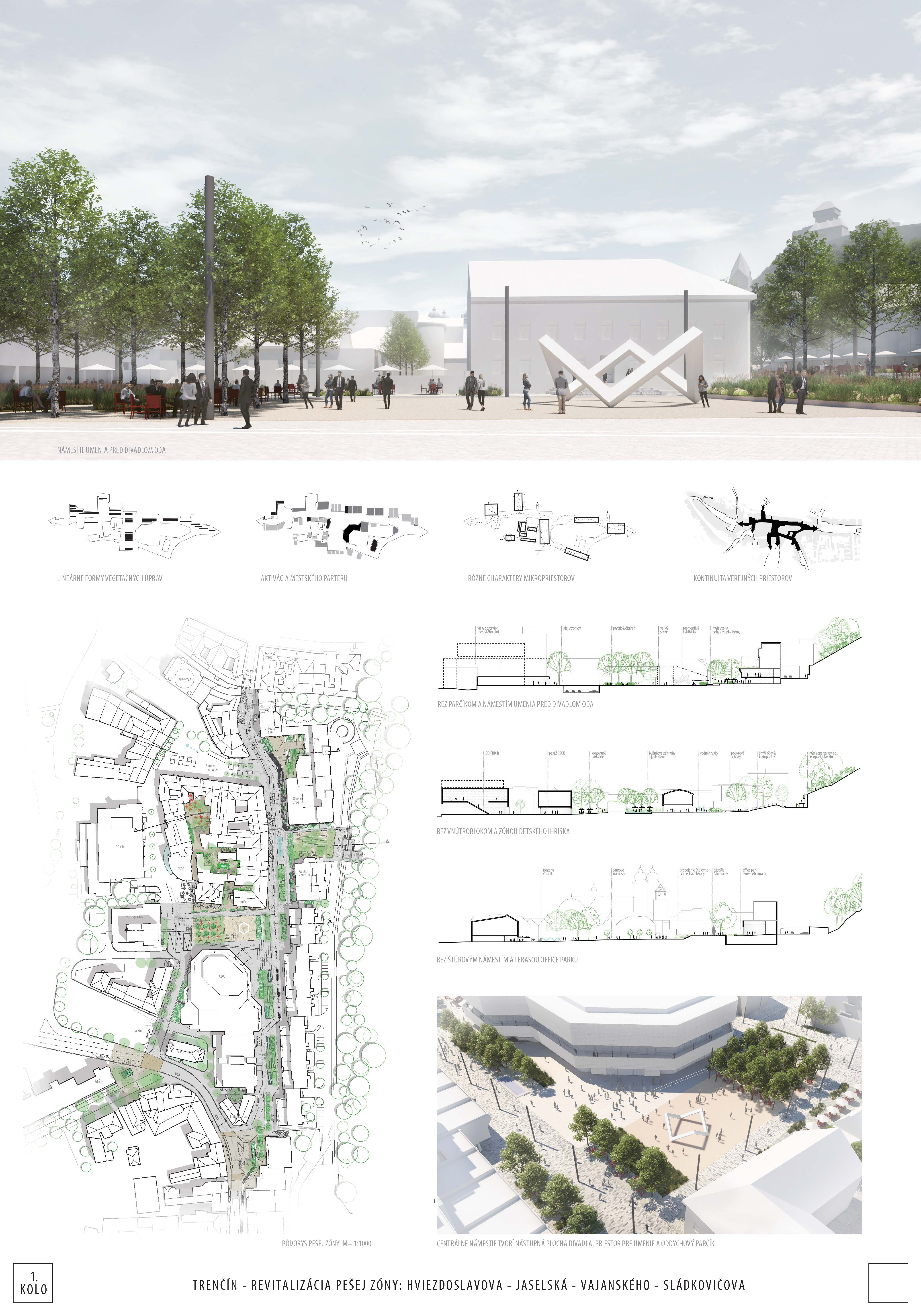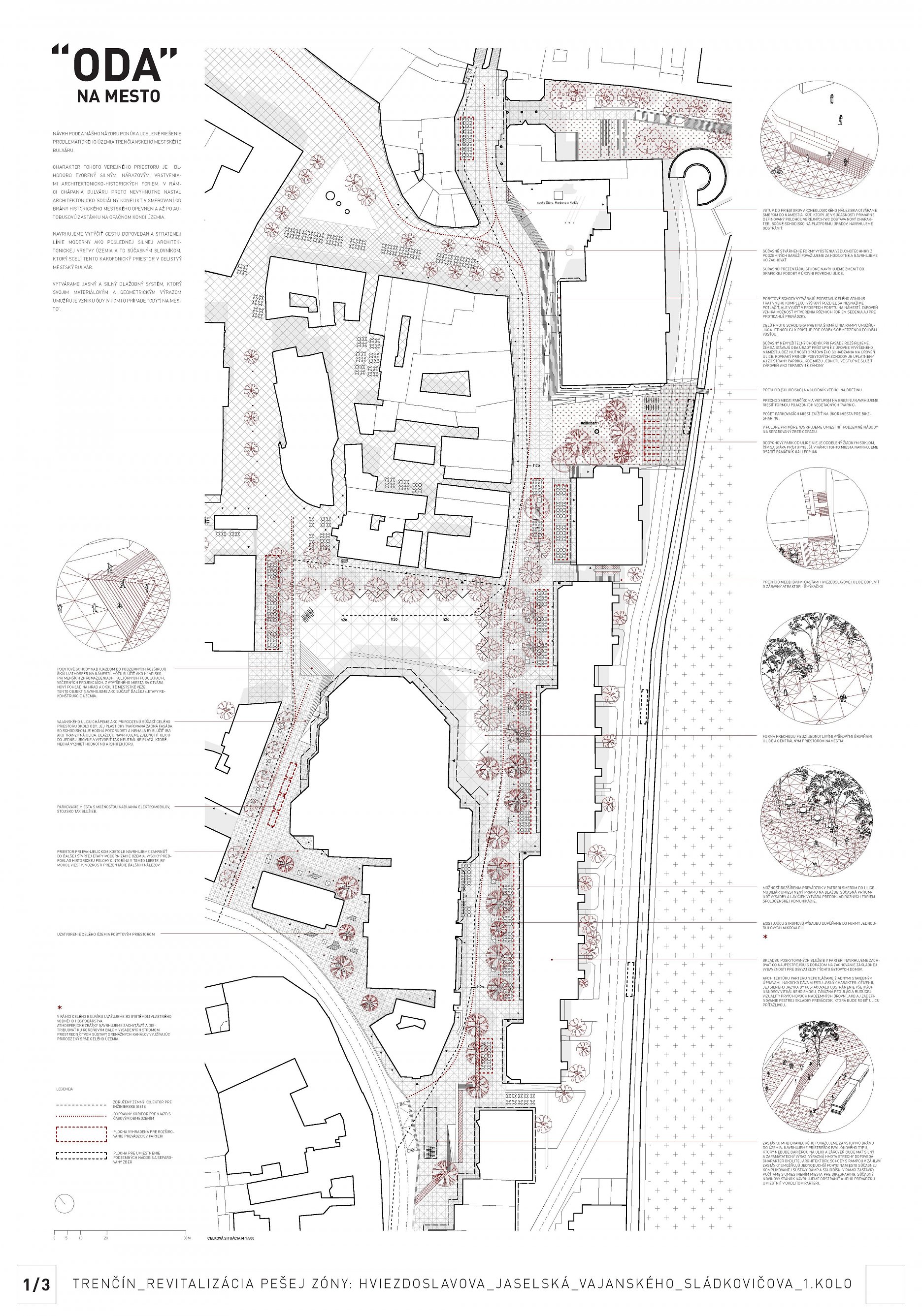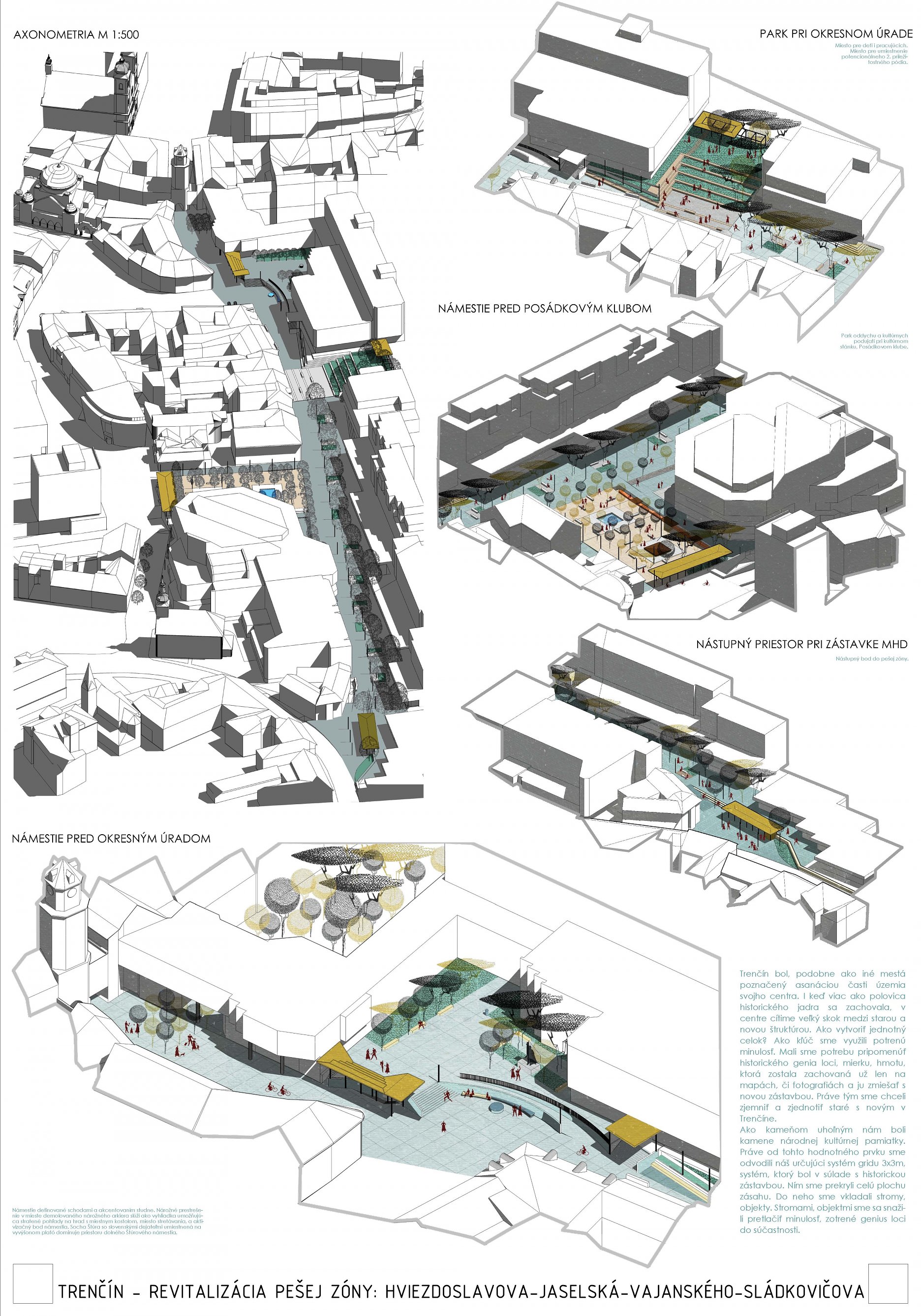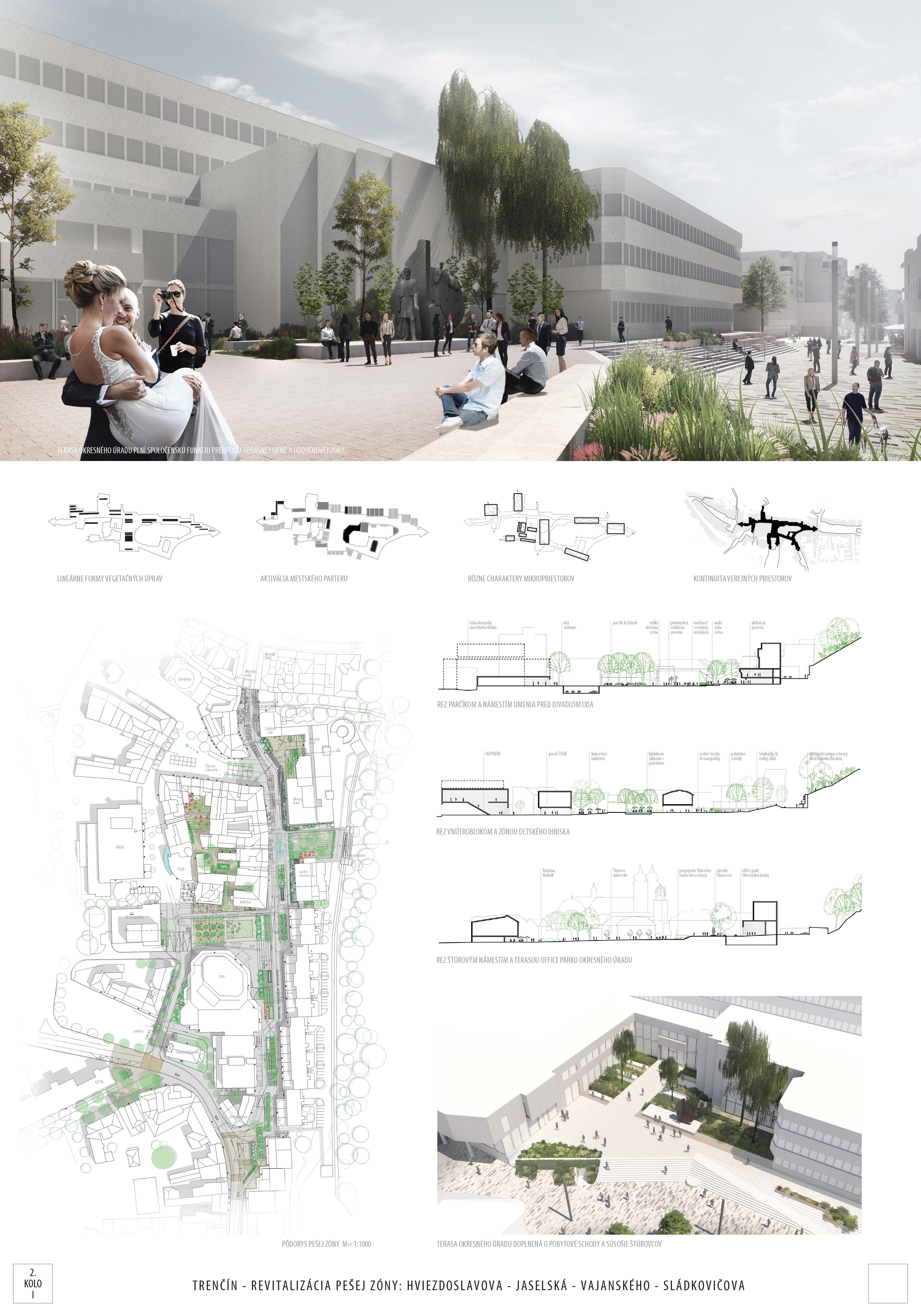 Rok po dokončení rozsiahlej rekonštrukcie Mierového námestia (ateliér RAW - súťaž 2007) vyhlásilo mesto Trenčín súťaž na revitalizáciu nadväzujúcich priestorov pešej zóny. Predmetom riešenia boli frekventované priestory ulíc Hviezdoslavova, Jaselská, Vajanského a Sládkovičova.