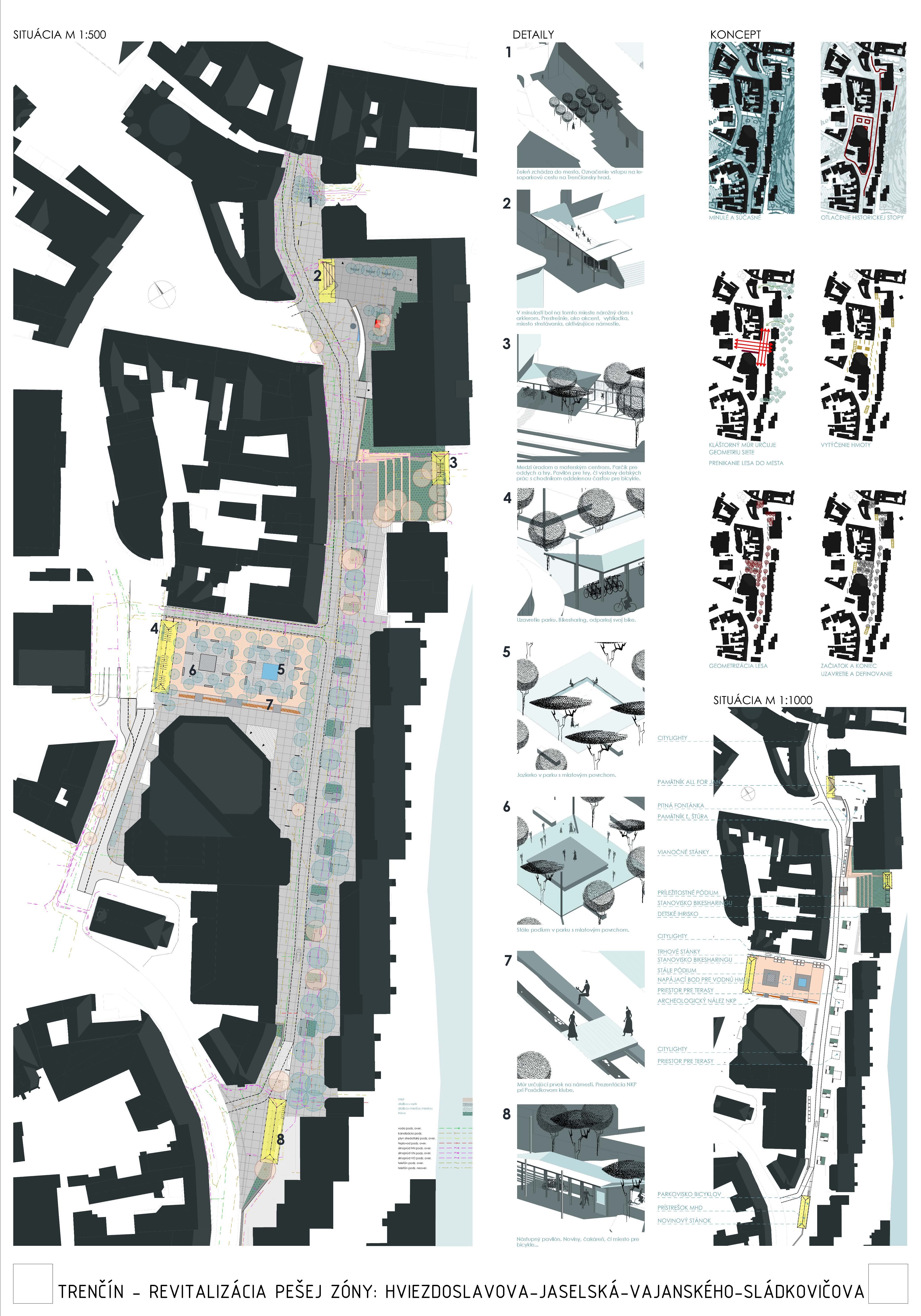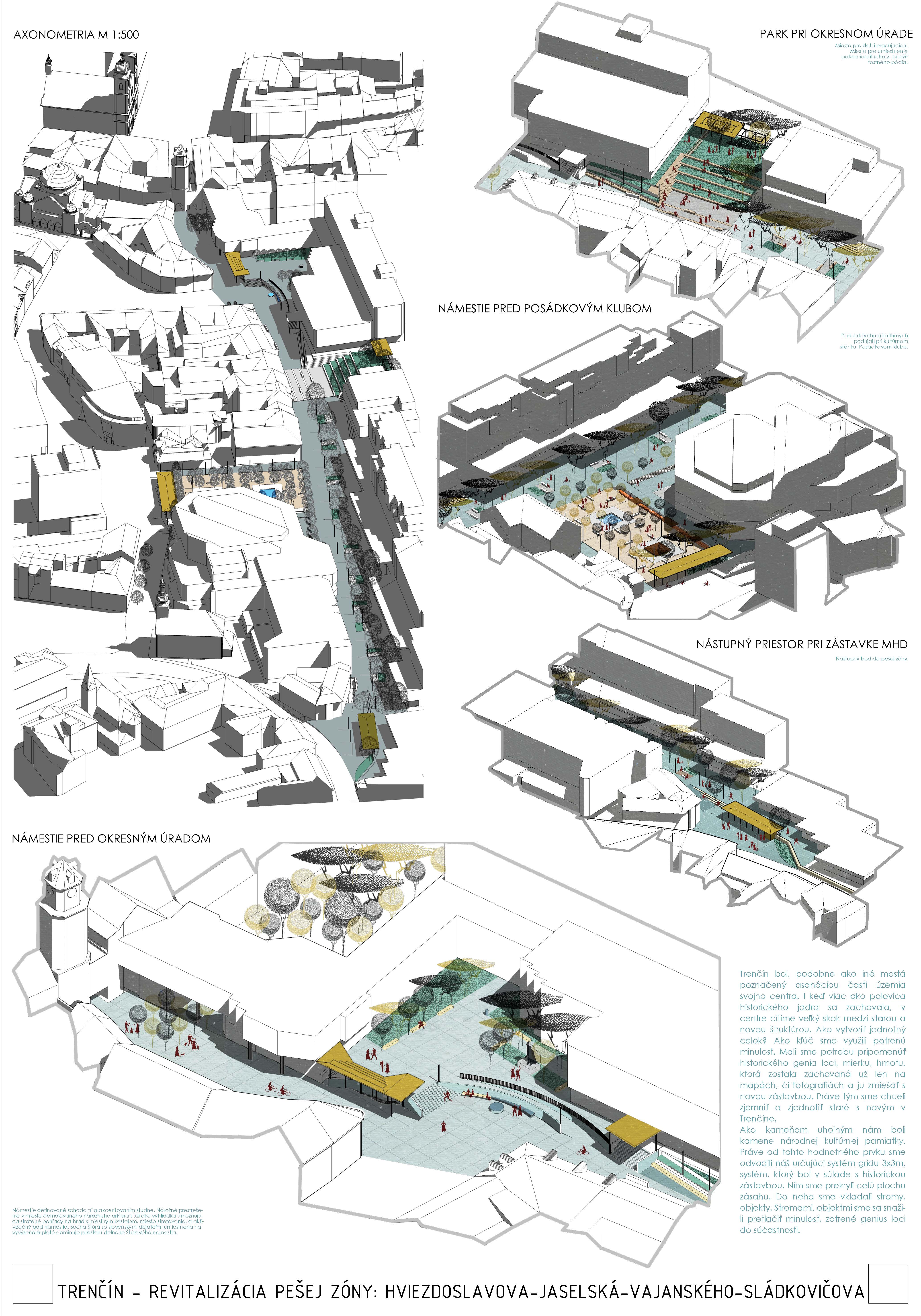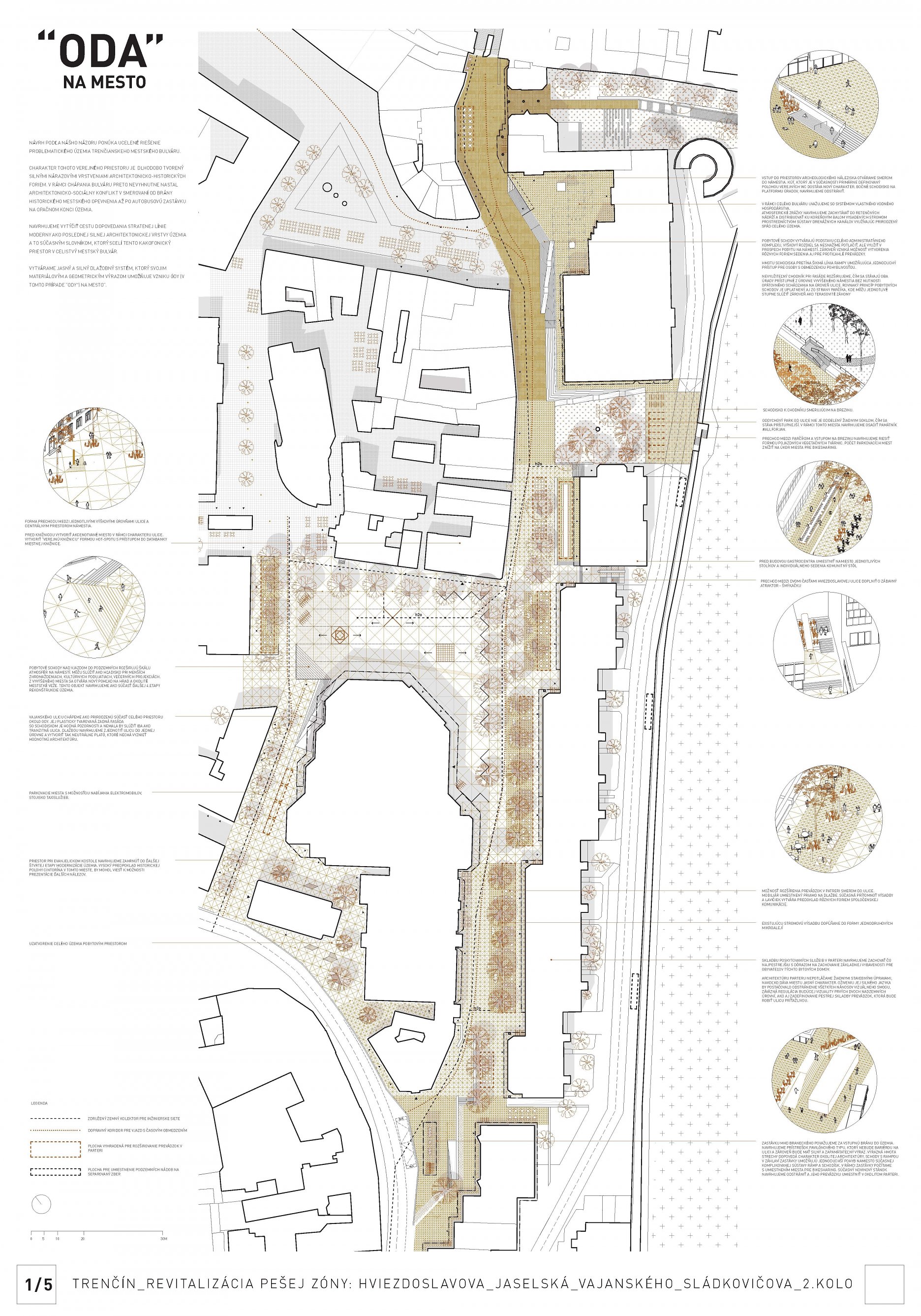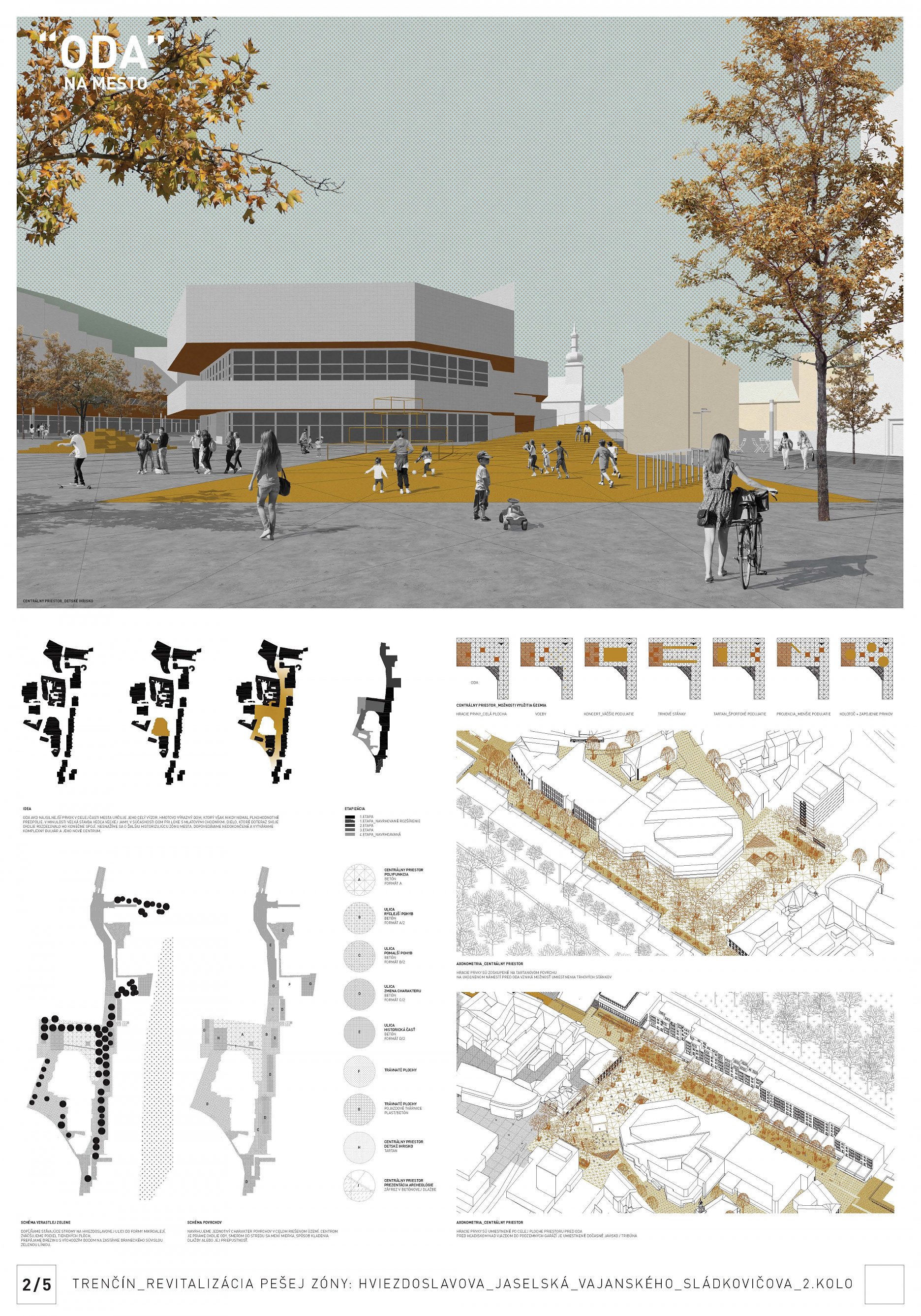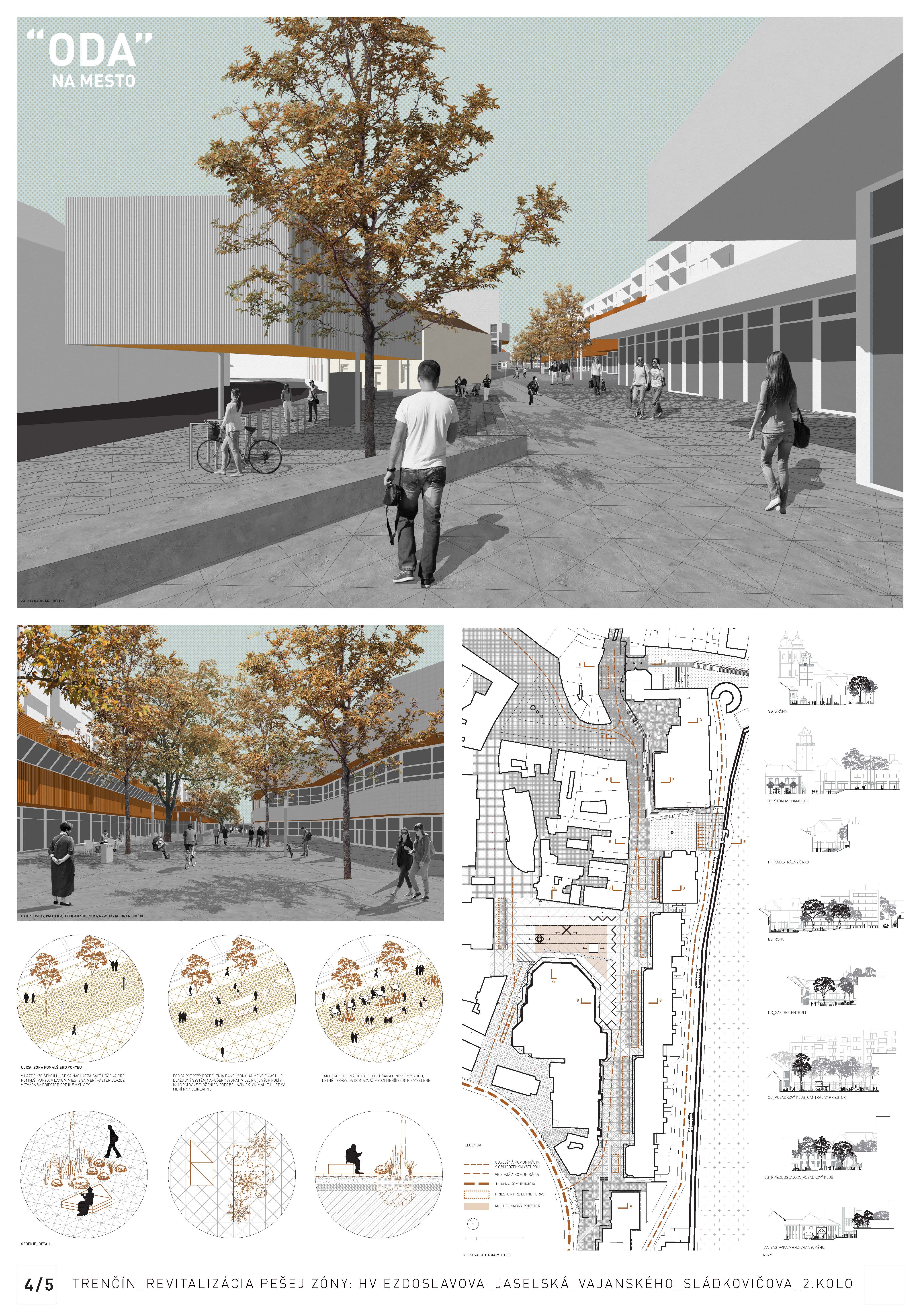 Rok po dokončení rozsiahlej rekonštrukcie Mierového námestia (ateliér RAW - súťaž 2007) vyhlásilo mesto Trenčín súťaž na revitalizáciu nadväzujúcich priestorov pešej zóny. Predmetom riešenia boli frekventované priestory ulíc Hviezdoslavova, Jaselská, Vajanského a Sládkovičova.