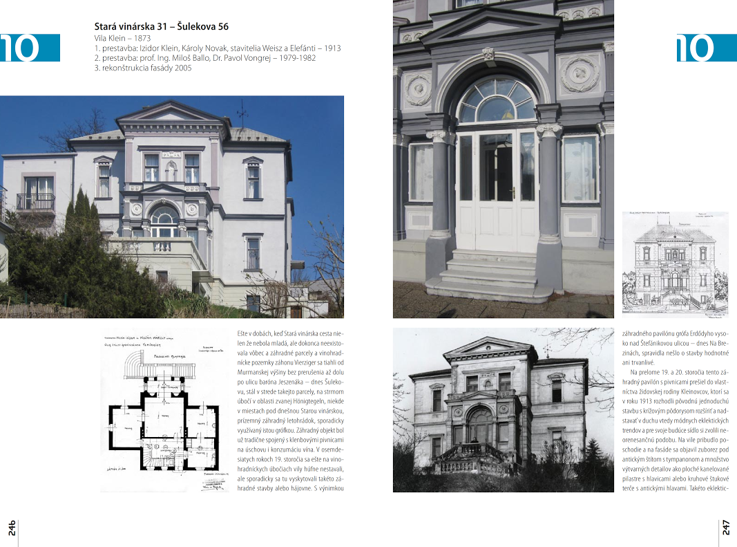 V knihe nepublikujeme problematické vily, ktoré nedodržali podmienky zástavby a použili svoje politické a finančné páky na legalizáciu výnimiek. Málo je kvalitných rekonštrukcií, ktoré by zachraňovali pôvodné – často vzácne domy. Manželia Tarabovci s noblesou zrekonštruovali pôvodnú vilu Dr. Elleka, Iľja Skoček ml. kreatívne nadstavil a zrekonštruoval jeden z Pavúkových domov. Pribudli výrazné modernistické vily ako vlastná Studeného a Brudňákova z ateliéru Karola Kállaya. Dokončuje sa expresívny presklený dom na Mudroňovej ulici z autorskej dielne Ľuba Závodného.