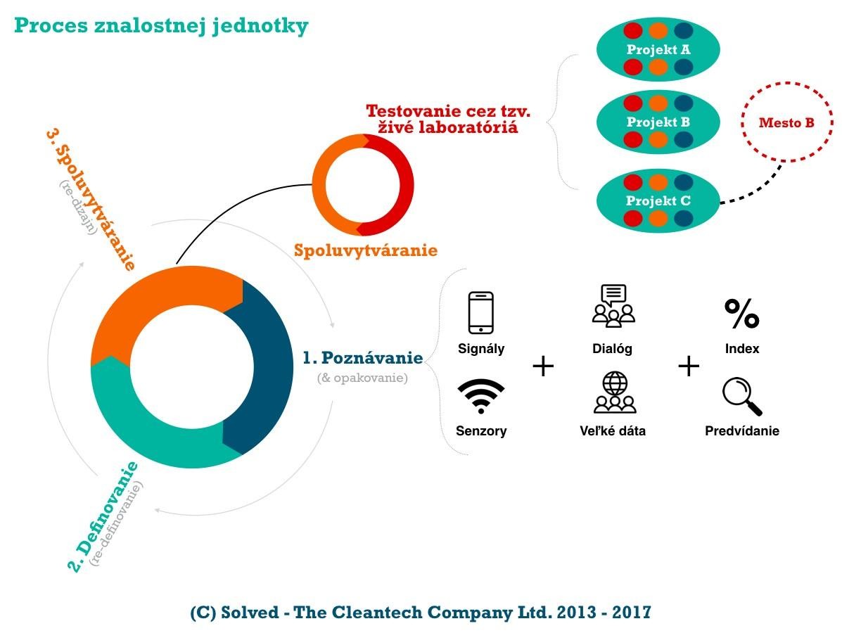 Znalostná jednotka je prierezovou odbornou jednotkou mesta alebo samosprávy zabezpečujúcou implementáciu Smart city agendy z pozície mesta a poskytujúcou technickú podporu pre činnosť Smart city platformy. Je riadená vedením samosprávy a tvorená vedúcimi jednotlivých odborov mesta, resp. nimi poverenými pracovníkmi zabezpečujúcimi implementáciu Smart city agendy na príslušnom úseku. Znalostná jednotka je zameraná na zber a spracovanie podnetov a na šírenie otvorených dát. Tiež zabezpečuje fungovanie digitálnej platformy pre miestne pilotné a demonštračné projekty, aktívne pracuje s expertmi (lokálnymi aj medzinárodnými) na prenose knowhow a najlepších praktík. Umožňuje spoluvytváranie udržateľných riešení prostredníctvom metódy dizajnového myslenia čo najlepšie odrážajúcich potreby obyvateľov.