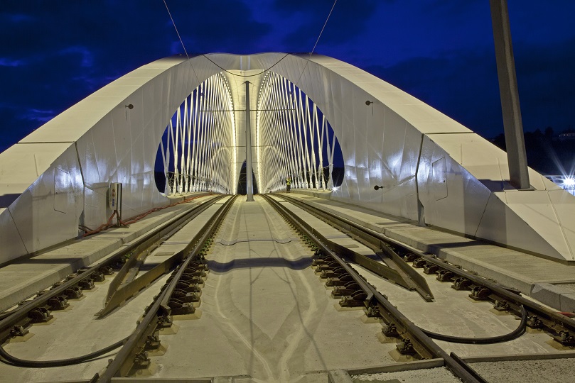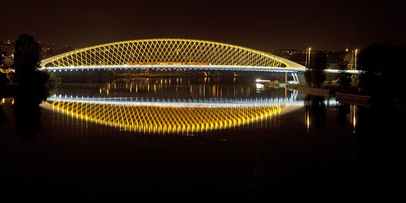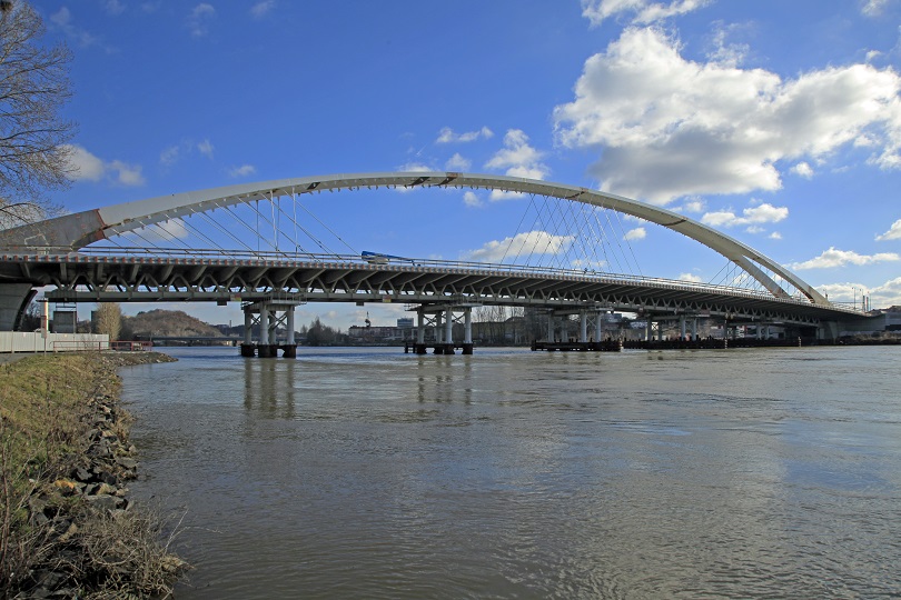 Premostenie je tvorené dvojicou samostatných konštrukcií, ktoré sú oddelené dilatáciami nad pilierom umiestneným na Trójskom brehu. Hlavné pole je navrhnuté ako jednoducho podopretá oceľová oblúková konštrukcia (rozpätie 200,4 m, vzopätie oblúka 20,0 m) s predpätou betónovou mostovkou, podporovanou prefabrikovanými priečnikmi v rastri 4 m, zavesenými na systéme dvoch stoviek sieťovo usporiadaných tyčových závesov. Vďaka zvolenému statickému systému sieťového oblúku bolo možné znížiť vzopätie oblúka. Pomer vzopätia a rozpätie je 1/10. Pomer konštrukčnej výšky oblúku a jeho rozpätia je 1/183. Tieto parametre určujú eleganciu plochého oblúkového mosta.