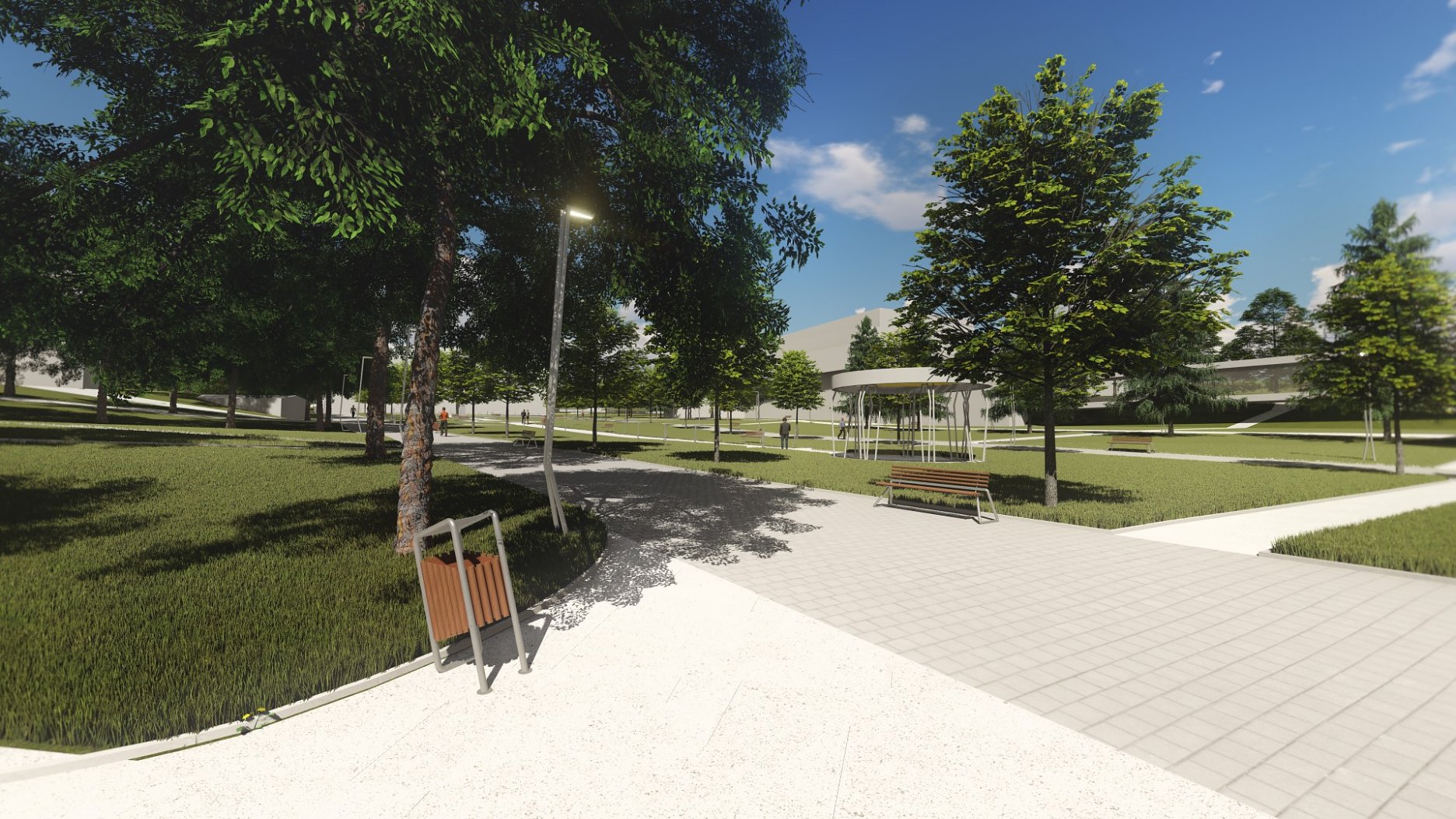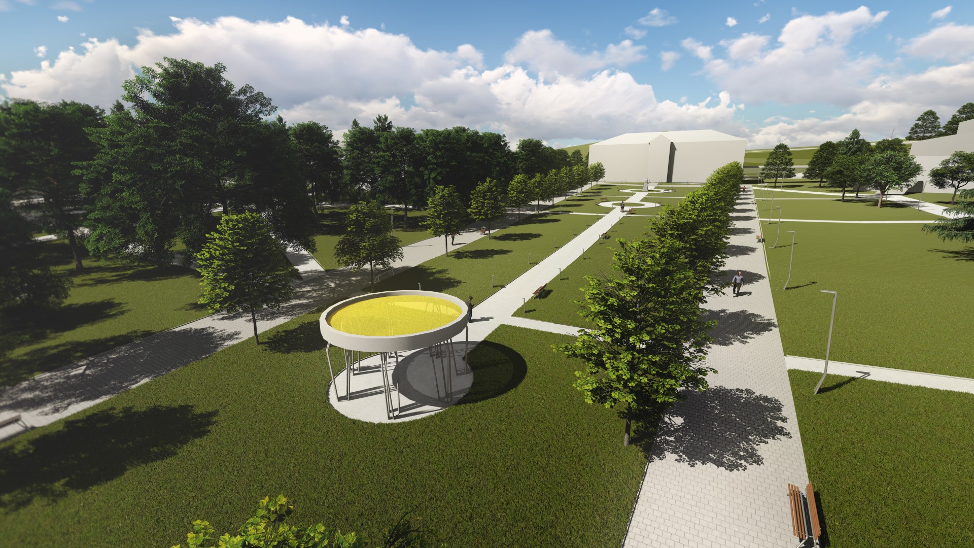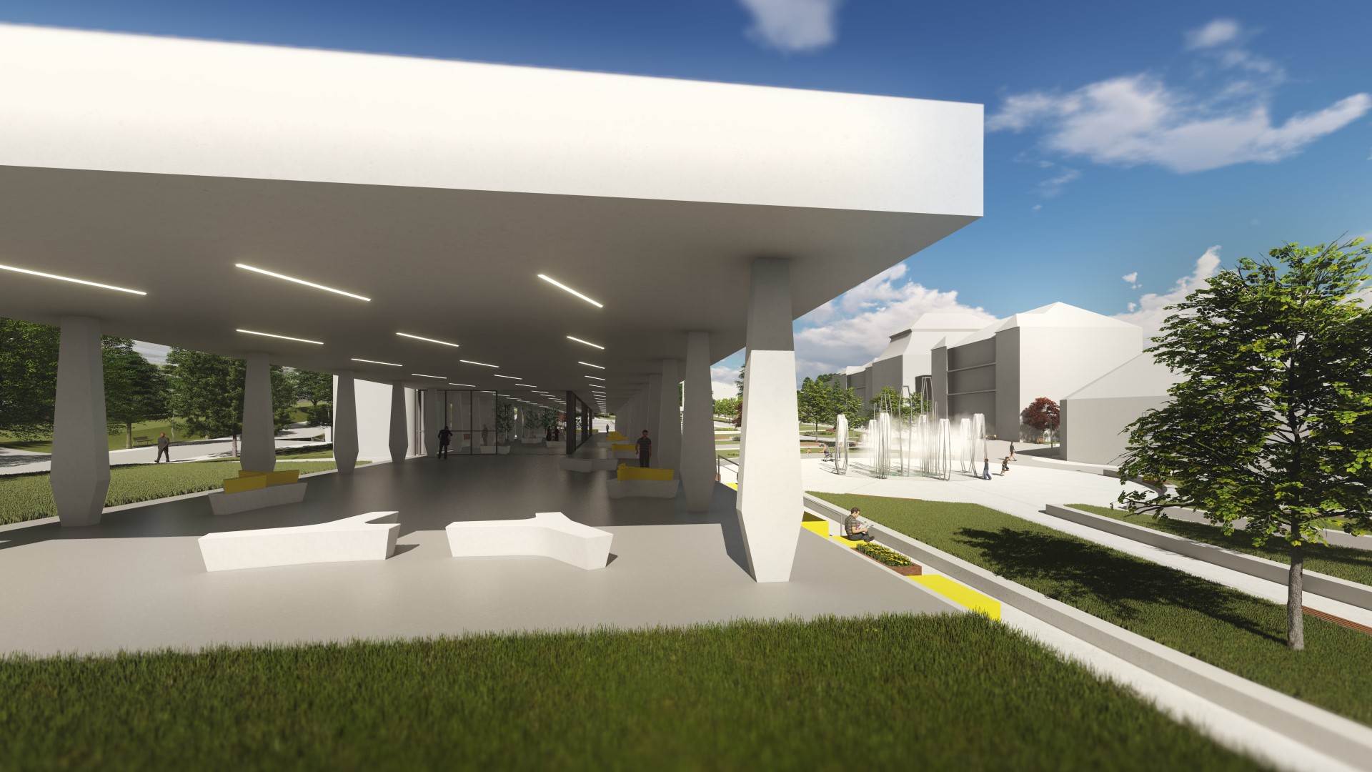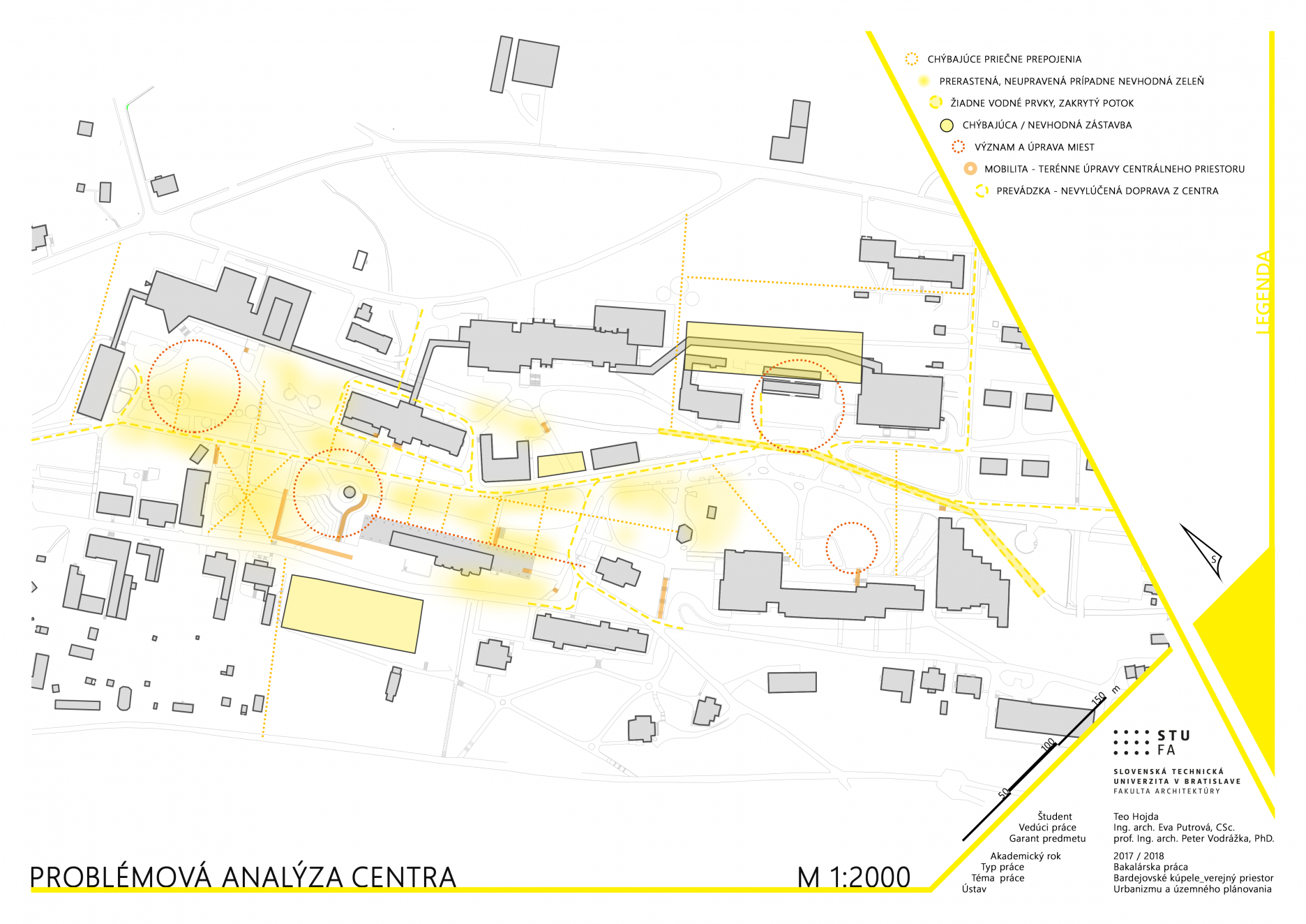 Na verejné osvetlenie priestorov som sa rozhodol použiť atypické, mnou navrhované svietidlá v dvoch výškach - 4000 mm a 1000 mm. Dôvodom bol názor, že každé miesto by malo mať charakteristický mobiliár i osvetlenie. Avšak, ako som už spomínal, mobiliár by som vedel skôr oželieť ako svietidlá. Tvar svietidiel reaguje na kolonádny stĺp, oceľová trubková konštrukcia sa objavuje vo viacerých novonavrhovaných prvkoch a stáva sa východiskovým či chronickým prvkom pre ďalšie návrhy.