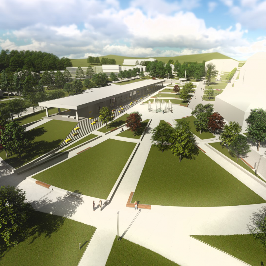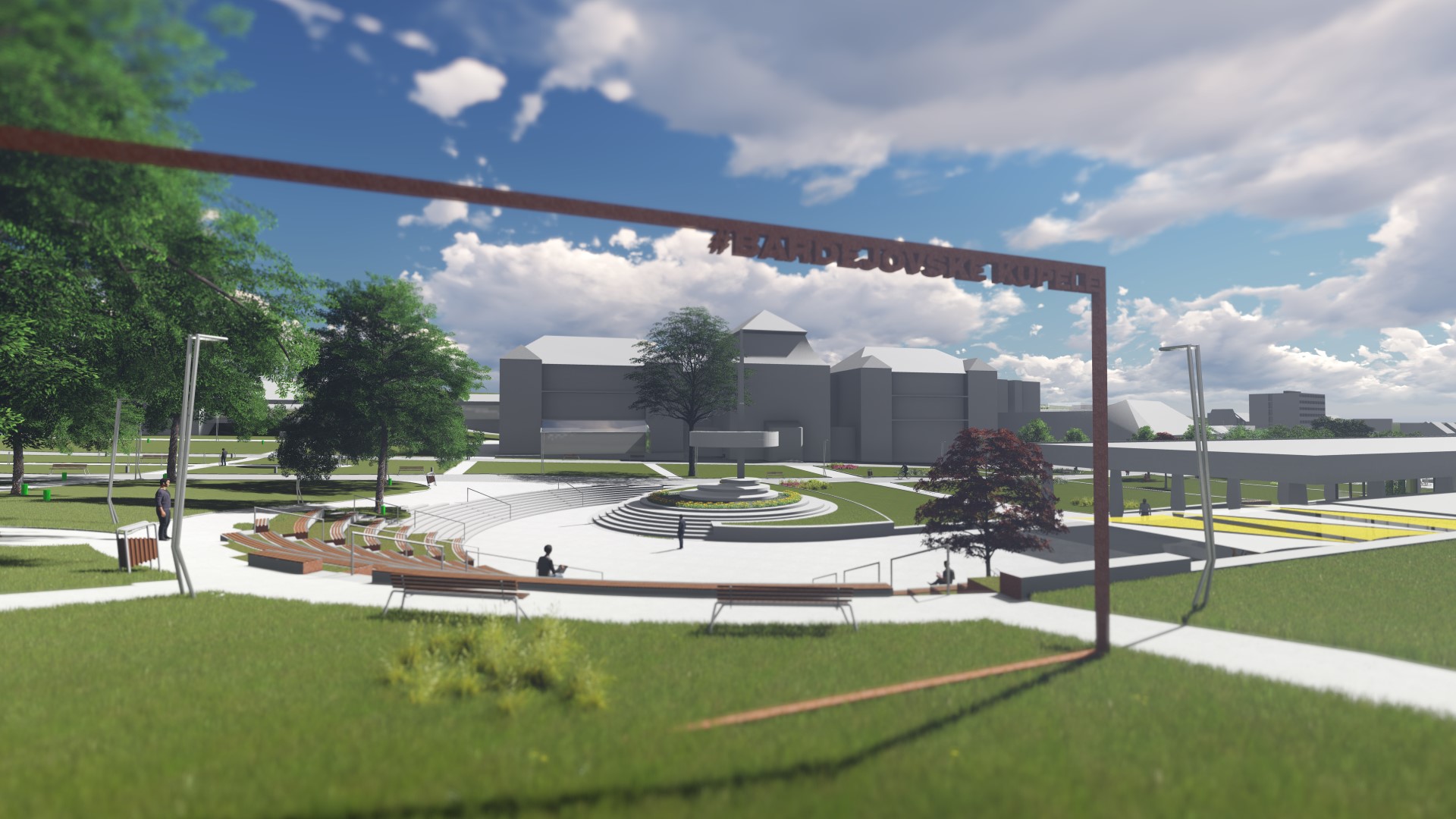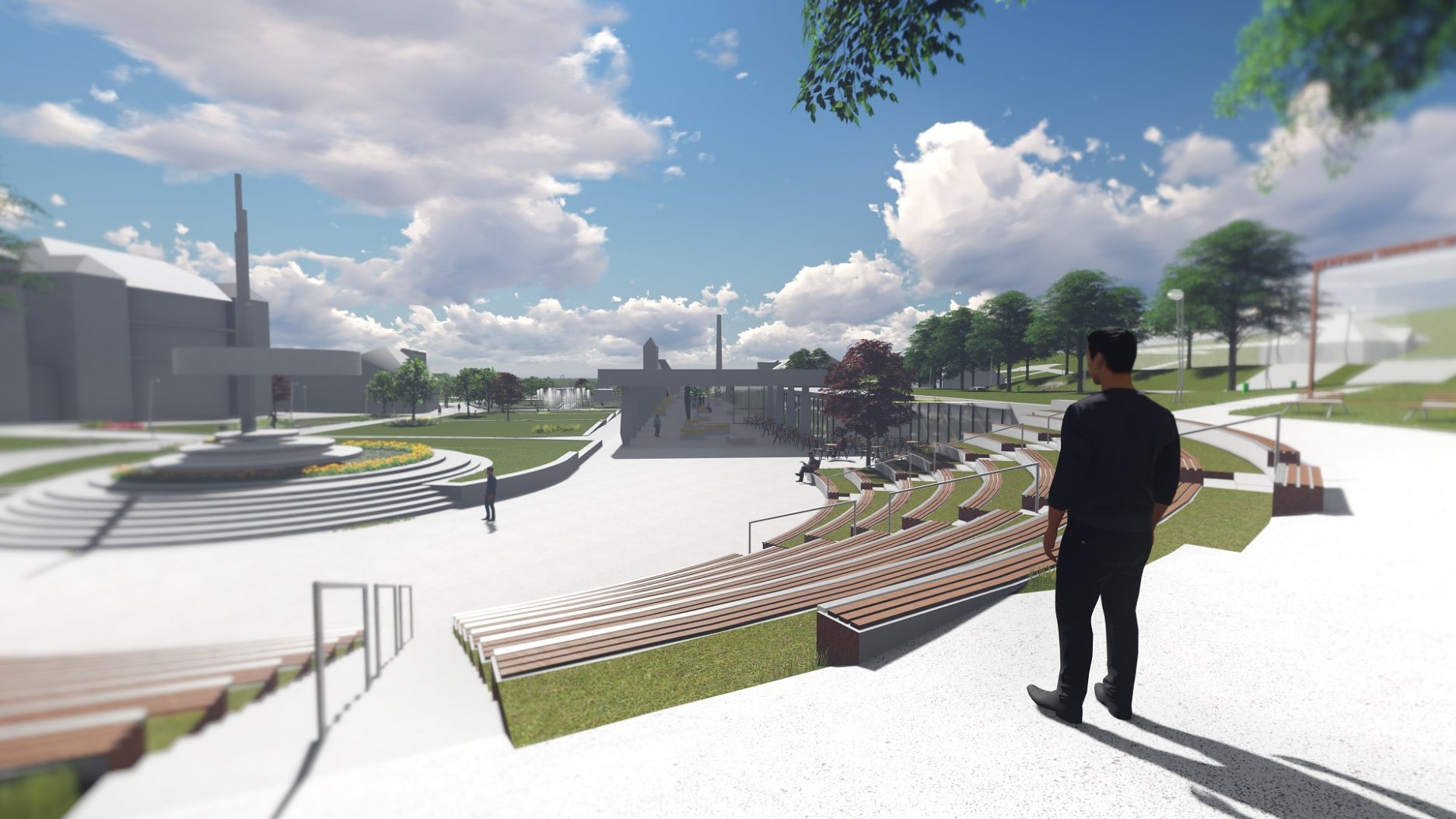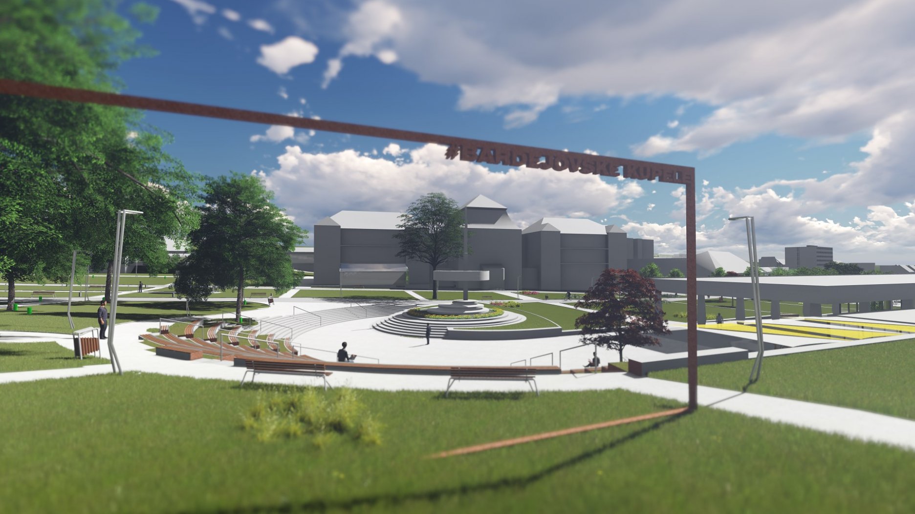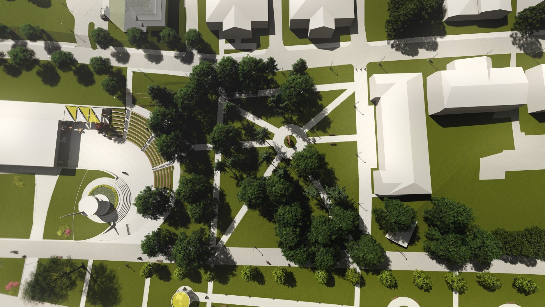Na verejné osvetlenie priestorov som sa rozhodol použiť atypické, mnou navrhované svietidlá v dvoch výškach - 4000 mm a 1000 mm. Dôvodom bol názor, že každé miesto by malo mať charakteristický mobiliár i osvetlenie. Avšak, ako som už spomínal, mobiliár by som vedel skôr oželieť ako svietidlá. Tvar svietidiel reaguje na kolonádny stĺp, oceľová trubková konštrukcia sa objavuje vo viacerých novonavrhovaných prvkoch a stáva sa východiskovým či chronickým prvkom pre ďalšie návrhy.