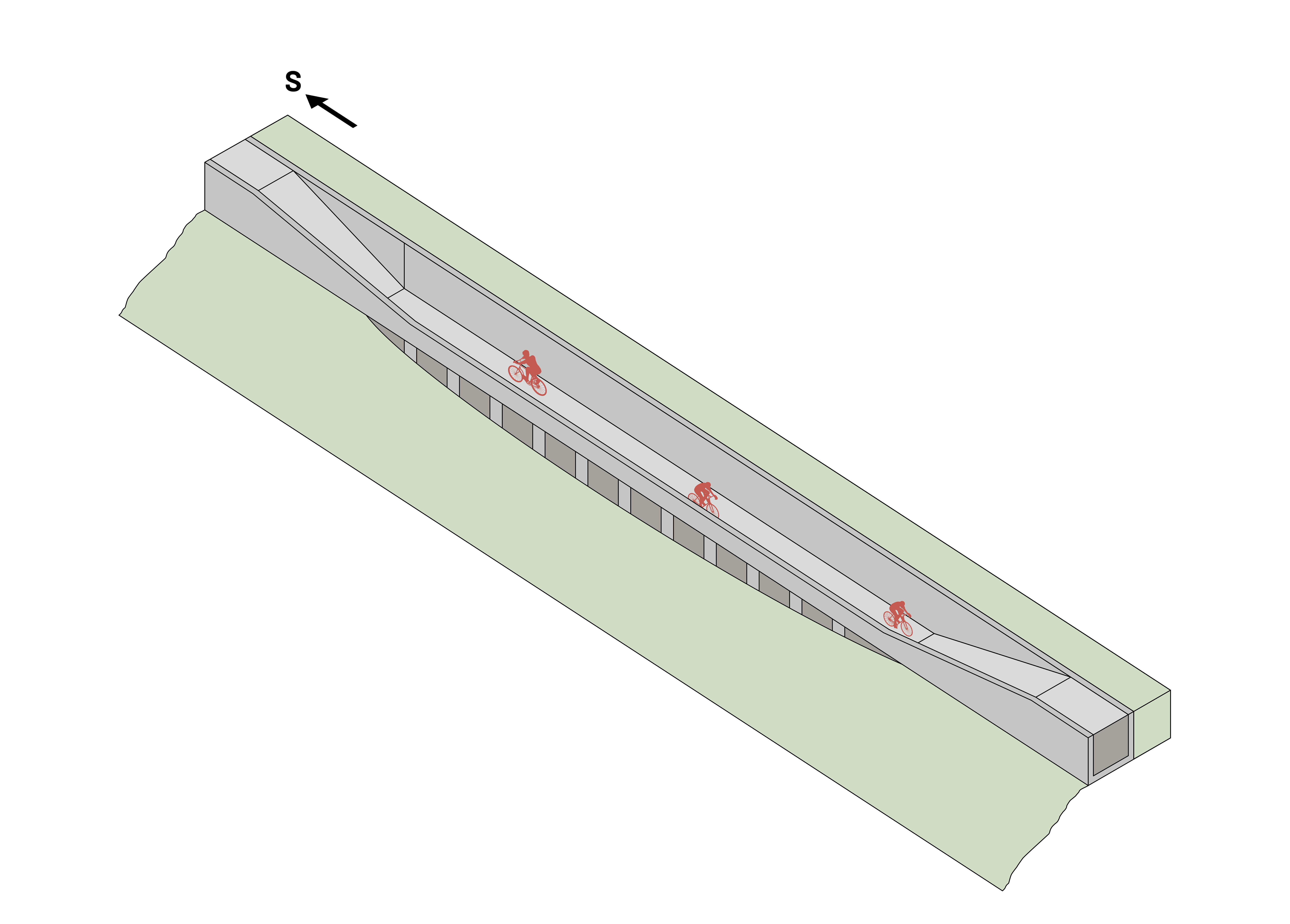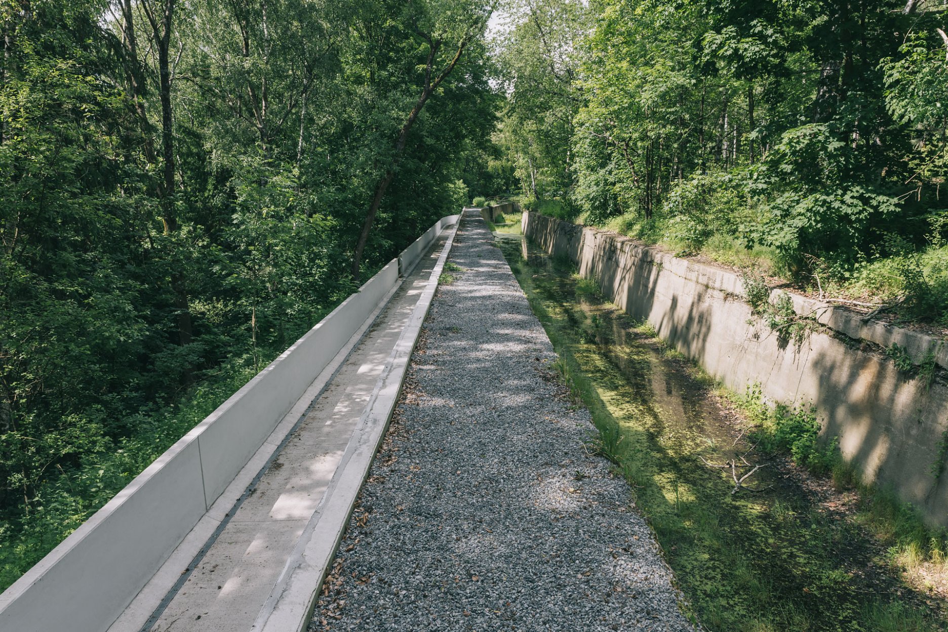 „Cyklostezka kopíruje trasu původního historického železobetonového kanálu na úseku dlouhém asi 1,4 km. Cyklisté se ale projedou i vnitřkem kanálu, v tomto místě dokonce aquaduktem. Jedná se o úžasnou technickou památku, které se proměnila v jakousi křivku v krajině. Od začátku jsme věděli, že kanál musíme znovuobjevit a oživit. Využili jsme i původní desítky let staré betonové konstrukce. Většina brownfieldů bývá transformována na něco jiného – například továrny na byty a kanceláře. Nás ale fascinoval příběh této významné technické infrastruktury, která po téměř 70 letech zapomnění slouží opět jako infrastruktura – jen tentokrát dopravní,“ vysvetľuje architekt Martin Krupauer.