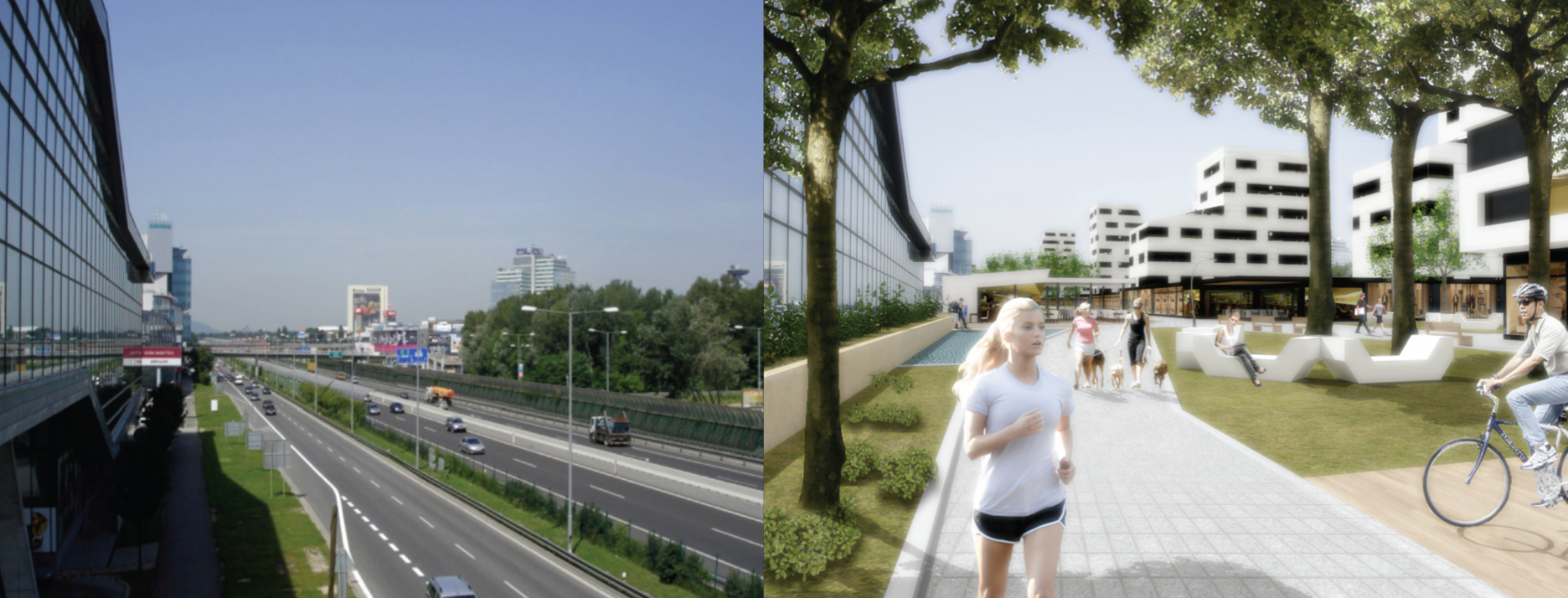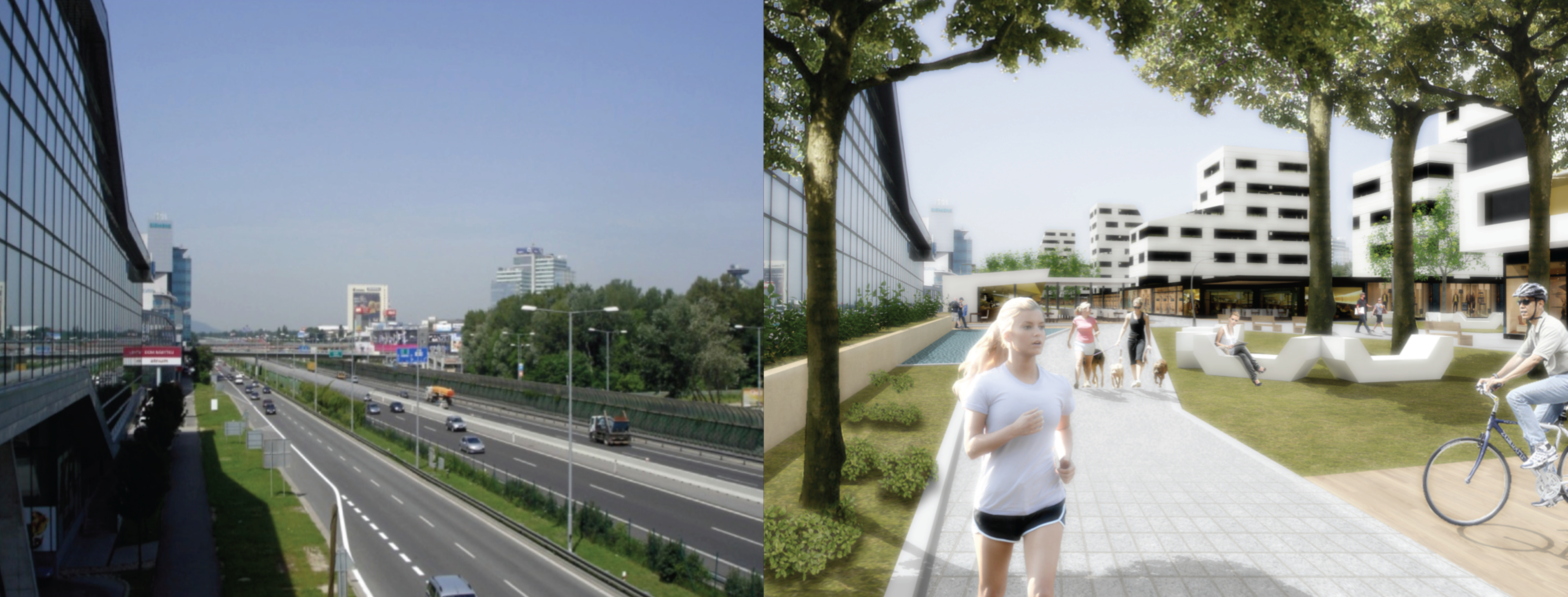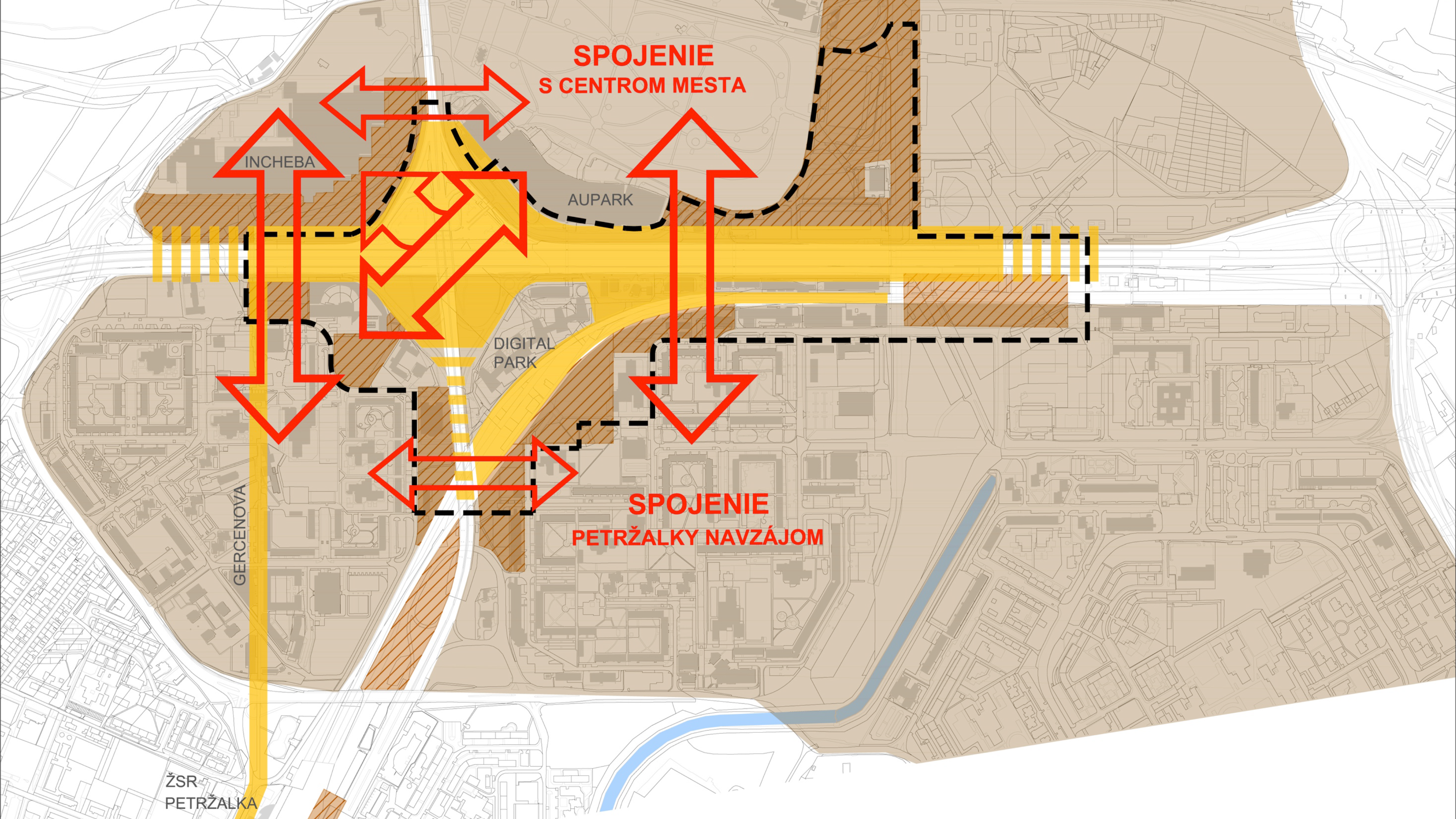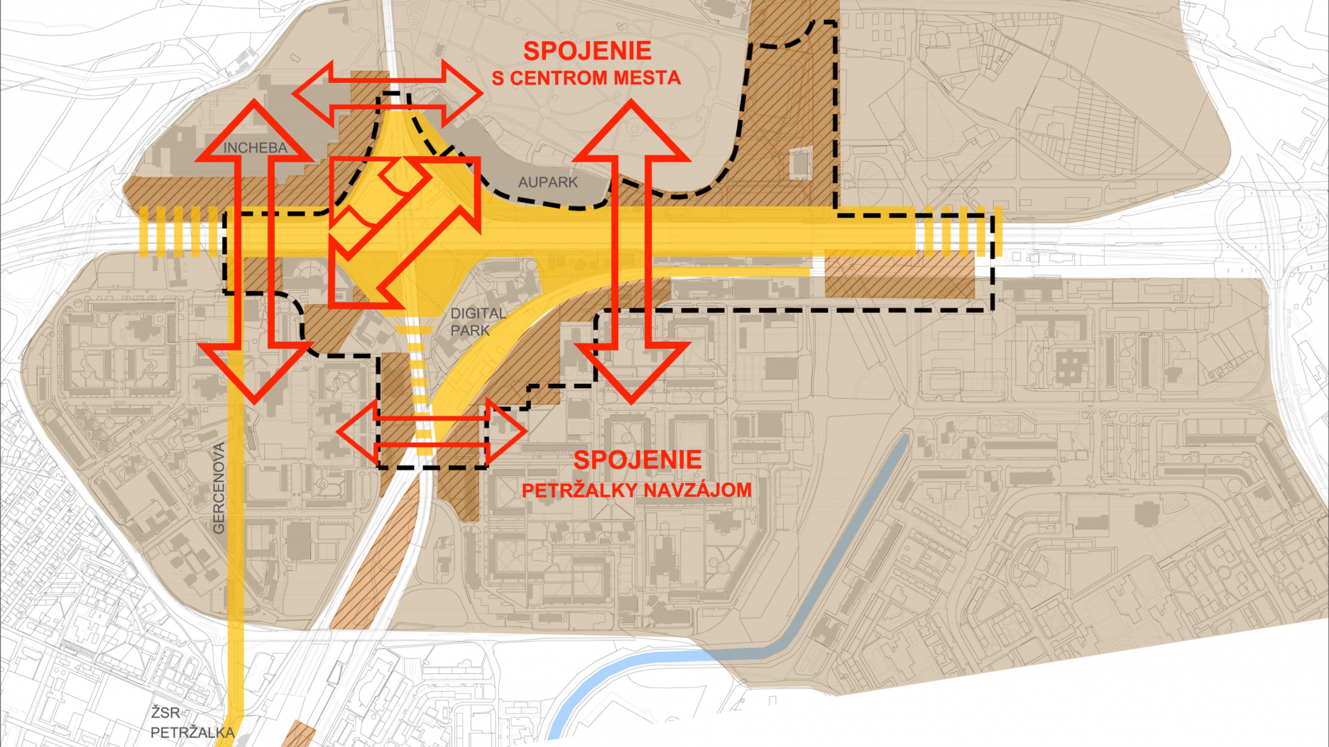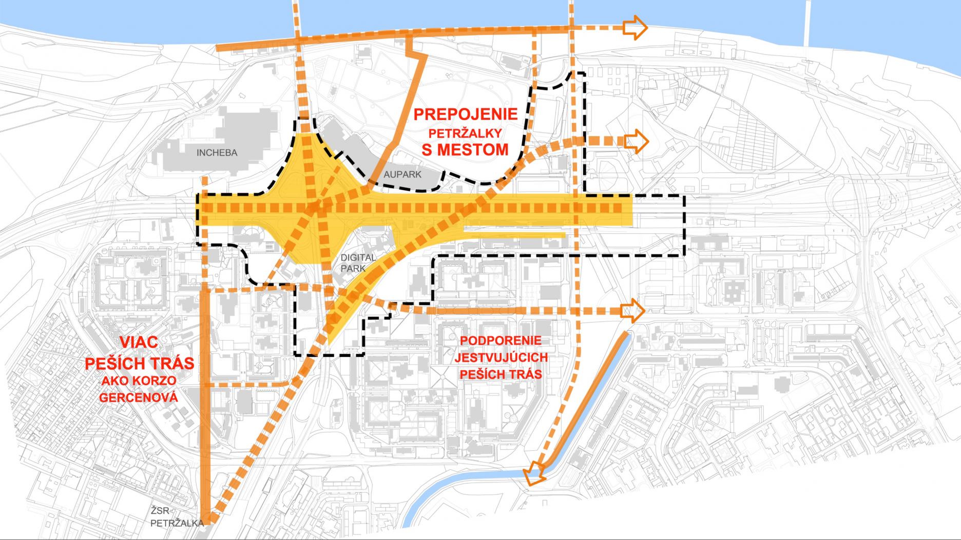 Cieľom novátorského projektu je prepojenie Petržalky s centrom mesta a pešou zónou. Navrhované prekrytie komunikácie - "plato" má pomôcť sceliť územie a vytvoriť podmienky pre zahustenie zástavby. Cesta by sa tým pádom dostala do tunelu, pod úroveň terénu. Je možné, aby na premostení nad dopravným koridorom vyrástli obytné i kancelárske budovy, centrálne námestie, zelené plochy a iné verejné funkcie.