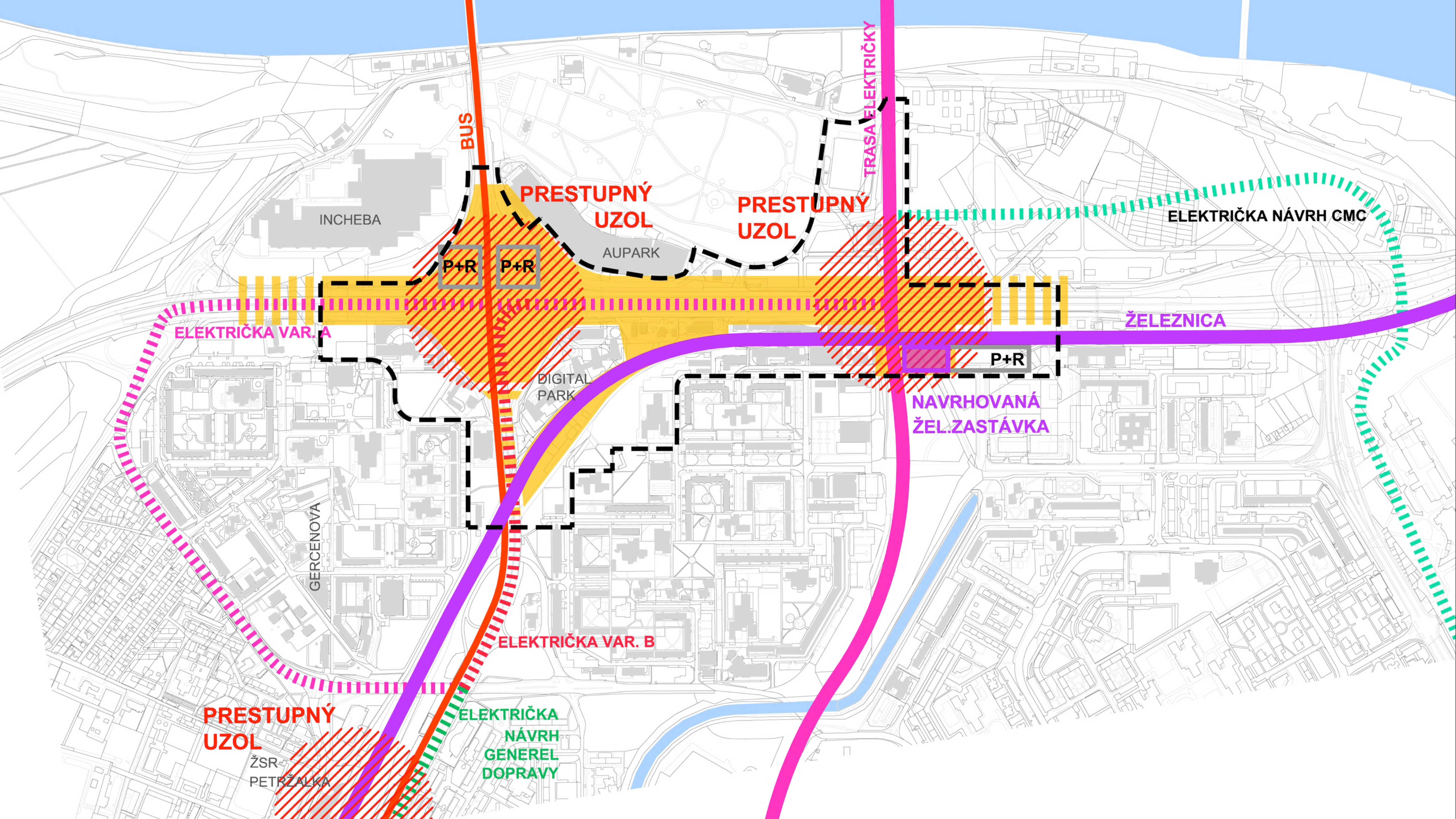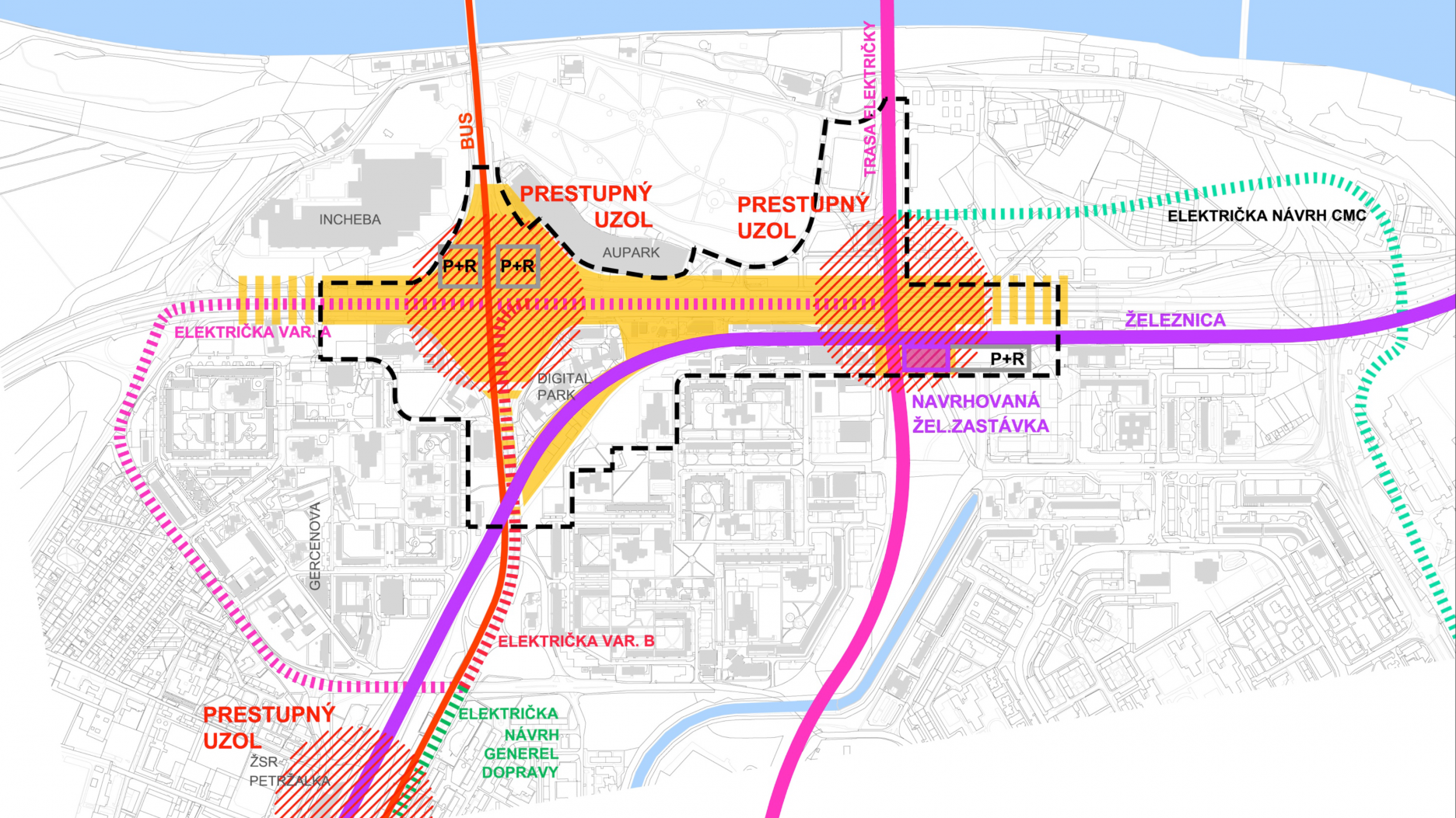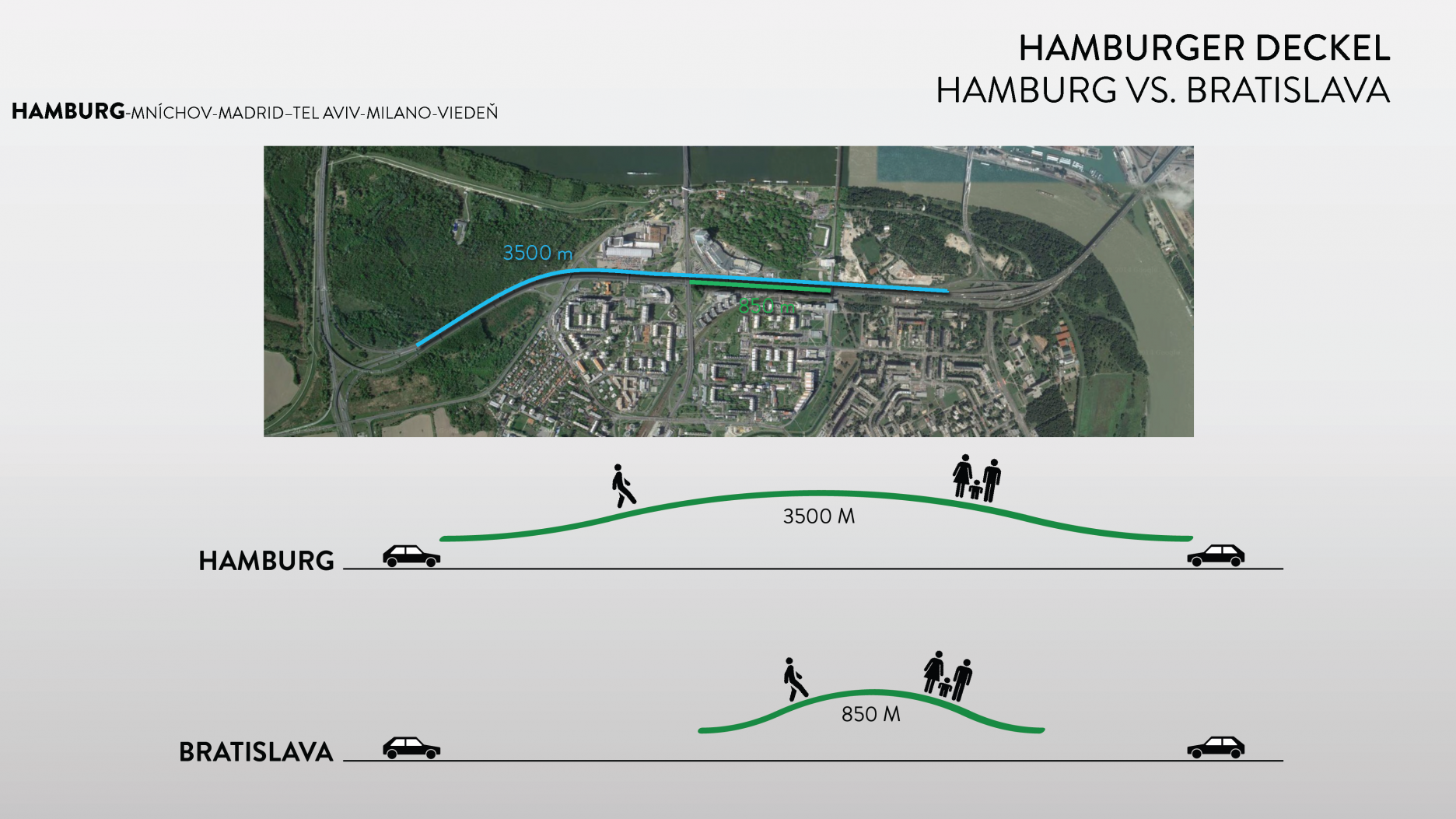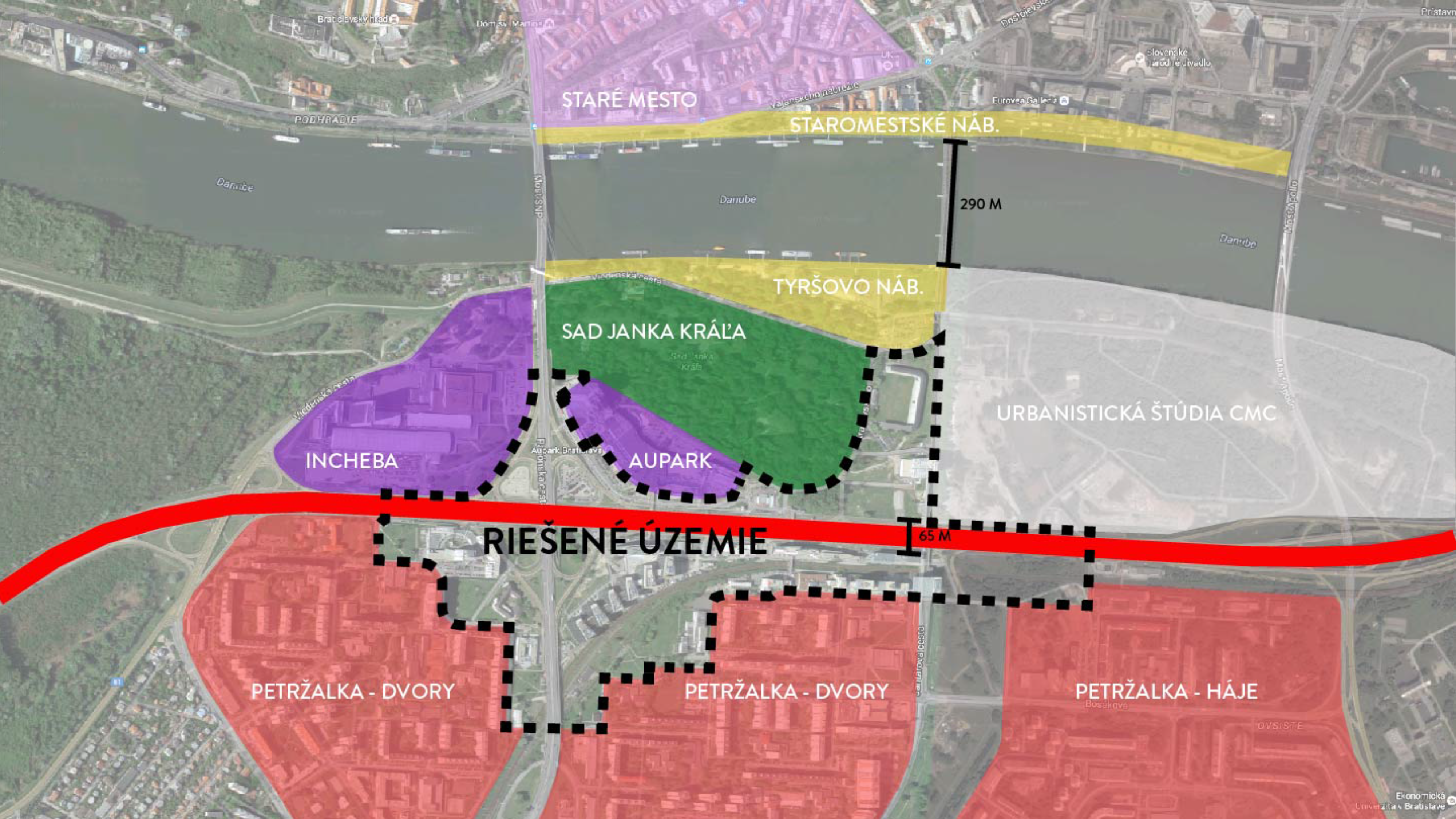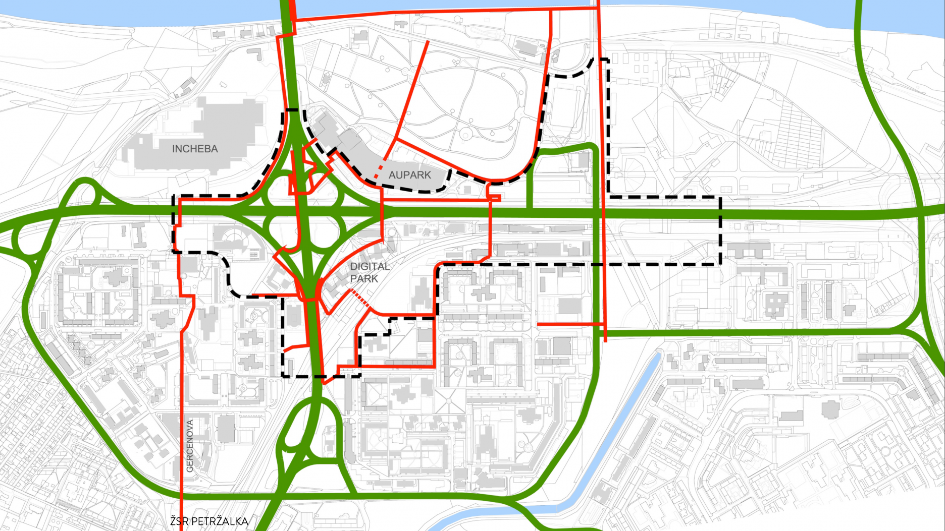Cieľom novátorského projektu je prepojenie Petržalky s centrom mesta a pešou zónou. Navrhované prekrytie komunikácie - "plato" má pomôcť sceliť územie a vytvoriť podmienky pre zahustenie zástavby. Cesta by sa tým pádom dostala do tunelu, pod úroveň terénu. Je možné, aby na premostení nad dopravným koridorom vyrástli obytné i kancelárske budovy, centrálne námestie, zelené plochy a iné verejné funkcie.